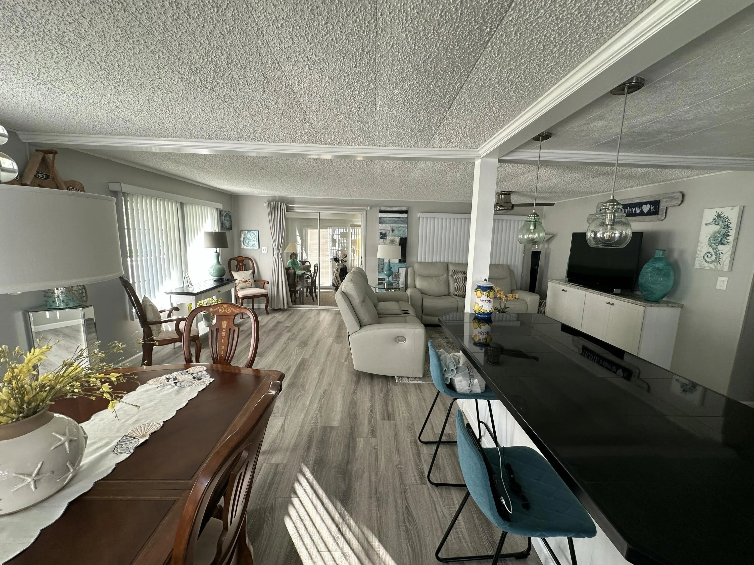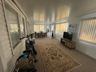 Fabulous 2br/2ba double-wide coach in popular 55+ West Lakes of Boca Raton. This spacious home has an open living/dining/kitchen area w/beautiful wood look flooring, open island in the kitchen & stainless appliances. This home also has updated bathrooms and new carpet in bedrooms & enclosed Florida room. Both bedrooms have built in dressers. Master also has a walk-in closet. Full size washer and dryer. Offered partially furnished, including 2 dining tables w/chairs, bed and night stand in the second bedroom. $250/mo maintenance fees include lawn care, pool, common areas, and basic cable with HBO. West Lakes features social activities, clubhouse, pool, shuffleboard, and screened picnic area. Close to golf courses, shopping, and Boca's fabulous beaches. It's a great place to call home!