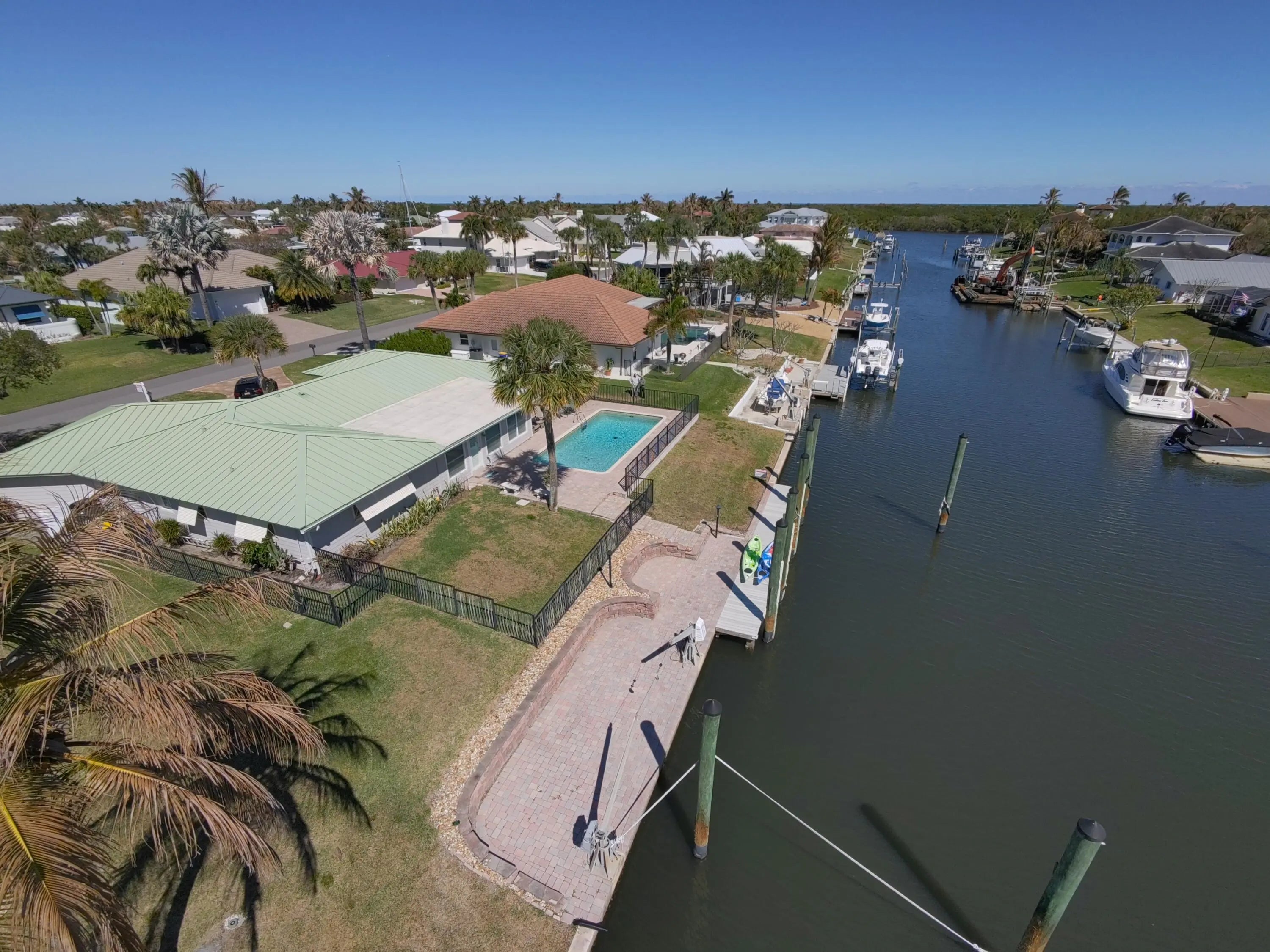 Incredible opportunity to live the Florida waterfront lifestyle! Home for your Yacht - 100 ft of waterfront paradise on deep water 100' wide canal, 6 homes from the Intracoastal Waterway. The perfect place to moor your boat and enjoy ''bridgeless'' access to ocean. Remarkable features that make this property a true gem: Concrete seawall + 40 foot dock w xtra large/high pilings to moor up to 60ft boat. +21 ft slip in area of the davits for jet skis or 14ft boat. Solid CBS construction, impact doors/window, hickory floors, big master w walk-in closet his/hers vanities, central vacuum, lots of living space, plantation shutters, built-in book cases, extra large 2 car garage. Experience thrilling water sports adventures from your backyard. The Pine School (pre K - 12) 3 miles and the boat ramp at Jimmy Graham Park is less than 1.5 miles away. For those who enjoy paddle boarding or kayak there's ample space to store your gear, and it is less than 2 miles to paddle to the beach.. This parcel truly hits a home run for boating and water sports enthusiasts. Not only does this property offer an exceptional waterfront experience, but it also provides easy access to some of Florida's most breathtaking beaches. Just a 3 mile walk, bike, or drive away, you'll discover Hobe Sound Beach.one of the best beaches in Florida, complete with miles of uncrowded shoreline. Whether you want to relax under the sun or take a long walk with your furry friend in the dog-friendly area, this beach has it all. Explore the nesting sea turtles, engage in exciting snorkeling adventures, or cast your fishing line from the shores. The possibilities for unforgettable moments are endless. Doc Meyers Park (soccer, baseball, basketball, tennis) is 1.3 miles away, and Hobe Sound Elementary School is just 2 miles away. Whether you want a quick bite to eat, quiet fine dining and cocktails in Hobe Sound, or waterfront nightlife at the St. Lucie or Jupiter Inlets, this home is positioned perfectly. Hobe Sound area is a haven for golf enthusiasts with plenty of public and private golf courses. Tee Times magazine even named Hobe Sound the "High-End Golf Course Capital of the World." So, if golfing is a must for you, rest assured that several incredible courses are just a short distance away. INTERIOR AND OUTER POSTS HAVE TIDE KEEPERS, 50 AMP + WATER AT DOCK. PERFECT SET UP FOR LARGER BOATS