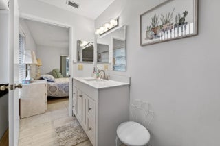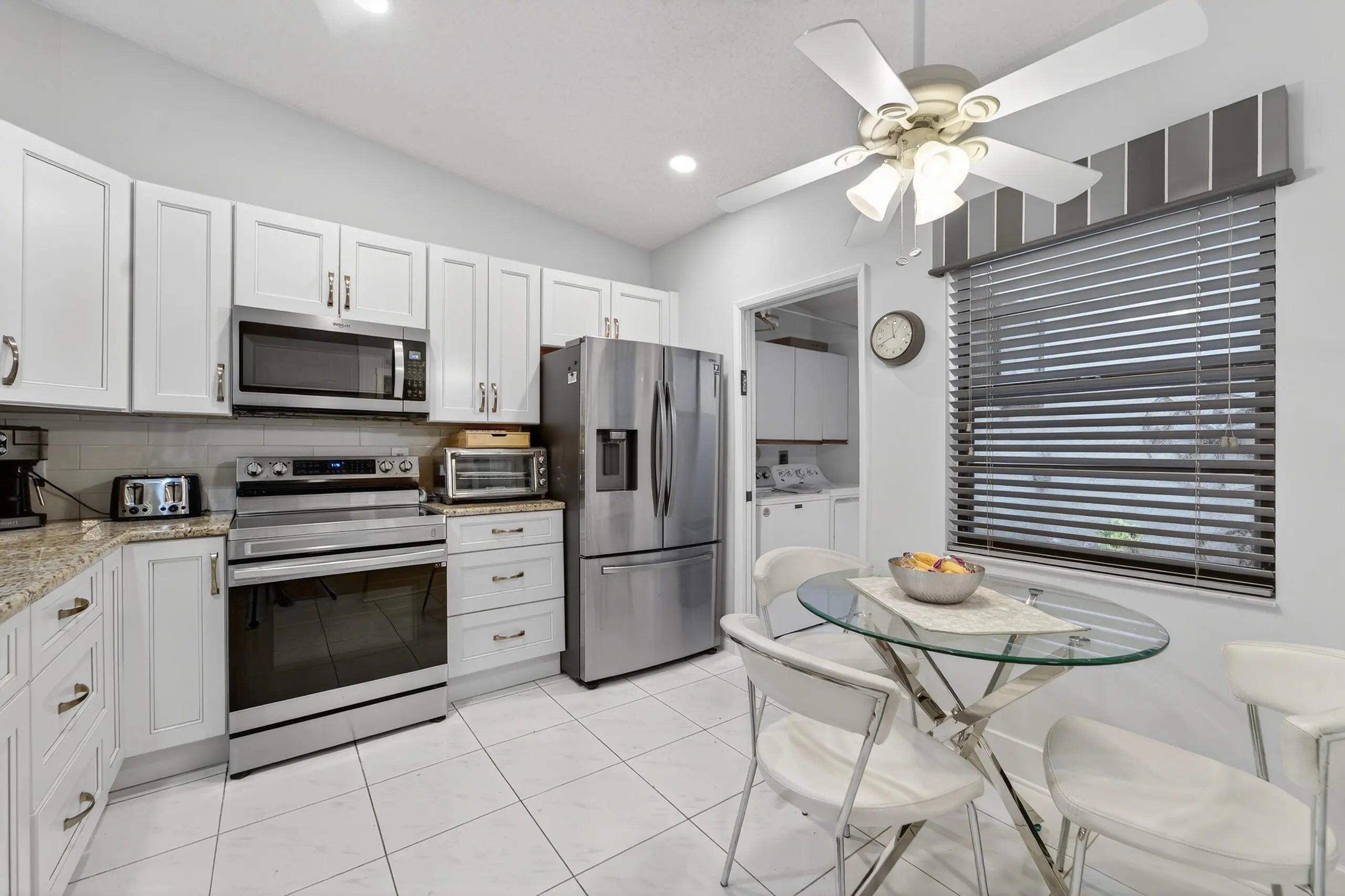 Light, bright, corner unit, 2-bedroom, 2-bath villa with enclosed, air conditioned Florida room and an attached 1 car garage. The updated, open concept kitchen features granite counters and wood cabinets and ample storage space. Two oversized closets in primary bedroom, walk-in shower in fully upgraded ensuite bath. full sized washer and dryer in laundry room. 2 additional parking spaces in driveway. Plenty of guest parking in the community. Huntington Pointe is a an active adult community that features a 53,000 square foot clubhouse. The 600 seat theater offers live entertainment and movies year 'round. Plus a fitness center, card rooms, billiard room, aerobics room, bocce courts, pickleball courts, Har-Tru tennis courts (coming in 2026), 4 outdoor pool that's open for breakfast and lunch every day.