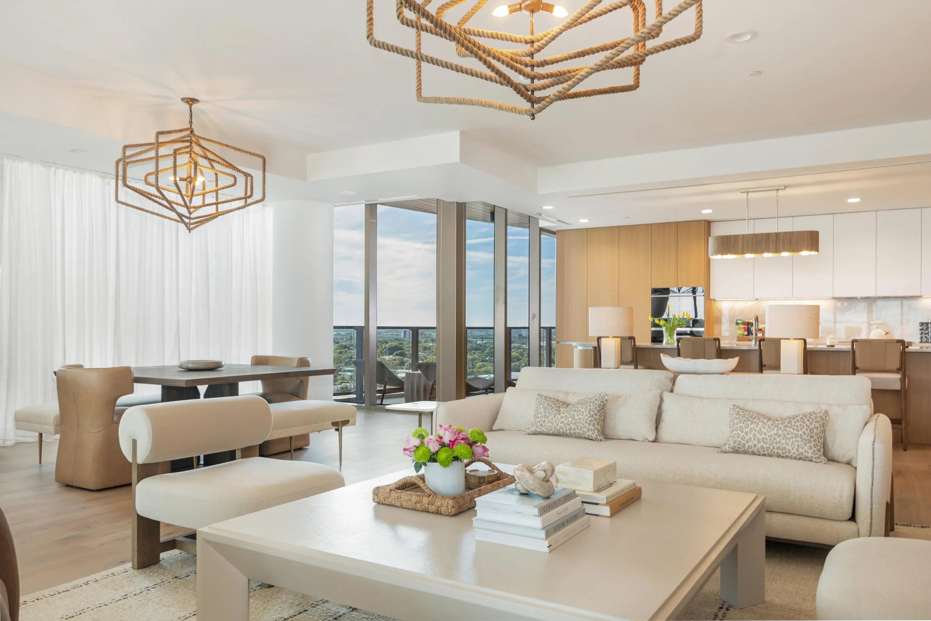 Available now for annual lease! Stunning 4-bedroom, 4½-bath residence at Forte on Flagler ,a 41- residence boutique, ultra luxury waterfront building. A private elevator opens directly into your spacious foyer that flows into a bright & open floor plan. Floor-to-ceiling glass frames with panoramic water views. Enjoy a gourmet kitchen with Sub-Zero & Wolf appliances & custom cabinetry, expansive living & dining zones ideal for entertaining, & an oversized terrace that merges indoor elegance with outdoor ease. The primary suite features a spa-style dual bath & generous walk-in closet, while three additional bedrooms & baths offer comfort & privacy. COMPLETELY stocked!Exquisite 5-star amenities curated for someone who values privacy, sophistication & the ultimate waterfront lifestyle.