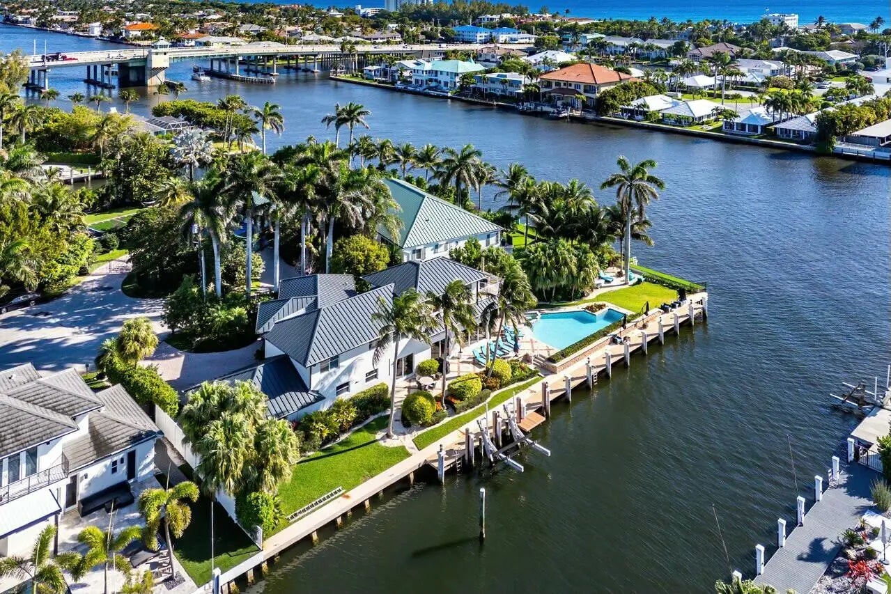 Welcome to your private tropical oasis on a prime corner lot. This exquisite single-family home offers breathtaking canal and Intracoastal views, making it a true paradise for boating enthusiasts with direct ocean access. Designed for seamless indoor-outdoor living, the residence features a resort-style pool and spa surrounded by generous entertaining spaces. Inside, discover a thoughtfully designed layout that includes a first-floor primary suite, a private gym, an open-concept chef's kitchen, and a dedicated office area—perfect for both relaxation and productivity. Ideally located just steps from the Plaza at Delray and only minutes from Atlantic Avenue, Mizner Park, and the beach, this home blends the best of waterfront living with unbeatable convenience.