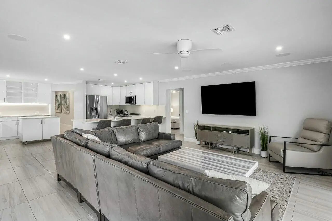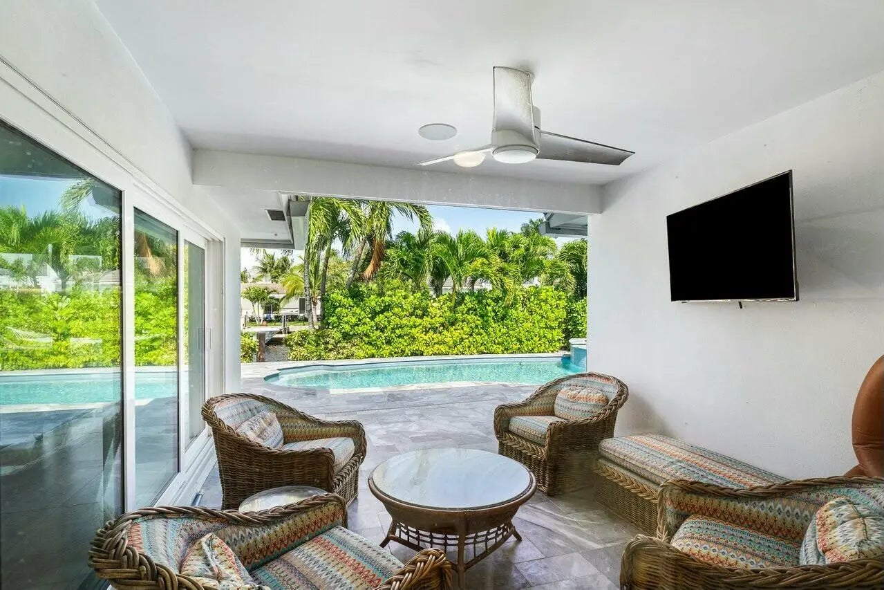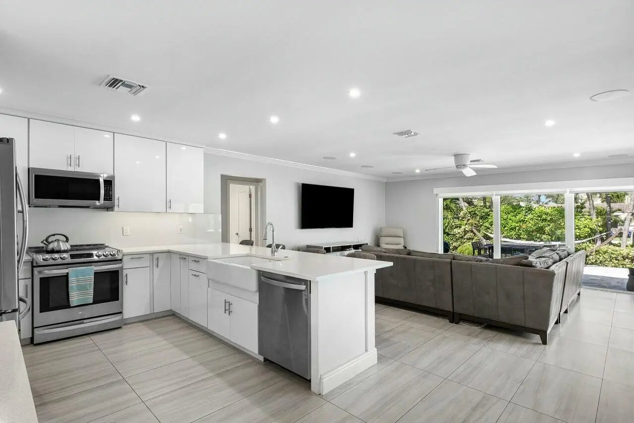 Stunning 4-bedroom, 2.5-bath deepwater home in the highly sought-after Tropic Isle waterfront community. With 90 feet of seawall and dock utilities, this remodeled residence offers an open floor plan featuring a newer roof, a spacious kitchen with stainless steel appliances, a pantry, and quartz countertops. The home has been upgraded with new tile flooring, an updated paved driveway and walkways, and a beautifully designed pool and spa area. It includes newer A/C ducts and grills with an outdoor condenser and a germ-killing UV light system. Enjoy lush new landscaping with enhanced outdoor lighting, window shades on all windows, updated fans and dimmable lighting.