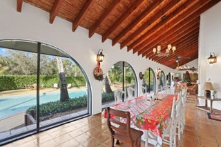 Set on 10 pristine acres, this professionally designed, championship-caliber equestrian estate delivers an exceptional blend of luxury, functionality, and top-tier performance. Purpose-built for serious equestrians, the property features a meticulously planned 30-stall barn, with each 12' x 12' stall outfitted with fans, windows, automatic water, spigots, hurricane shutters, and an integrated fly spray system—ensuring optimal comfort, safety, and efficiency year-round. The barn is thoughtfully designed with a stunning center aisle finished in Equitan rubber flooring and offers outstanding amenities, including two full bathrooms with showers, ten dedicated tack-up areas, three separate tack rooms, and three feed rooms equipped with washers and dryers. The facility is fully supported by Wi-Fi and a generator, providing seamless operation and peace of mind. The professionally appointed riding arena measures approximately 250' x 145' and features an advanced ebb-and-flow system with premium footing, delivering consistent, competition-ready conditions. Additional training and support amenities include a six-horse walker, round pen, six wash stalls, and twelve individual turnout paddocks. The property also offers three RV parking spaces with full hookups, along with an expansive parking area accommodating both vehicles and horse trailers. Completing the estate is a beautifully appointed four-bedroom residence, offering a private retreat with a resort-style poolperfectly balancing refined living with a world-class equestrian lifestyle.