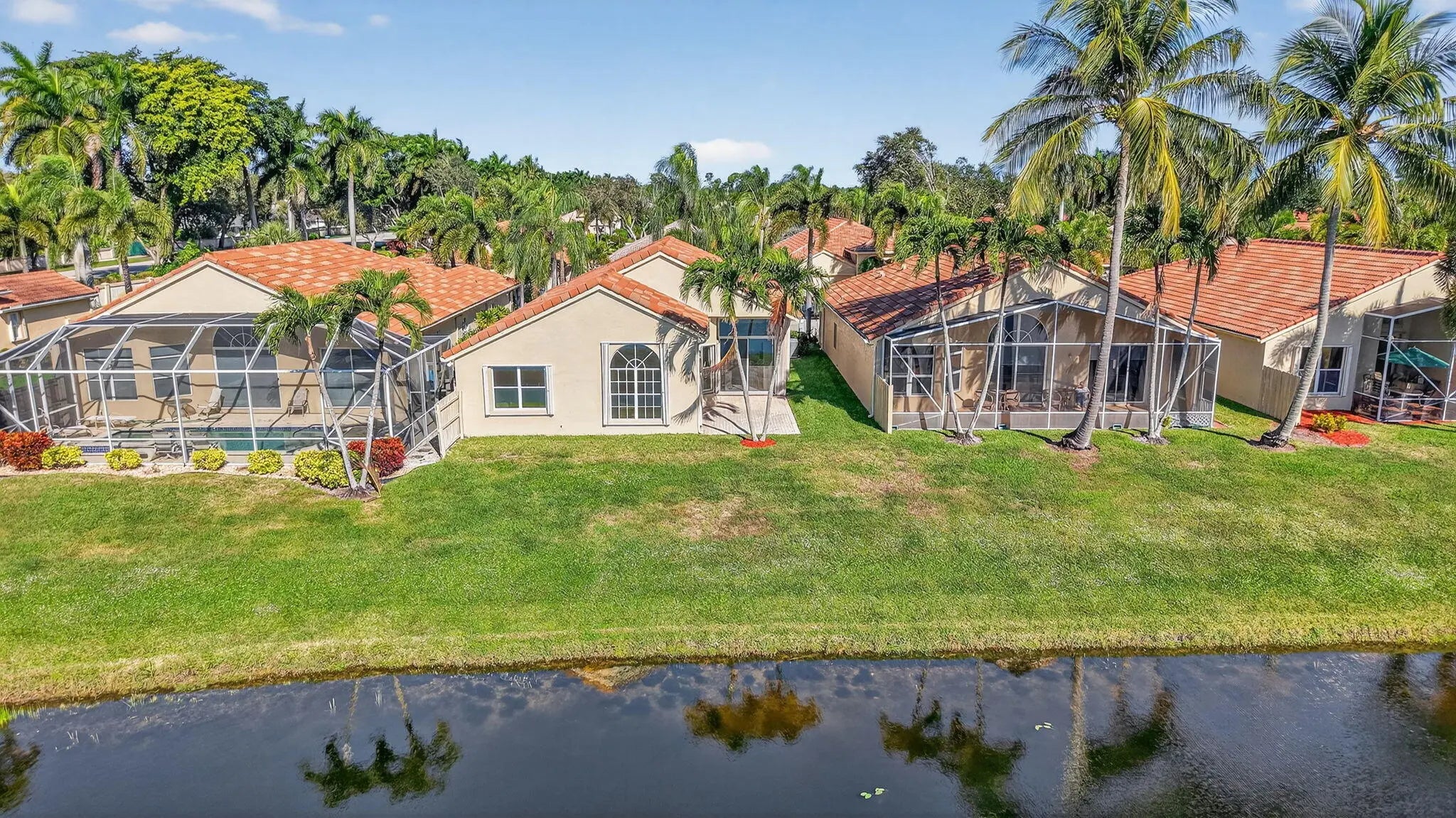 Must See! Beautiful Lakefront home in the much sought after all age, pet friendly gated community of Palladium. This is the largest model offering 2,217 square feet of open concept living. The expansive lake views of the home make it perfect for relaxing and entertaining. Freshly painted throughout with new carpeting in bedrooms. The home features 3 bedrooms and 2 full baths. You will love the soaring vaulted ceilings and a wealth of windows allowing natural light to flood the space. The large ceramic polished tiles in main living areas enhance the open and airy feel of the home.The oversized primary bedroom creates a comfortable private retreat within the home. Minutes to beaches, shopping , restaurants , major roads. HOA offers pool, hot tub, tennis, pickleball., See supplement Exterior features include oversized open patio, 2 stall garage with pull down storage, hurricane shutters includes 4 electric.roof in . Garage freshly painted. All age pet friendly gated community. Resort style pool and hot tub, Har-Tru tennis courts, pickleball, fitness center, game room and library. Perfectly situated minutes to beaches, shopping restaurants and major roadways. HOA includes Lawn Care, Cable, Internet.