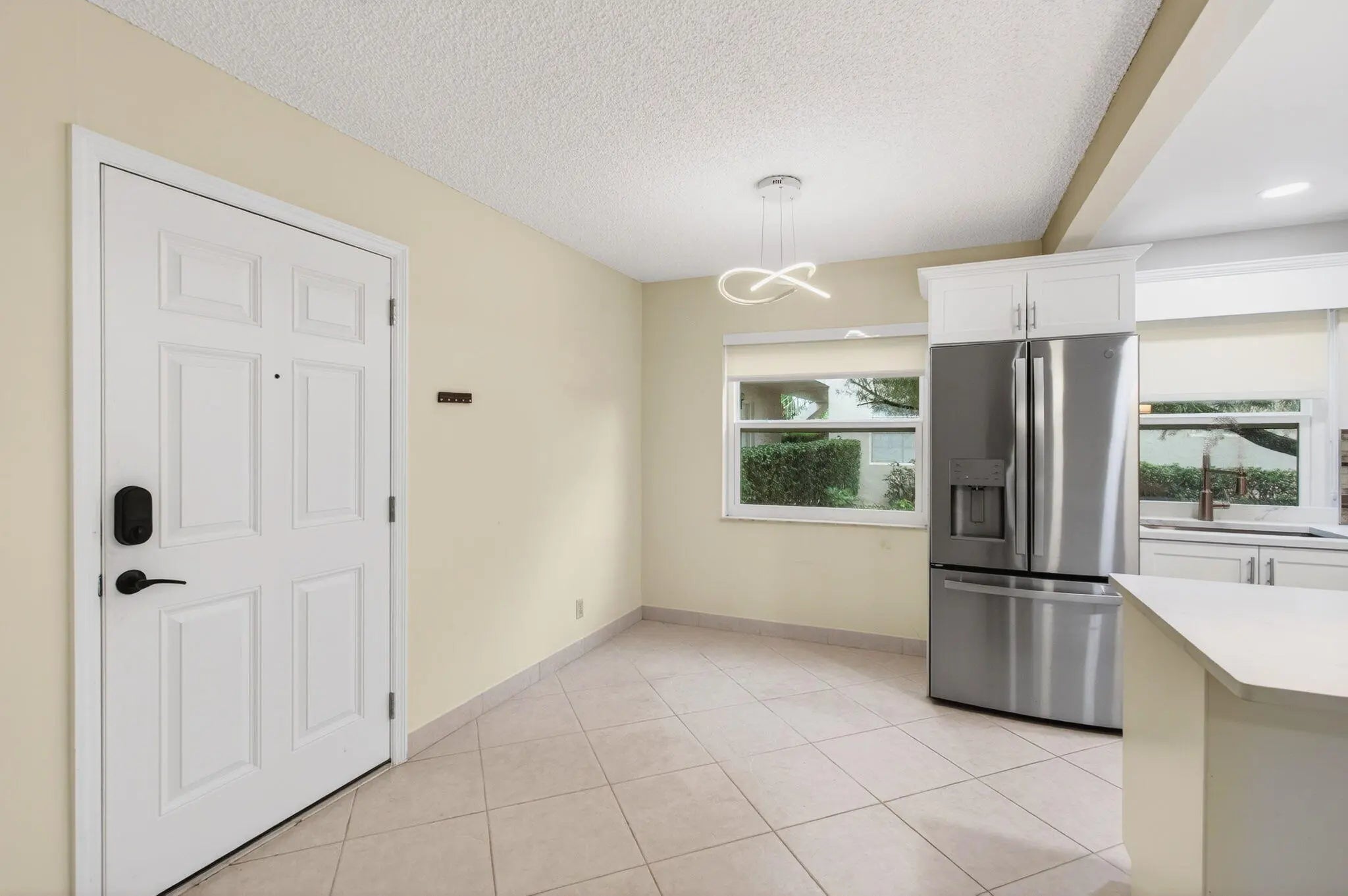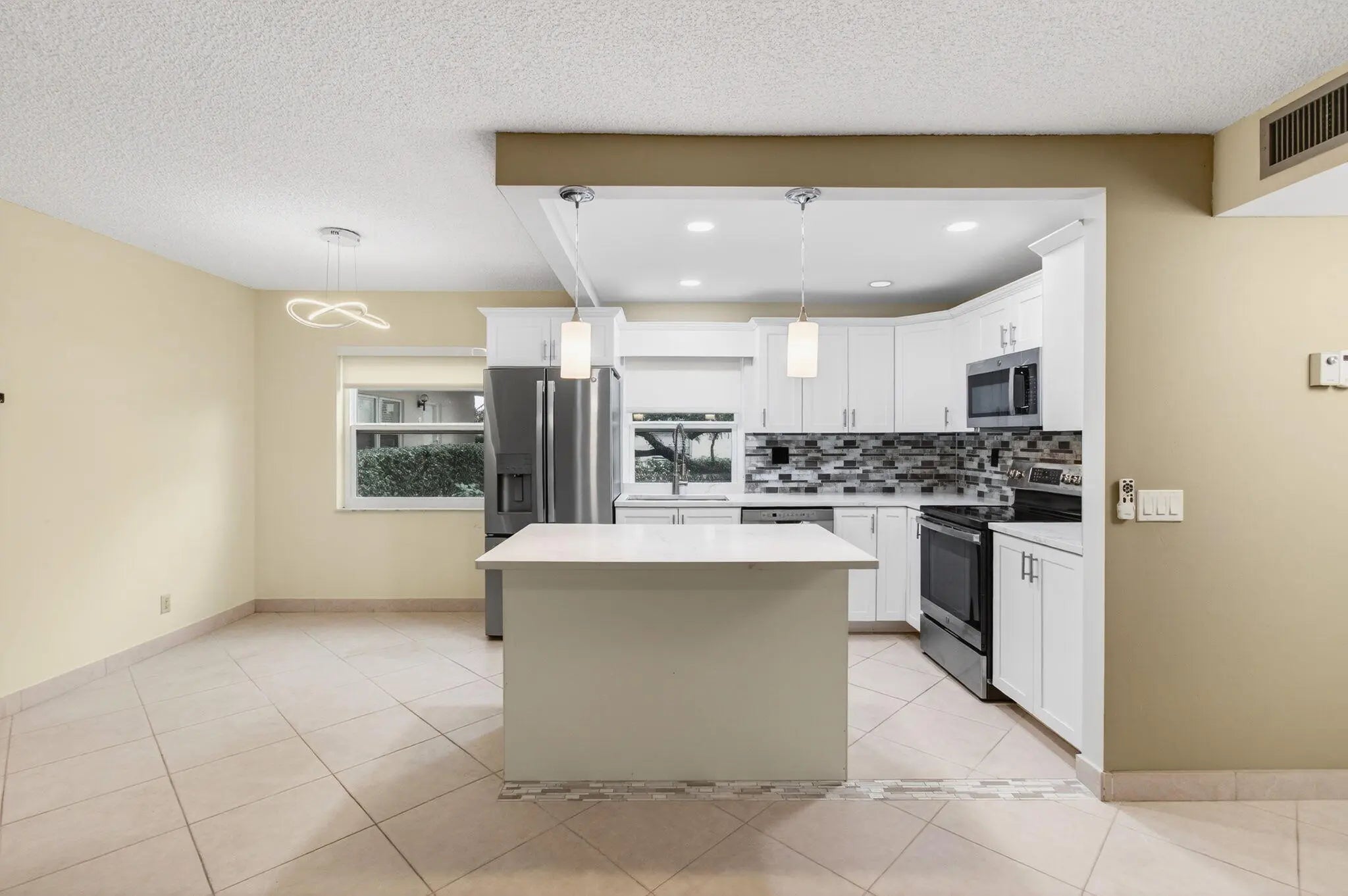 Move right into this SPECTACULAR REMODELED 2-bedroom, 2-bath ground-floor condo featuring quality upgrades throughout. Renovated approx. 3 years ago, this light-filled home offers full hurricane-IMPACT windows and doors for comfort, security, and efficiency. The modern kitchen boasts a true island, quartz countertops, and stylish finishes, opening to spacious living and dining areas ideal for entertaining. Updated baths, ceiling fans in every room, A/C (2019) and water heater (2022) add peace of mind. Enjoy a private primary suite and serene screened patio with exterior door and tranquil views. Blackout shades in the second bedroom add functionality. Located in Kings Point 55+ with world-class amenities. SELLER FINANCING AVAILABLE. Located in the sought-after Kings Point 55+ community with world-class amenities including golf, pools, fitness centers, pickleball, clubs, cafés, and courtesy shuttles.No expense spared, blinds in evey room, blackout shades in the second bedroom.Plenty of privacy form the patio.