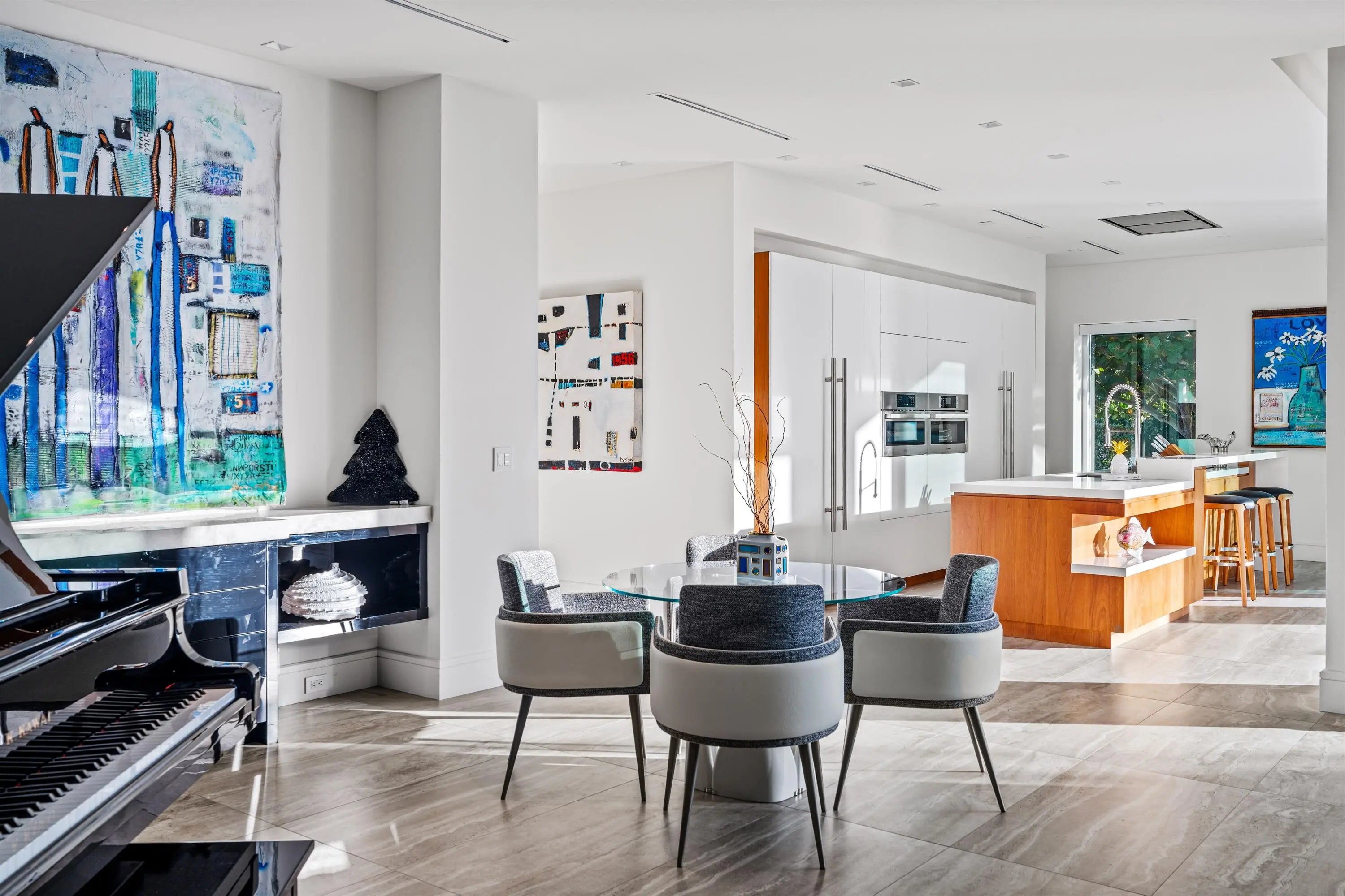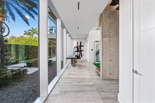 Steps from the beach, this custom estate, built in 2018, is designed with floor-to-ceiling impact glass for a light, bright ambience and a seamless connection to nature. An open floor plan configuration places the family room and kitchen adjacent to the pool and patio. Attractive features include a first-floor primary suite, a second-floor VIP suite, and guest bedroom that could serve as a club room. dramatic main gallery is enclosed in glass, offering serene views of the beautifully landscaped front yard and side gardens. In the main wing in an open-floor-plan configuration, the family room and dining room are open to the center-island chef's kitchen, finished with contemporary cabinetry, stainless-steel professional-grade appliances and a wall of sliding doors that lead to the loggia. Also in this wing are a guest bedroom suite with a private patio, a powder room and laundry. Set apart in a wing of its own is the stunning primary suite. It comprises a large bedroom with sliding doors that open to the side yard, two custom-fitted walk-in closets, and a magnificent stone-clad bathroom with dual sinks, a huge shower and a lounge tub. On the second floor in a split-bedroom plan, the VIP bedroom suite is placed separately from the other guest bedrooms. Also, this residence has easy beach access; it is integrated with Smart Home technology, and windows and doors throughout are impact-glass. PROPERTY: Across the street from the ocean on an oversized beautifully landscaped corner lot, the driveway circles around an oasis to the two-car garage and spectacular entry adjacent to a tranquil water feature. Inviting indoor/outdoor entertaining in the hedged back yard, the covered loggia, wrapped within an expansive deck, overlooks the 55-foot pool with a sun shelf and a stone feature wall with soothing fountain sprays. Additional amenities for easy living are the summer kitchen/barbeque area, easily accessible from the kitchen, and the outdoor shower, convenient when returning from the beach. DISCLAIMER: Information published or otherwise provided by the listing company and its representatives including but not limited to prices, measurements, square footages, lot sizes, calculations, statistics, and videos are deemed reliable but are not guaranteed and are subject to errors, omissions or changes without notice. All such information should be independently verified by any prospective purchaser or seller. Parties should perform their own due diligence to verify such information prior to a sale or listing. Listing company expressly disclaims any warranty or representation regarding such information. Prices published are either list price, sold price, and/or last asking price. The listing company participates in the Multiple Listing Service and IDX. The properties published as listed and sold are not necessarily exclusive to listing company and may be listed or have sold with other members of the Multiple Listing Service. Transactions where listing company represented both buyers and sellers are calculated as two sales. "No payments made until title passes" Some affiliations may not be applicable to certain geographic areas. If your property is currently listed with another broker, please disregard any solicitation for services. Information published or otherwise provided by seller, listing company or its representatives is deemed reliable but are not guaranteed and subject to errors, omissions, or changes without notice. Copyright 2026 by the listing company. All Rights Reserved.