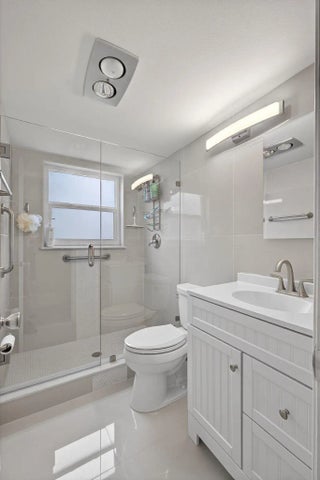 MOVE IN READY UPDATED 2 BED 1.5 GROUND FLOOR CORNER UNIT. THIS CONDO FEATURES AN UPDATED KITCHEN AND BATHROOMS., NEUTRAL COLORS THROUGHOUT, TILED THROUGHOUT, NEW CENTRAL AIR WITH BLUE LIGHT HURRICANE IMPACT WINDOWS. THE BUILDING HAS A NEW ROOF AND NO ASSESSMENTS. THE ASSOCIATION HAS A PRIVATE PATIO FOR YOU TO SIT OUT AND RELAX ON. SHORT WALK TO THE HASTINGS FITNESS CENTER.lCosets (one walk-in), laundry room, assigned parking spot plus visitor parking available; local bus for errands/shopping both within & outside The Village. COME AND ENJOY RESORT STYLE LIVING IN THIS GATED COMMUNITY FOR ADULTS 55+. Clubhouse with theater, shows, movies, craft and card rooms, billiards, aerobics, yoga, and dance classes vhe fitness center has a gym, pool, resistance pool and exercise classes. GREAT LOC fitness center has a gym, pool, resistance pool and exercise classes. GREAT LOCATION: close to shops, restaurants, PBI airport and beaches.