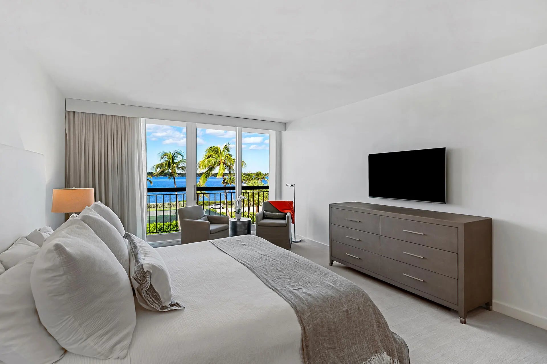 Enjoy water views and magical sunsets from every room of this immaculate unit in the prestigious Carlton Place just a few steps from the Four Seasons Hotel in Palm Beach. Clean, modern interior designed by noted Hamptons architect, James D'Auria. Easy entertaining from two living areas, stunning dining area and custom built bar. Modern kitchen with Miele appliances. Ample closets and storage throughout. Primary suite features two walk-in closets, double vanity, huge shower, deep soaking tub and separate large water closet. Two additional bedrooms, both ensuite. Building has been totally renovated with a resort style pool and spa, lounge area overlooking the ocean, gym and party room. Fully secure, guard gated with the best managers in Palm Beach on site. Concrete restoration completed!