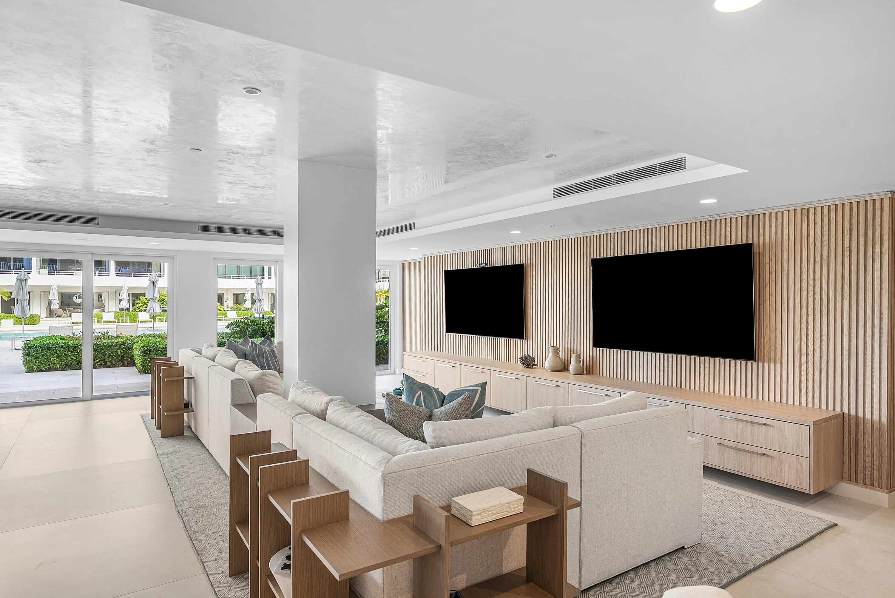 Experience a rarely available lifestyle in this stunning 2-bedroom plus den/office, 3-bath corner residence at The Cove, one of Palm Beach's most coveted boutique Intracoastal buildings. This light and bright home offers an unparalleled indoor-outdoor living experience. A spacious, oversized wrap-around lanai balcony serves as a wonderful outdoor living room, featuring a semi-private staircase that provides seamless, direct access to the recently renovated pool, state-of-the-art fitness center, and community lounge. This coveted raised level location makes enjoying the amenities feel like an extension of your own home. Inside, the floor plan has been thoughtfully converted from a three-bedroom to create two oversized, luxurious primary bedroom suites with abundant closet space, plus a dedicated den/office. The residence features natural stone flooring in the main living areas, a soft coastal décor with elegant wainscoting, and luxurious baths. The Cove offers an exclusive Palm Beach address, located directly across from the renowned Four Seasons Hotel and featuring its own Private Beach Access with daily Beach Chair & Umbrella Service.The Cove's dedicated staff provides residents with package management and scheduled AC filter maintenance. The Cove features a coveted 1 Bedroom Guest Suite that is available on a first come basis. The building has recently completed a comprehensive, multi-million dollar capital improvement project, showcasing new lobbies, a redesigned parking area with lush tropical landscaping, and mechanical upgrades, ensuring a beautiful and contemporary property for discerning buyers. ALL SPECIAL ASSESSMENTS HAVE BEEN PAID