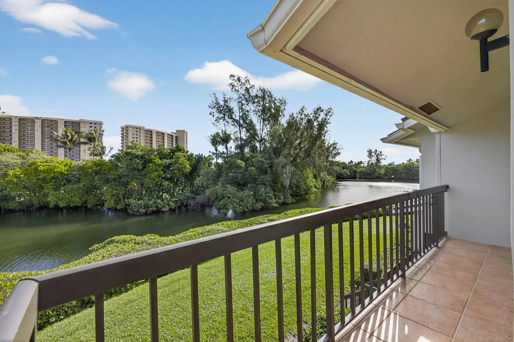 Serene water views of Jupiter's natural estuary from this updated 2nd floor end unit residence in the golf & beachside community of Jupiter Dunes. Surrounded by natural beauty, this home offers peaceful water&golf views all windows. Walk to the turquoise waters of Jupiter Beach, relax on the screened porch or sunny 50' wrap around balcony & enjoy the sea breezes & the sounds of the ocean. Launch your kayak or paddleboard & cruise to the Jupiter Inlet. This special offering features: impact glass, kitchen w/breakfast nook, dining room; living room w/vaulted ceilings; primary suite w/French doors, walk-in closet; guest suite w/golf views; screened porch;waterfront balcony, carport & large storage room. Located in the Jupiter Inlet district, walk to waterfront restaurants & shops A Must See!