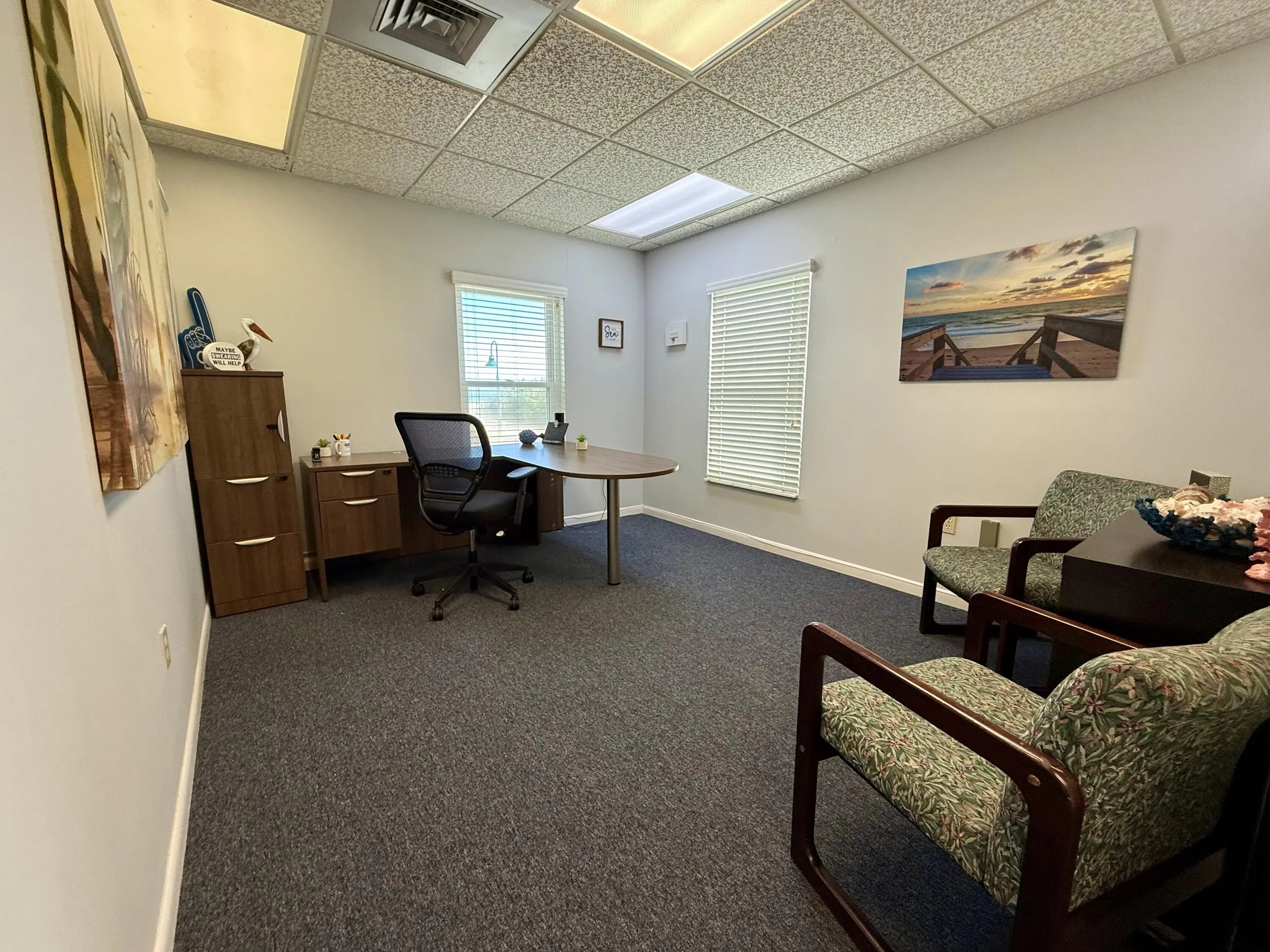 2nd floor ocean view office suite for lease. Approximately 1,050 sq feet. Entry/conference room + 4 offices+ private bathroom. Join Coldwell Banker, Ryen Marine Insurance Group, and others. Stair access only. Nice office space and very reasonable lease rate for Hutchinson Island. New metal roof and impact windows. $1,200/ month plus utilities year 1, $1,300 /month plus utilities year 2 then CPI increases for years 3-5.