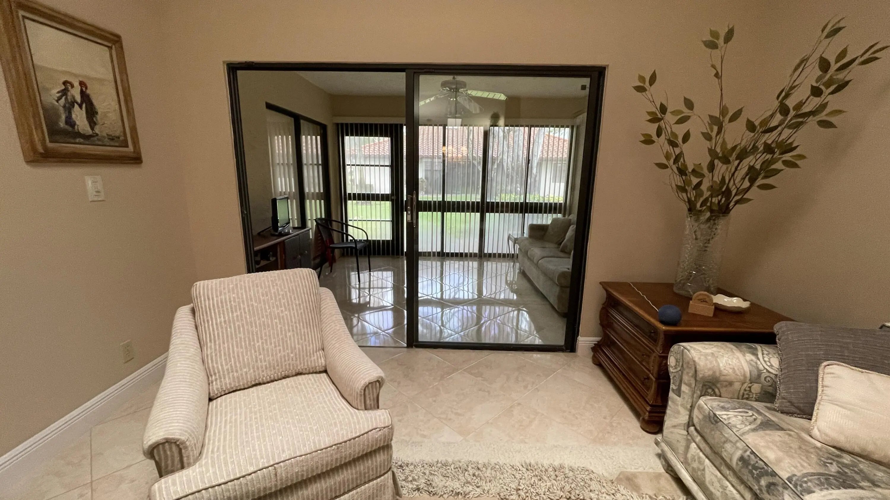 This renovated and beautifully furnished Monaco villa offers 2 bedrooms, 2 bathrooms, and a den, with two parking spaces in the driveway. Enjoy the lifestyle and amenities of this sought-after community. The villa features all-tile living areas, a glass-enclosed sunroom, a fully equipped kitchen, and complete linens for turnkey living. Rent includes water, cable TV, and internet. Huntington Pointe is a premier gated community in Delray Beach, with a newly renovated clubhouse just a short walk away and the outdoor pool on the next block. Amenities include a fitness center, indoor and outdoor pools, tennis courts, café., and a theater of the performing arts featuring top name entertainment. Convenient to shopping and just six miles from the beach.