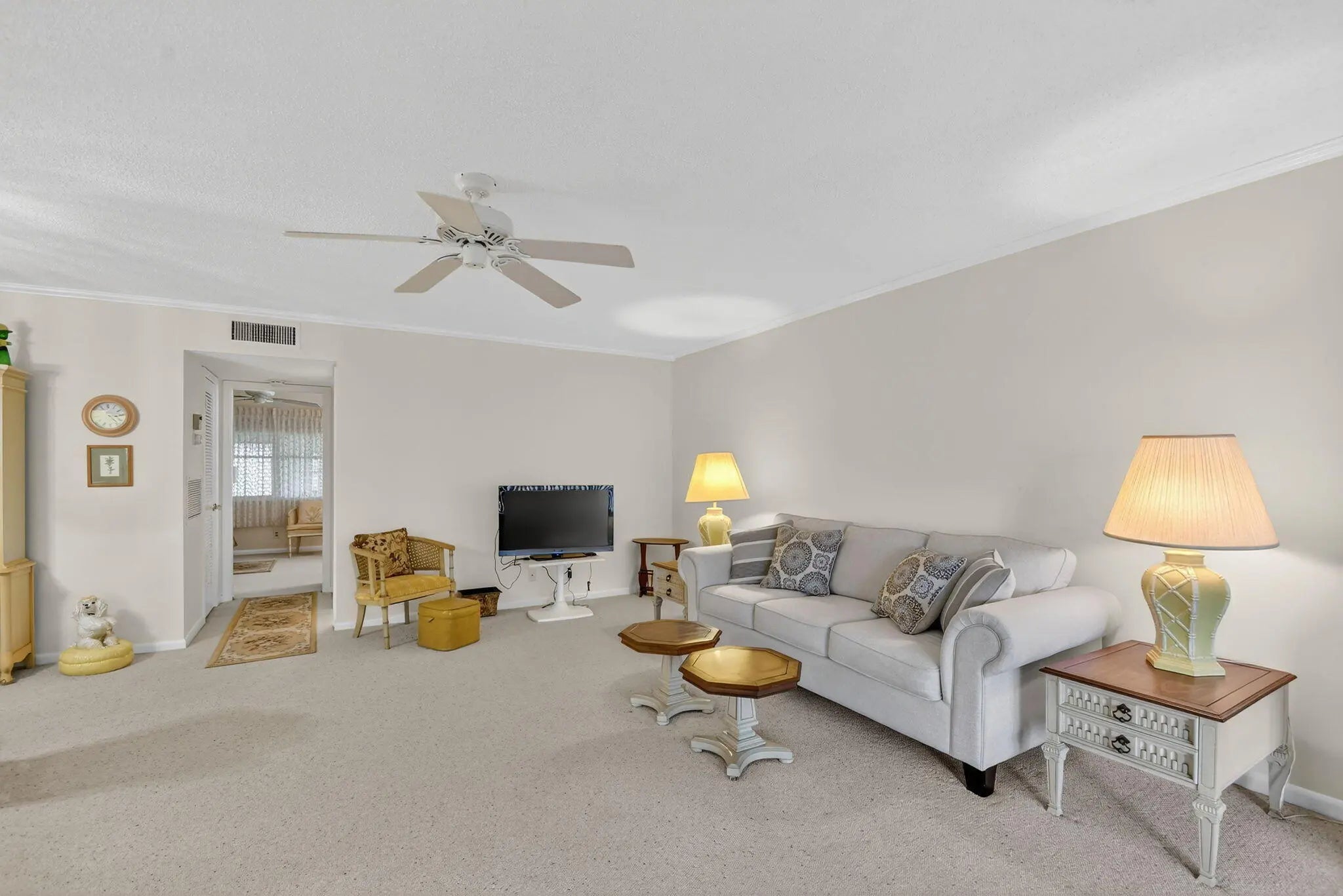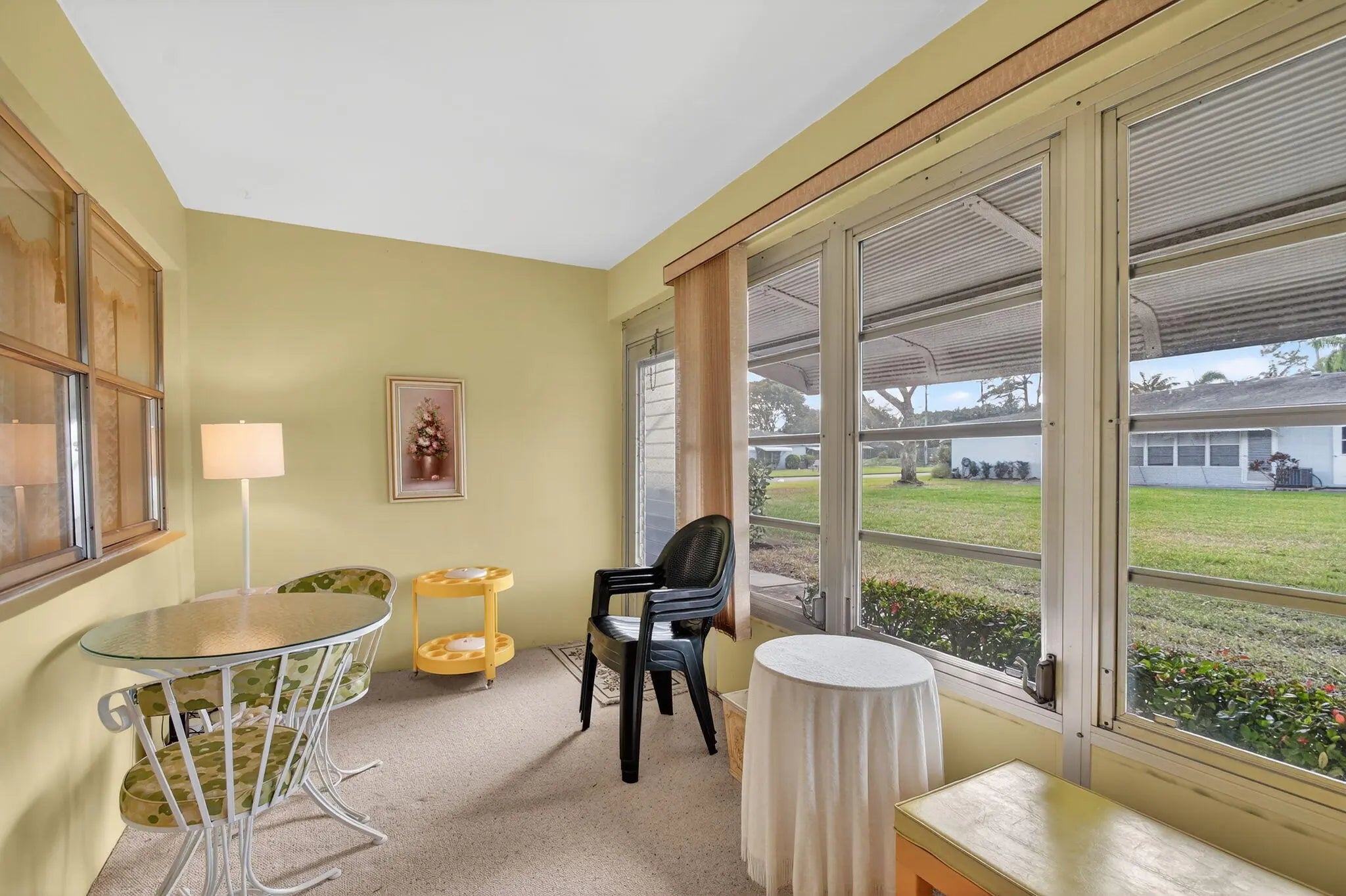 Legacy ownership since construction. Spacious 1 bedroom, 1.5 bath unit with no one above or below. Good sized living room and master bedroom with 2 walk-in closets. Florida room leads out to patio overlooking open green area. Move-in ready with quality furniture and all you need for life in sunny Florida. Right next to laundry room and sparkling pool and clubhouse that can be rented out for all your events. Close to shopping, transportation, and vibrant downtown Delray. Move in and start enjoying paradise.