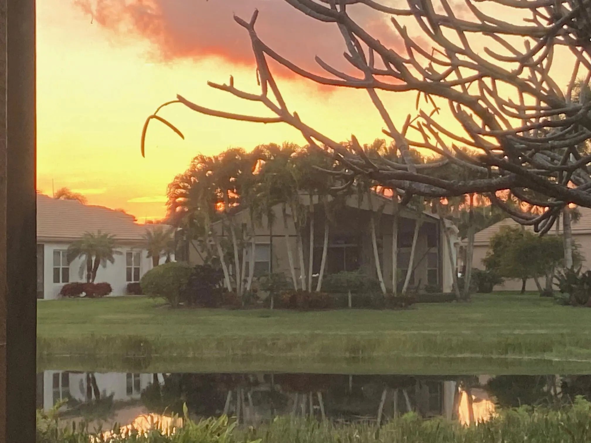 The best 55+ resort living is Valencia Palms. This pristine Adriatic model 3BR/2BA,1,670 sq. ft. home offers an open-concept layout designed for comfort & tranquility. The heart of the home opens to breathtaking water views, where you can witness gorgeous sunsets & observe many different species of birds in their natural habitat. Whether you are relaxing on the screened lanai, or walking to the clubhouse to enjoy the vibrant community amenities—including a massive clubhouse, fitness center,resort pools, billiards, cafe, social events, clubs, shows, pickleball, tennis, bocce, this property delivers the ultimate Florida lifestyle. Full hurricane protection, A/C 2021.water heater 2024. Maintenance fee includes cafe card,cable, internet,security, ext house painting, lawn & tree care.