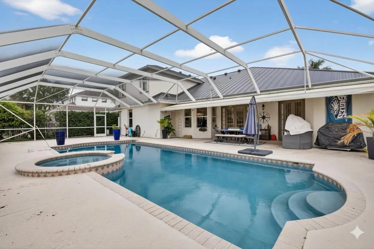 Rare Opportunity in Monterey Estates! Presenting an exceptional luxury estate home offering an impressive combination of size, privacy, and premier lakefront living. This expansive 6-bedroom, 4-bathroom residence is ideally positioned at the tip of the lake on the largest lot within the exclusive, gated community of Monterey Estates, with over 3500 sq ft and a NEW METAL ROOF on a cul-de-sac. This home is a rare gem. This boutique enclave boasts only 45 estates with a remarkably low HOA. The thoughtfully designed split-floor plan features a first-floor primary suite with tranquil lake and pool views, dual custom walk-in closets, and direct access to the outdoor living area. Two additional bedrooms and a renovated Jack & Jill bathroom are also located on the main level, along with a spacious laundry room. Ideal for remote work, the home offers a beautifullyappointed custom office with built-in wood cabinetry. The open-concept living and family rooms showcase soaring volume ceilings, creating a bright and inviting atmosphere. The grand renovated kitchen features a center island and a breakfast nook overlooking the water. The second floor is highlighted by a private movie theater complete with a wet bar and Yamaha sound system, perfect for entertaining, as well as two more bedrooms. Situated less than 15 minutes from downtown Delray Beach, and just minutes away from all major highways, medical facilities, shopping, and top-rated restaurants!