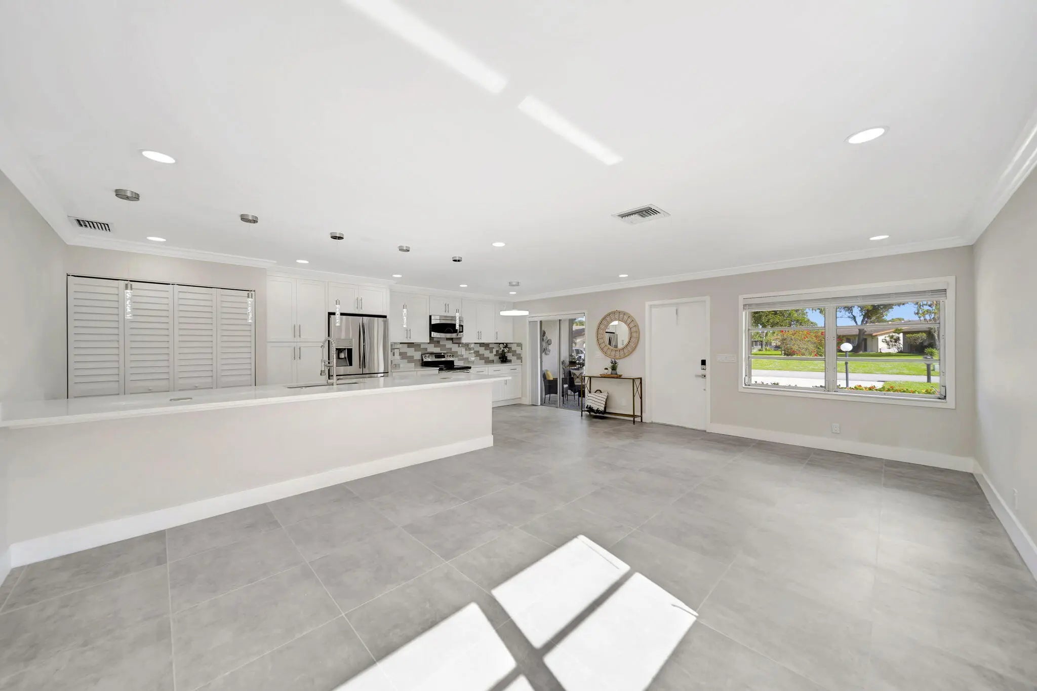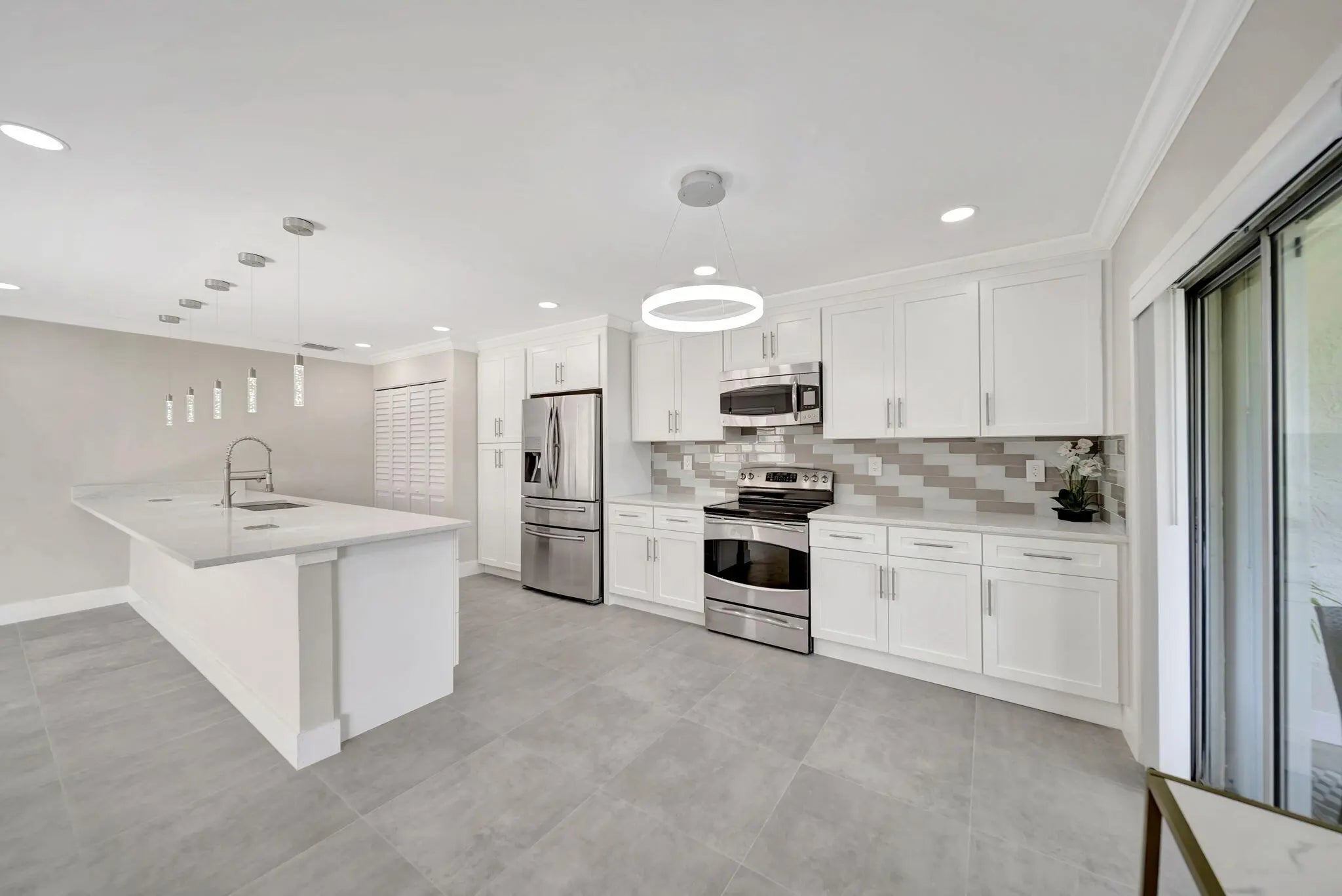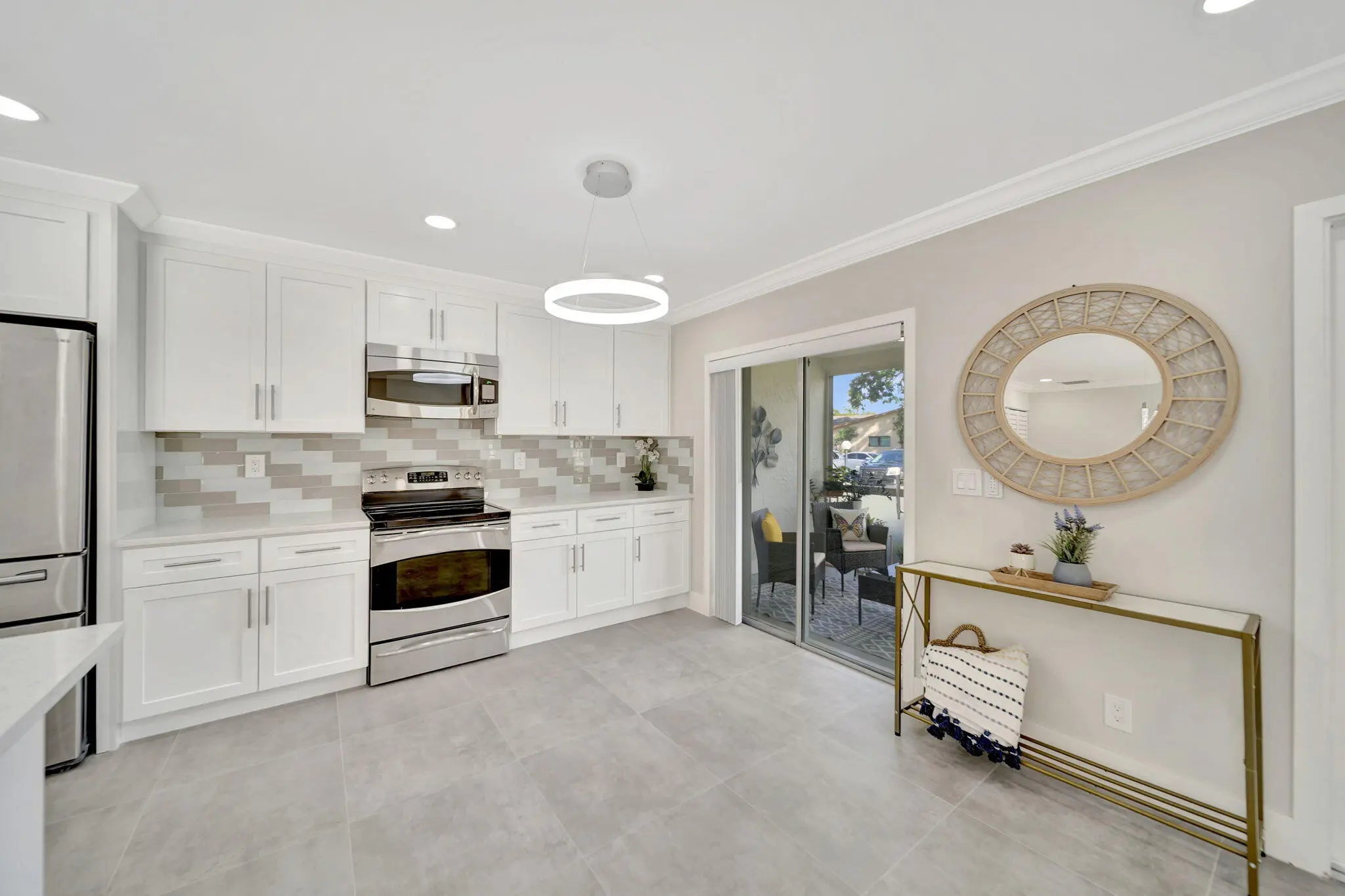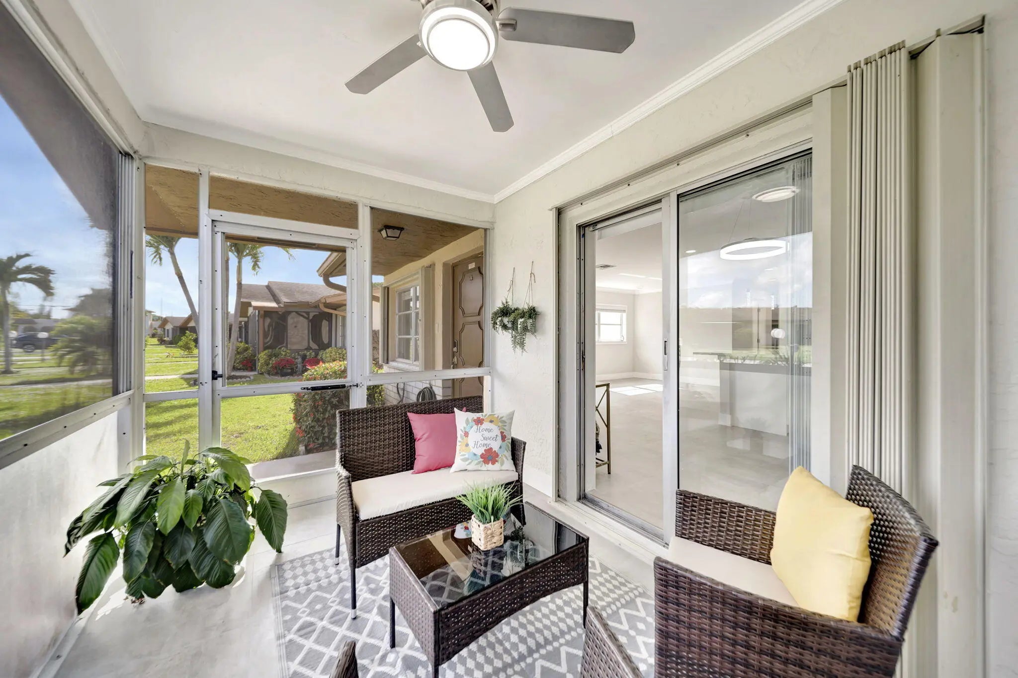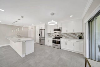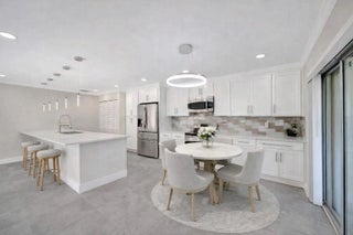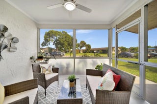 BRAND NEW ROOF! Open floor-plan villa with low HOA monthly fees of $250. As a perk, the HOA is freshly painting the outside of the property. Stunning 24x24 porcelain tile inside, on the screened patio, and outdoor patio - durable, elegant, and far superior to ceramic. 5½'' baseboards, crown molding, new interior doors, and updated hardware throughout. A show-stopping 12.5-foot quartz island with a 12'' overhang for bar stools and two electrical outlets. Stainless steel appliances. 26 recessed LED high-hat lights with dimmers + under-cabinet lighting. Eat-in kitchen, oversized pantry. and more cabinetry than you'll need. Quartz window sills and custom, brand-new window treatments. Custom spa-style showers with curb entry, dimmable lighting, defog mirrors, and designer finishes. Full-size washer and dryer in the unit with shelving. Two hallway storage closets. Walk-in closets in both rooms. Outside, enjoy both front and rear patios, including a screened and tiled patio, perfect for morning coffee or evening breezes. Pets are welcome, and the pool is just a short walk or stroll away. Low-density living with space between neighbors. Landscaping is maintained by the HOA. 5 Miles to the Beach and Downtown "The Ave". Delray Villas III is known for its friendly and relaxed atmosphere. A private Plat III pool, plus full access to the Delray Villas Recreation Association on 13773 Circular Drive off of El Clair Ranch Road. Two clubhouses, theater shows, clubs, ceramics, and billiards. Large heated pool and lap pool, hot tub. Newly renovated gym with modern equipment. Tennis, pickleball, bocce, shuffleboard, and social events. Close to the Farmer's market, The Boys, movies, gas, and coffee. Schedule to see it in person!