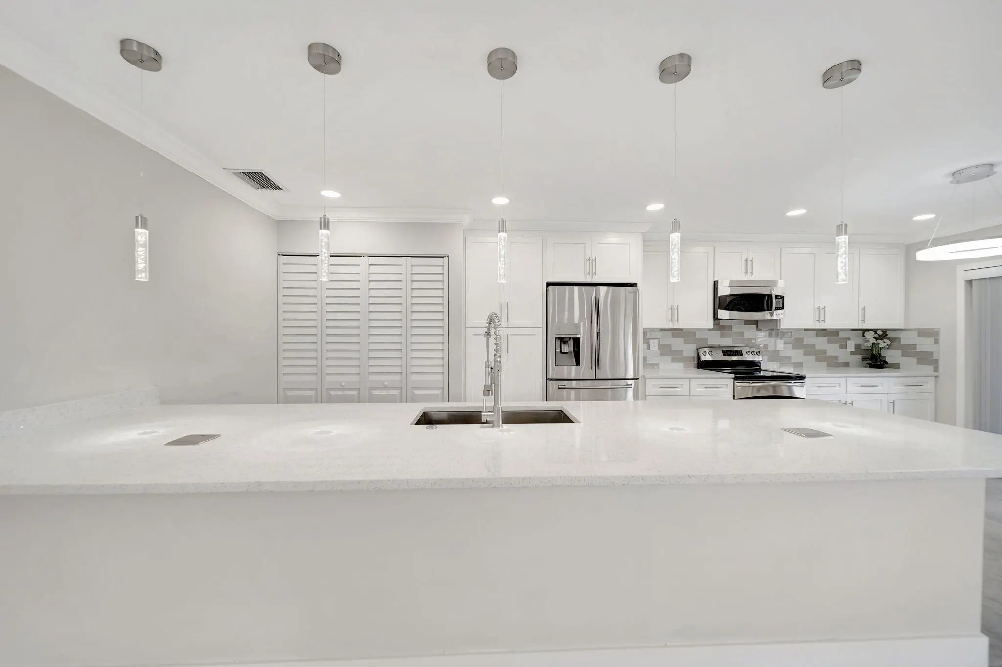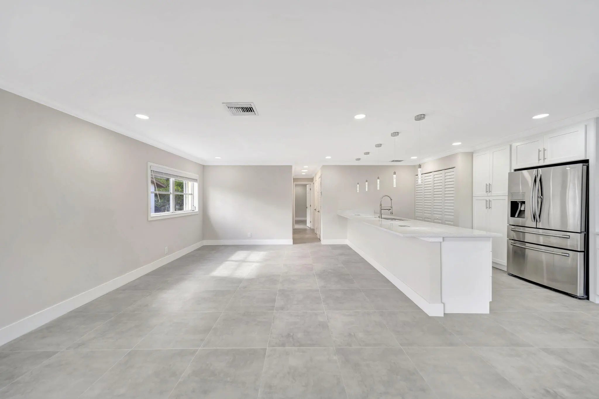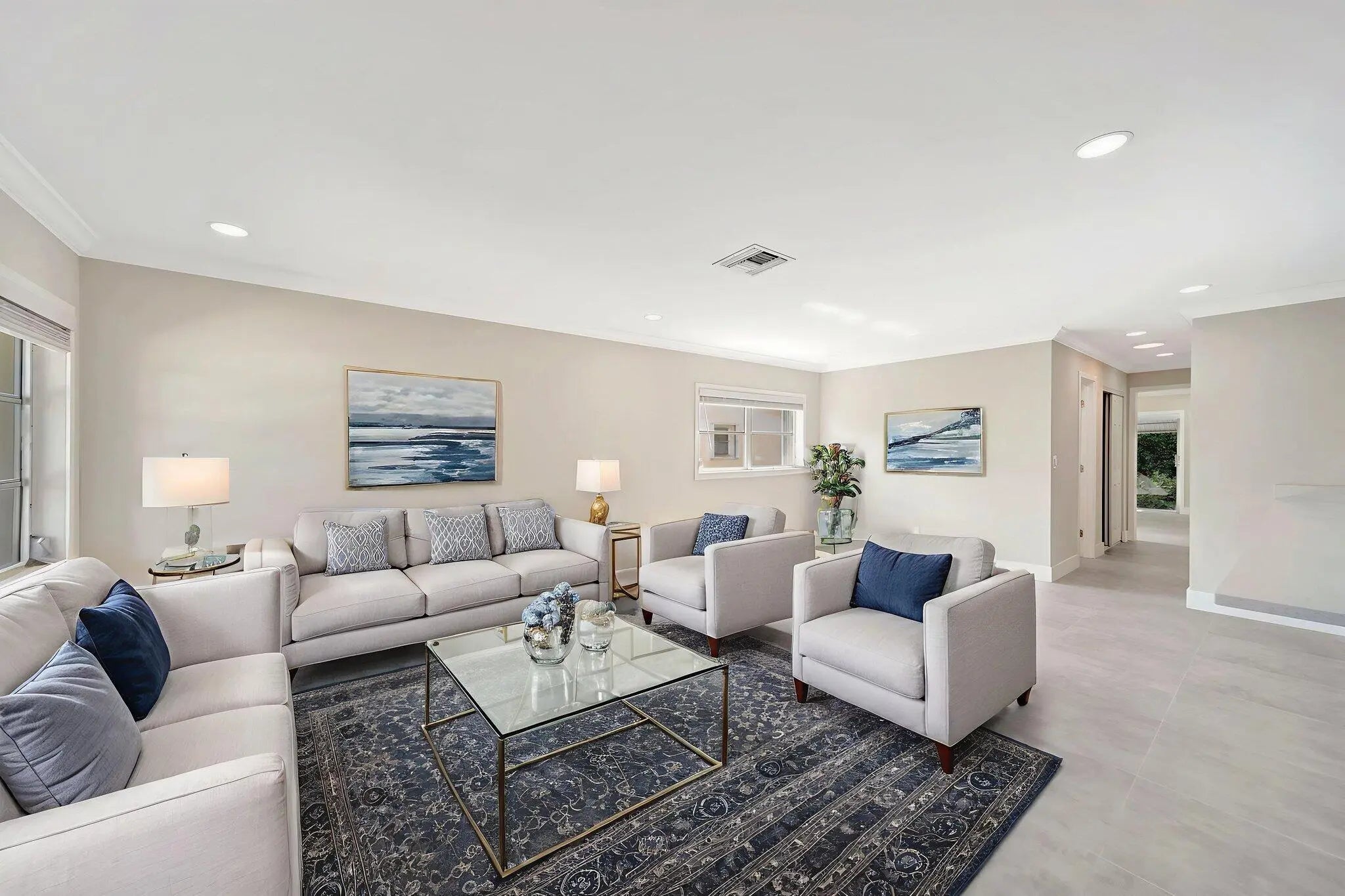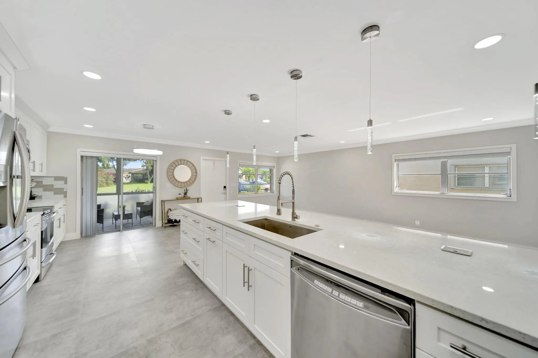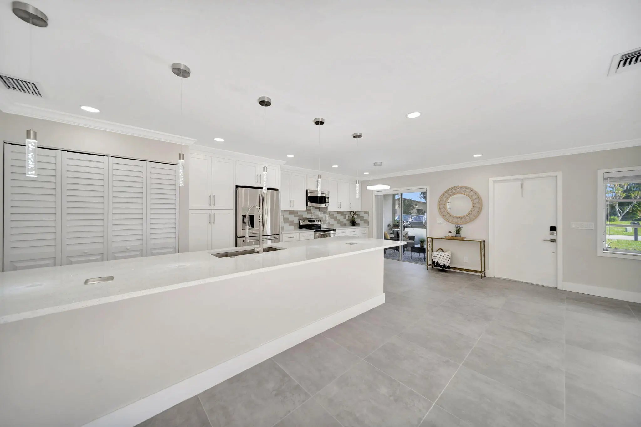 BRAND NEW ROOF! Open floor-plan villa with low HOA monthly fees of $250. As a perk, the HOA is freshly painting the outside of the property. Stunning 24x24 porcelain tile inside, on the screened patio, and outdoor patio - durable, elegant, and far superior to ceramic. 5½'' baseboards, crown molding, new interior doors, and updated hardware throughout. A show-stopping 12.5-foot quartz island with a 12'' overhang for bar stools and two electrical outlets. Stainless steel appliances. 26 recessed LED high-hat lights with dimmers + under-cabinet lighting. Eat-in kitchen, oversized pantry. and more cabinetry than you'll need. Quartz window sills and custom, brand-new window treatments. Custom spa-style showers with curb entry, dimmable lighting, defog mirrors, and designer finishes. Full-size washer and dryer in the unit with shelving. Two hallway storage closets. Walk-in closets in both rooms. Outside, enjoy both front and rear patios, including a screened and tiled patio, perfect for morning coffee or evening breezes. Pets are welcome, and the pool is just a short walk or stroll away. Low-density living with space between neighbors. Landscaping is maintained by the HOA. 5 Miles to the Beach and Downtown "The Ave". Delray Villas III is known for its friendly and relaxed atmosphere. A private Plat III pool, plus full access to the Delray Villas Recreation Association on 13773 Circular Drive off of El Clair Ranch Road. Two clubhouses, theater shows, clubs, ceramics, and billiards. Large heated pool and lap pool, hot tub. Newly renovated gym with modern equipment. Tennis, pickleball, bocce, shuffleboard, and social events. Close to the Farmer's market, The Boys, movies, gas, and coffee. Schedule to see it in person!