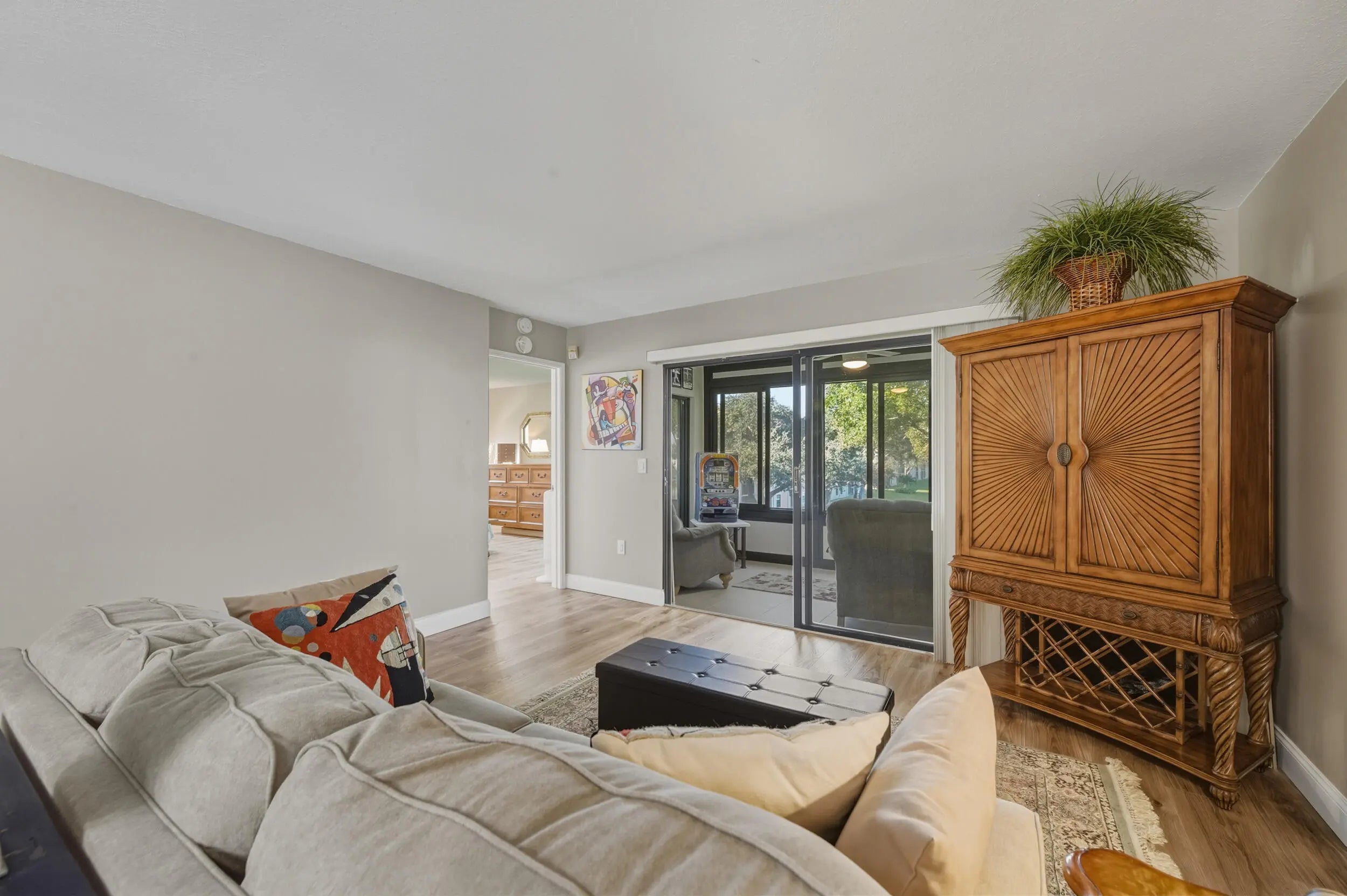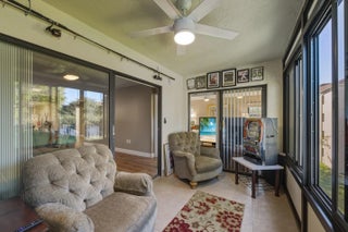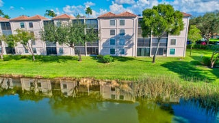 Beautiful 3rd-floor END UNIT in the desirable 55+ Huntington Pointe community with elevator access and 1,460 sq ft of bright, move-in-ready living space. Extra windows exclusive to end units fill the home with natural light. Features include a split floor plan, separate laundry room, and a versatile den/office. The oversized primary suite opens to a screened balcony with tranquil lake views. Additional highlights: new roof 2025, A/C 2023, tankless water heater 2022, all impact windows and sliders, and a nearby locked storage unit. Enjoy gated entry, clubhouse with theater, café, fitness center, and indoor/outdoor pools in this vibrant resort-style community.