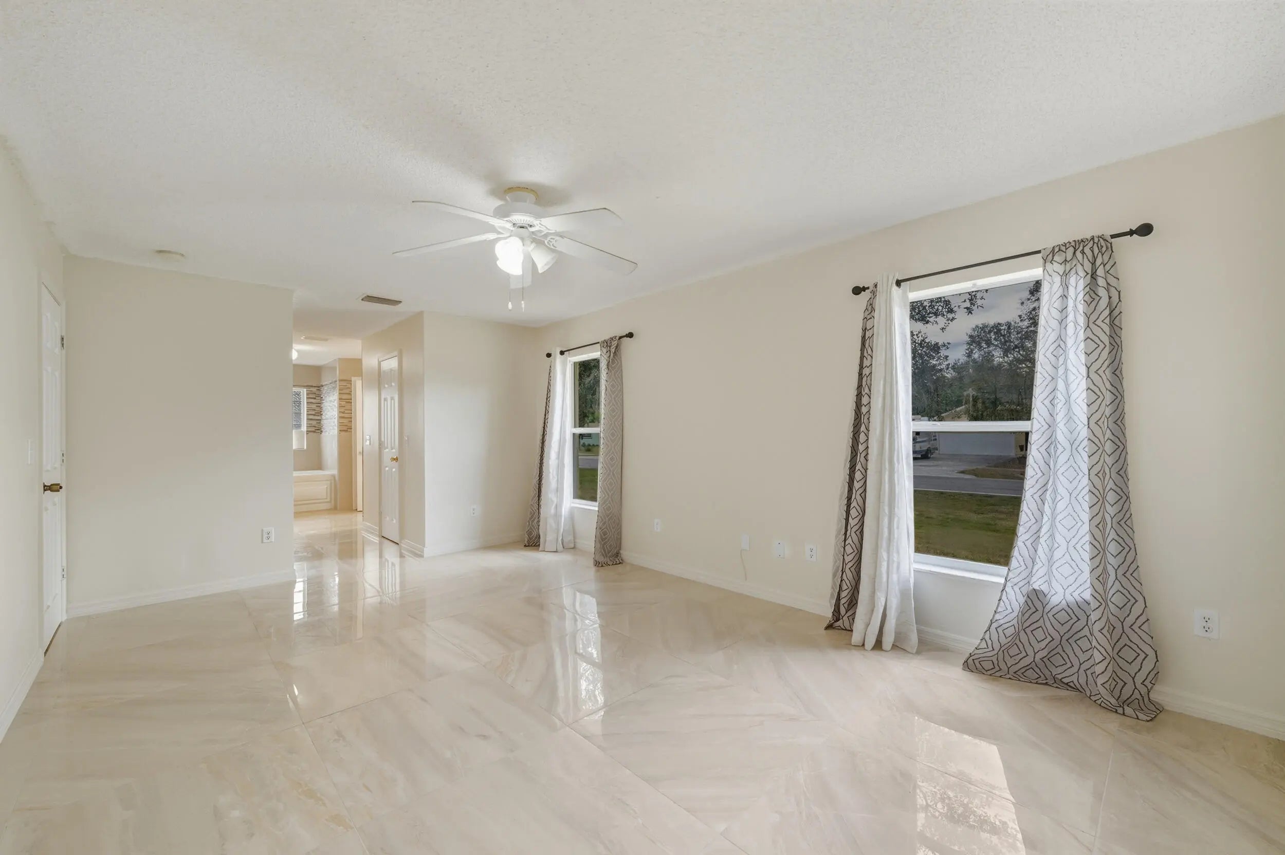 Renovated corner-lot home in Lakewood Park featuring fresh interior paint and new marble flooring throughout. The eat-in kitchen offers new appliances and opens to a spacious living room and formal dining area. The fourth bedroom has been converted into a den/office, providing flexible use of space. The primary bedroom includes a newly installed spa tub, dual sinks, and his-and-hers closets. Additional features include a two-car garage, hurricane shutters, and camera surveillance. Conveniently located near parks, shopping, Vero Beach Regional Airport, Lakewood Park Elementary school & Library. Schedule a showing today and make this home yours!