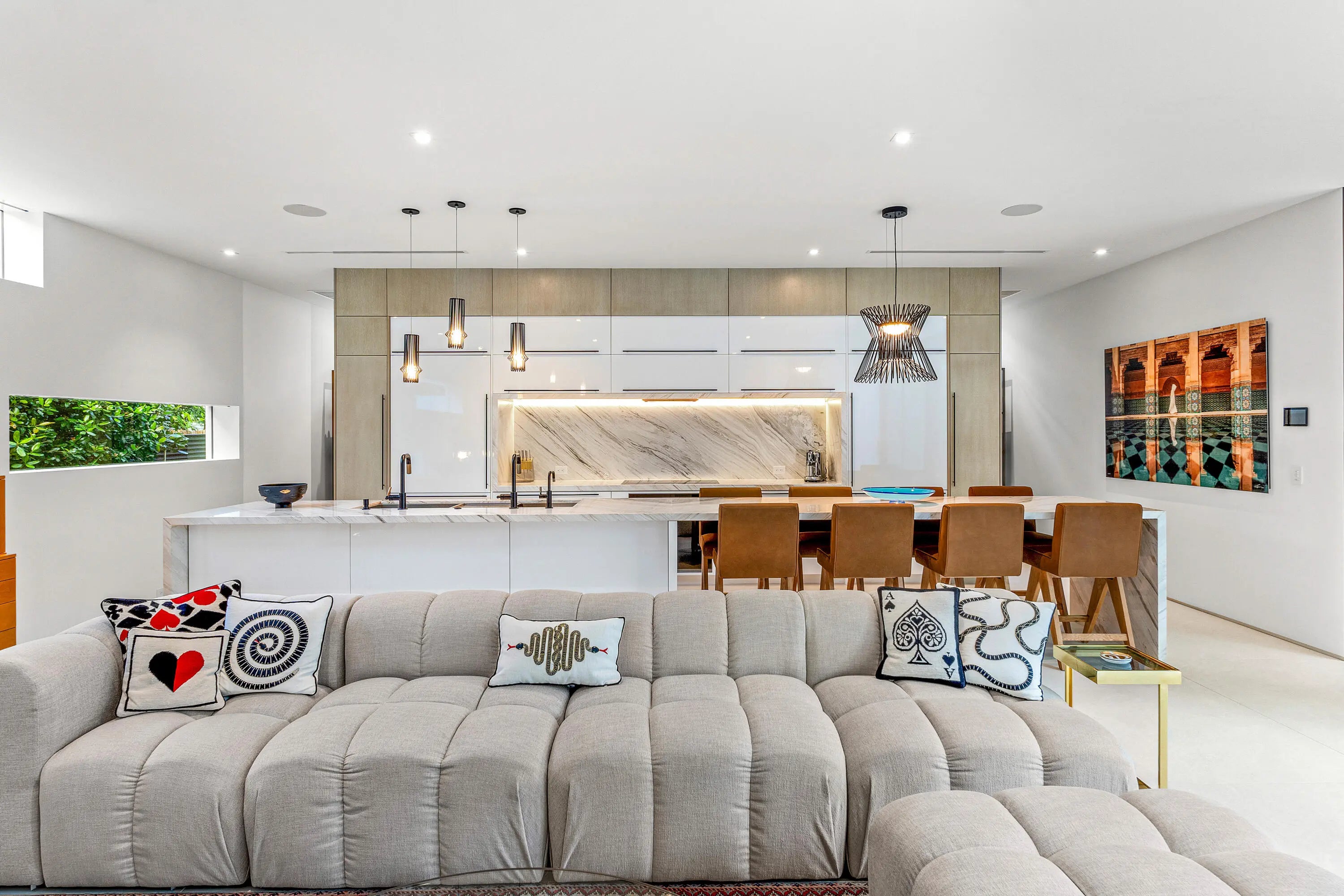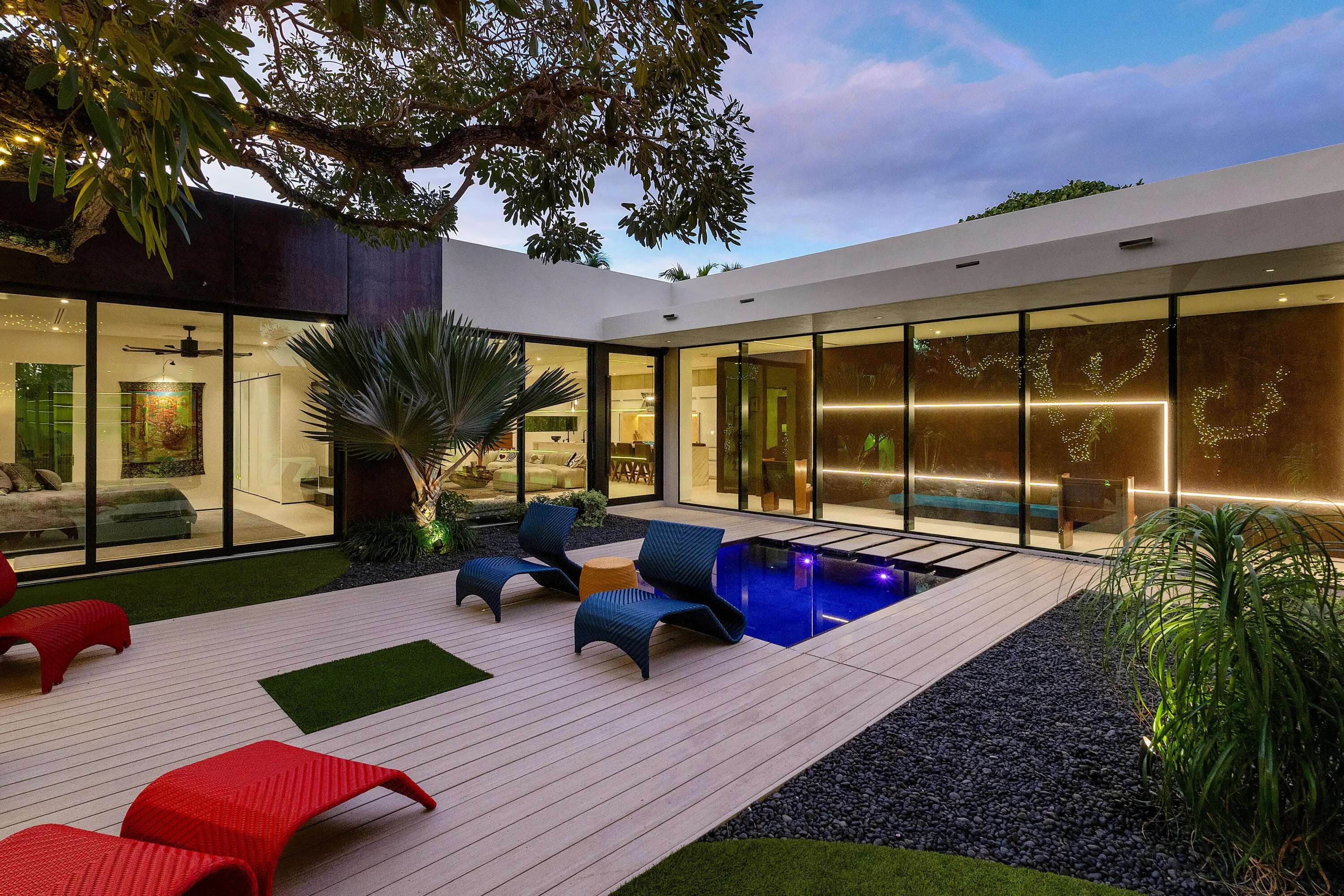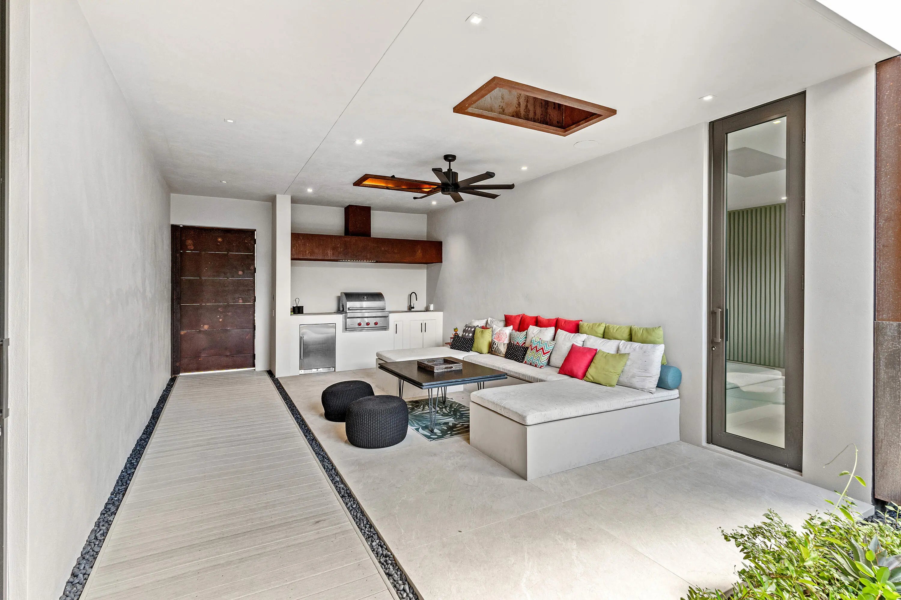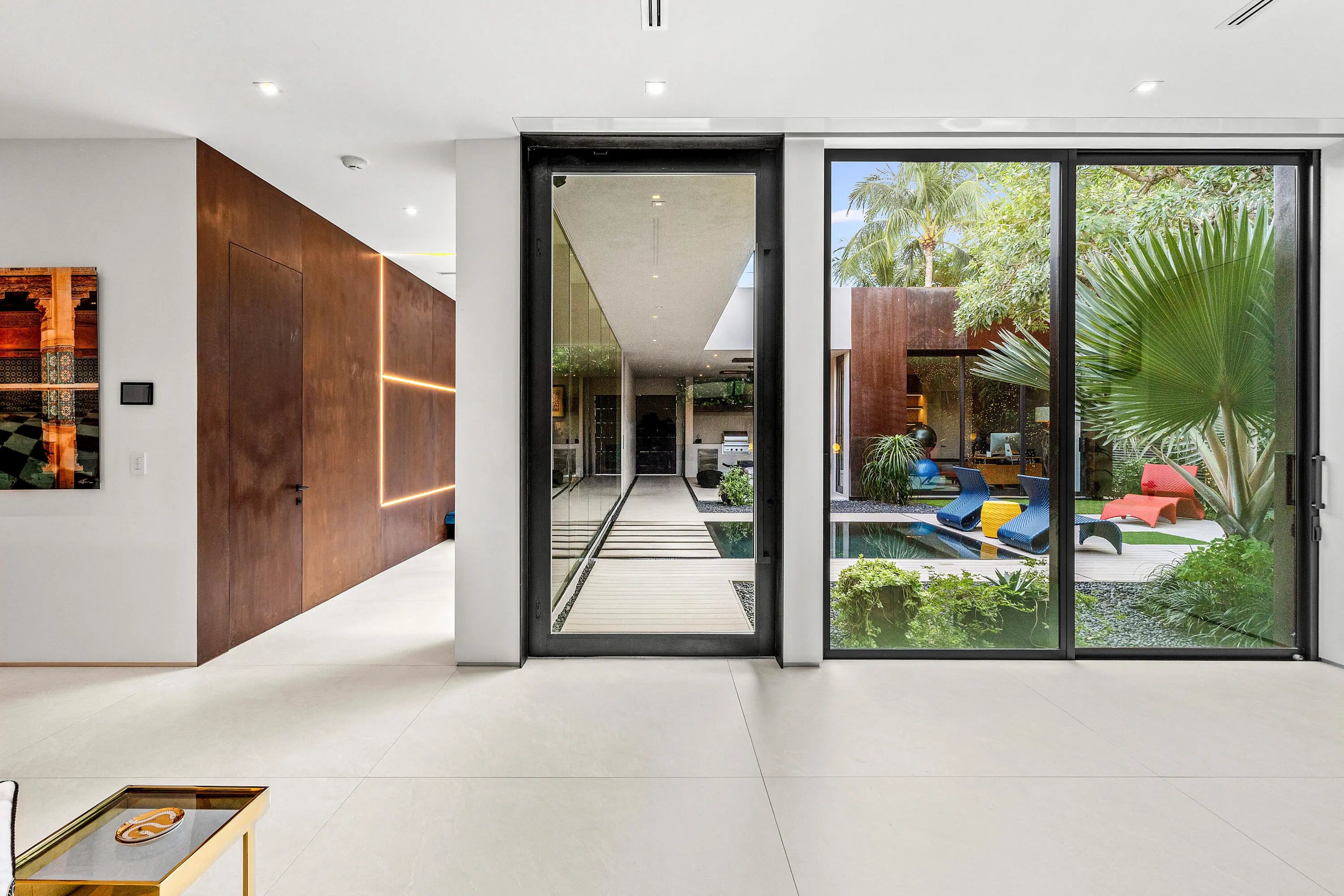 An Architectural marvel, designed by Richard Jones, custom blt in 2020. Experience contemporary elegance in a distinctly tailored setting. This residence seamlessly integrates modern design with opulent comforts, situated in the heart of Delray Beach, adjacent to Pineapple Grove. Featuring 4 BR 4.5 BA, this unique property goes beyond mere aesthetics; the attention to detail & high quality craftmanship is unequaled. Control4 Technology, floating drywall & trim less interior doors, Wolf & Sub Zero appliances, floor to ceiling glass & porcelain flooring throughout are just a few of the highlights in this thoughtful contemporary courtyard residence. A serene-zen inspired pool sanctuary is in view from all corners, including the private casita suite & the lounge loggia space. Super special!