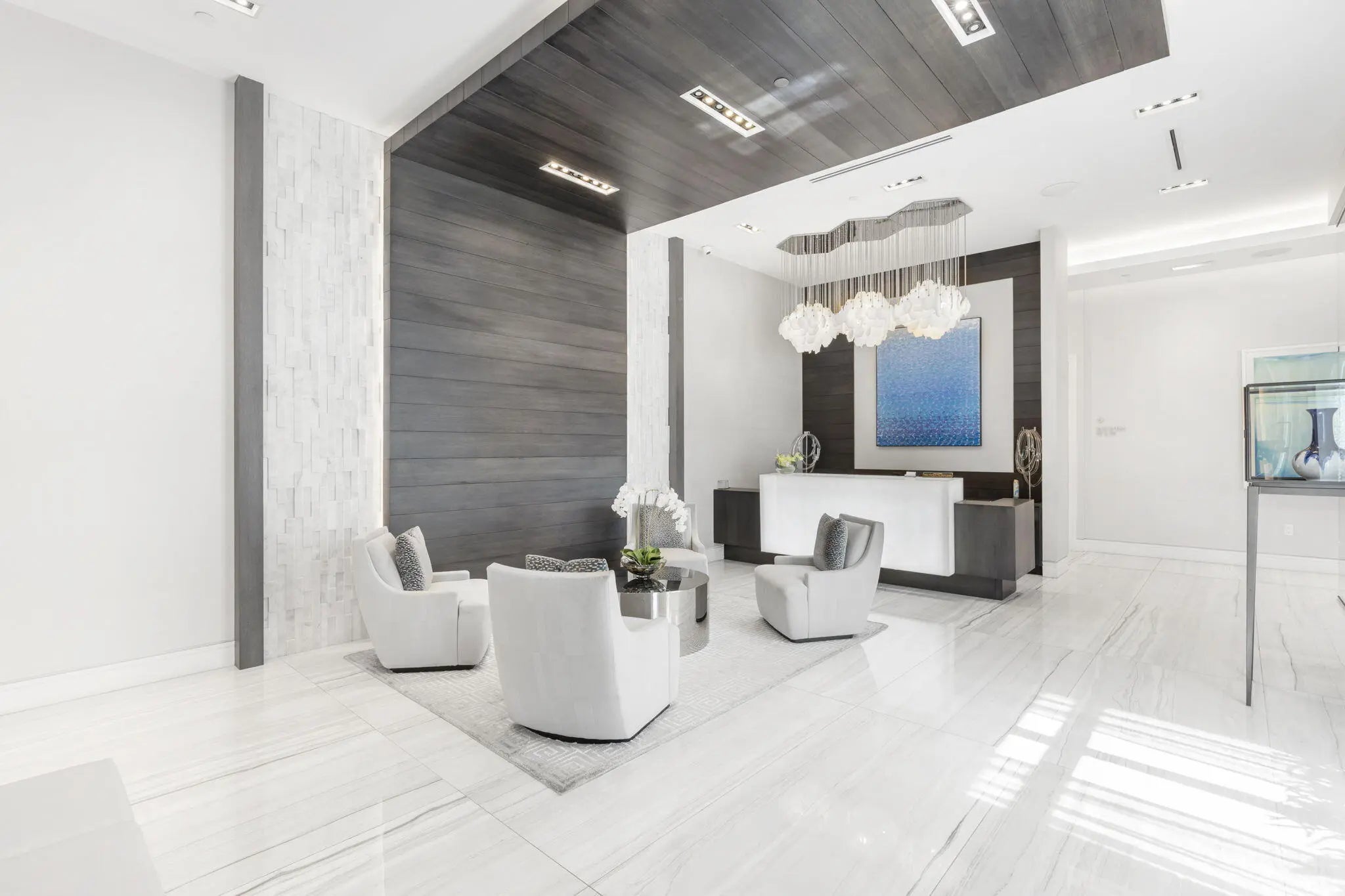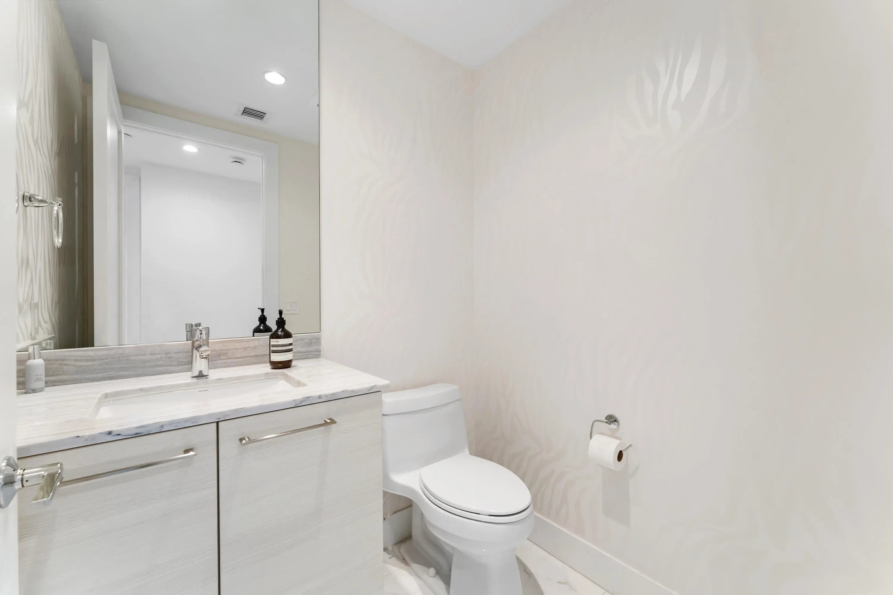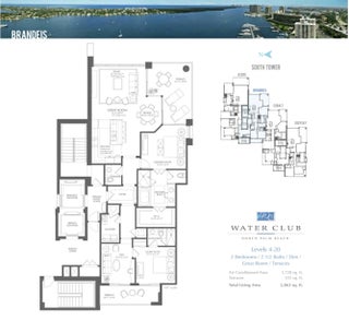 FULLY FURNISHED designer residence at Water Club with breathtaking panoramic water views. Floor-to-ceiling glass fills the home with natural light, while a private elevator entry provides comfort and privacy. Offering 2 bedrooms, 2.5 baths and a designated office/den, this is an ideal turnkey, lock-and-leave residence. Two private balconies - one east for water and sunrise views, one west for sunset skies. One of Palm Beach County's most prestigious waterfront communities, amenities include 24/7 concierge and manned gate, private marina with resident day dock, three pools, two hot tubs, two fitness centers, locker rooms with steam and sauna, beach cabanas, club room, pickleball court, dog park, and resident hotel suites. Pet friendly - up to three pets and no size restrictions. Located minutes from the area's best restaurants, GOLF and shopping. Easy access to I-95 and FL Trnpk, PBI Airport, Palm Beach, West Palm and Jupiter. TRULY SPECTACULAR VIEWS!
