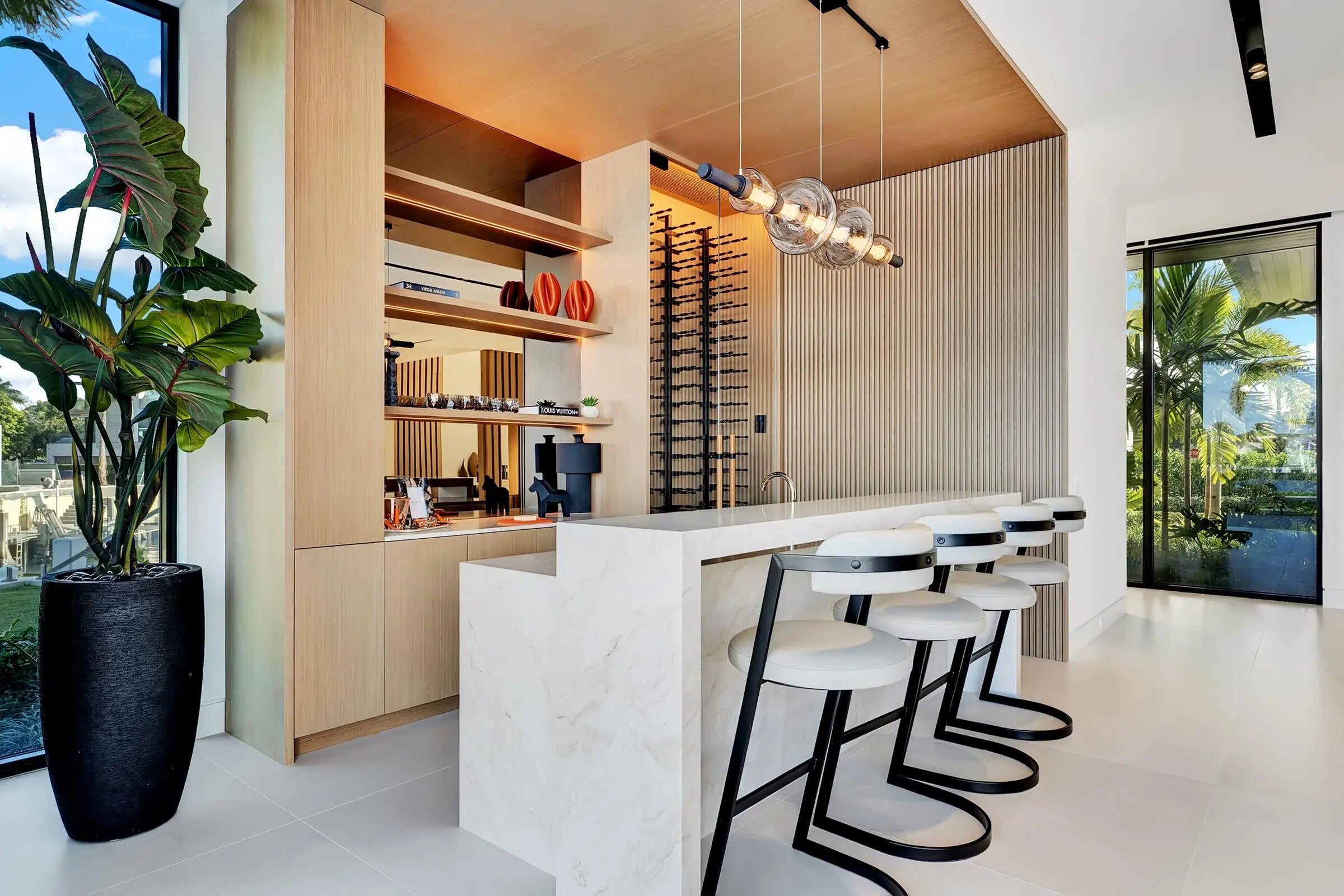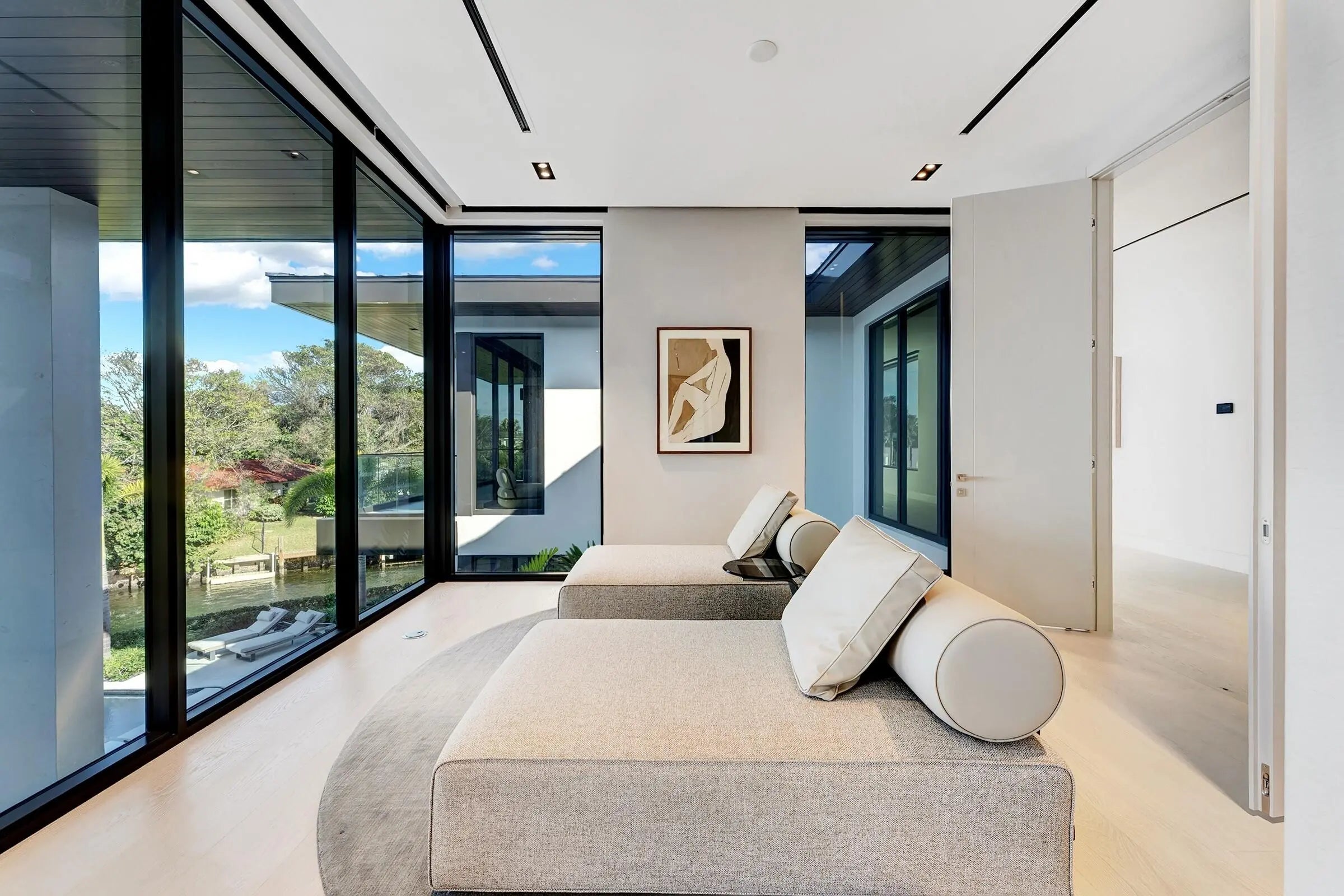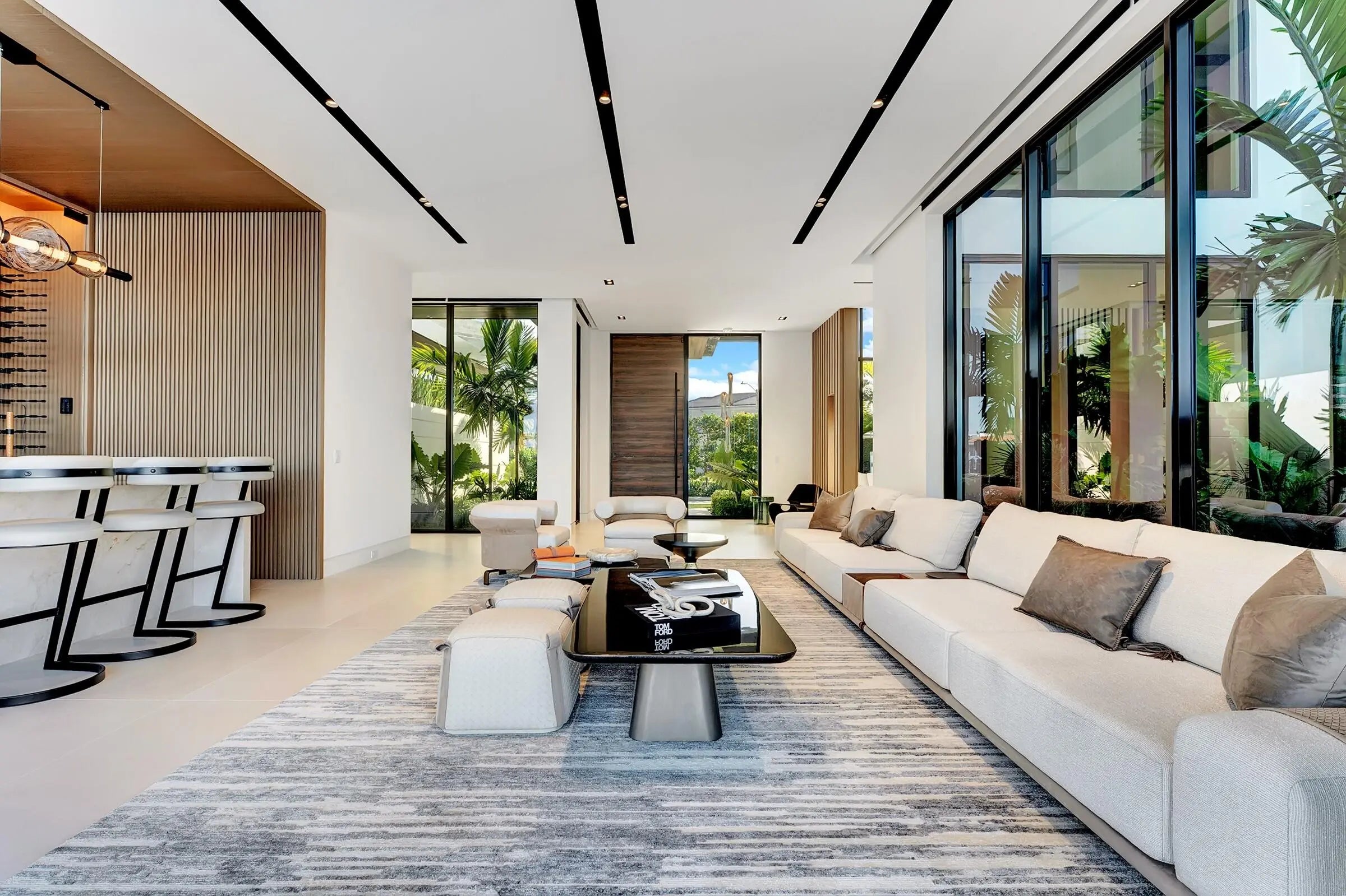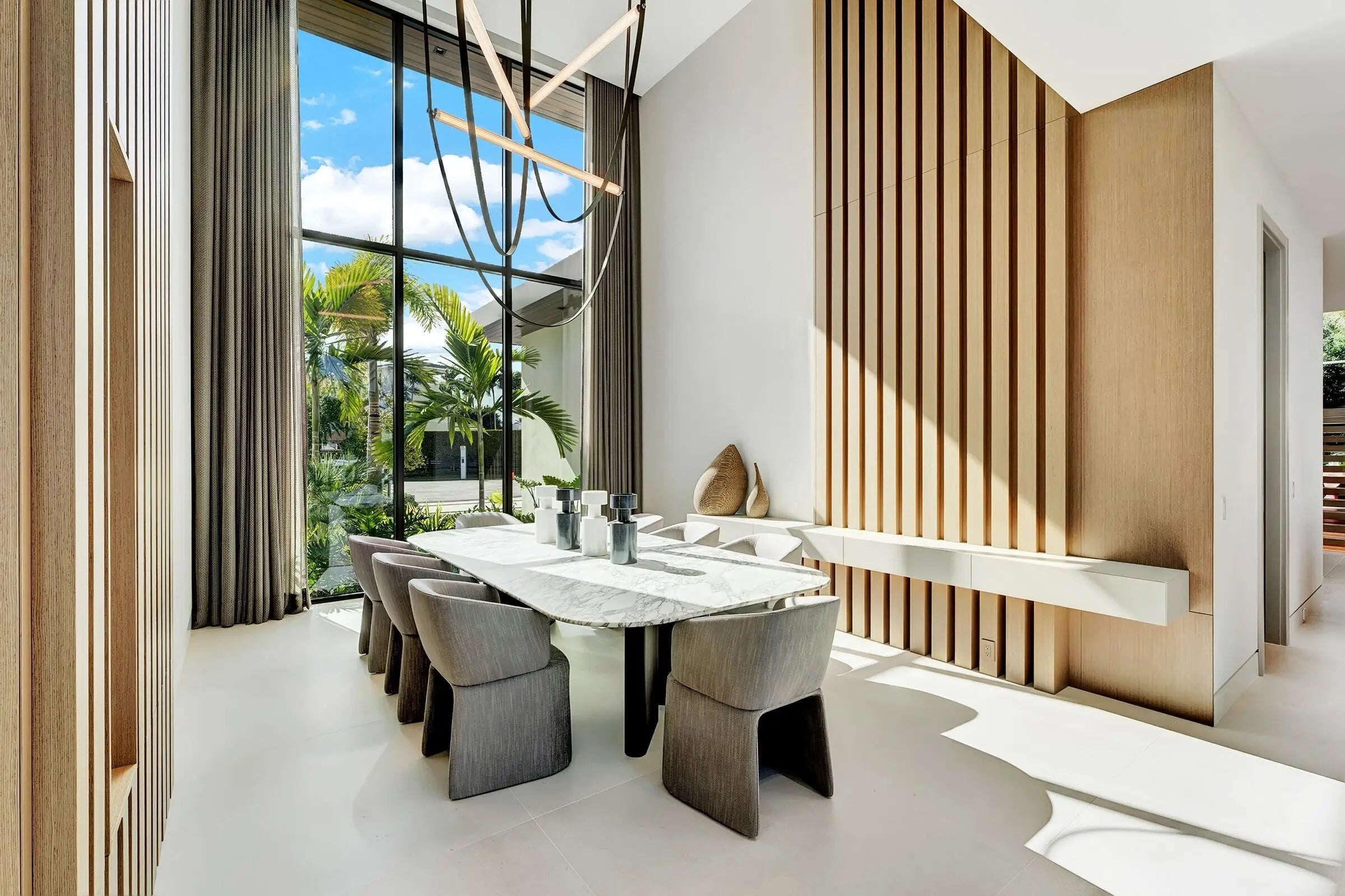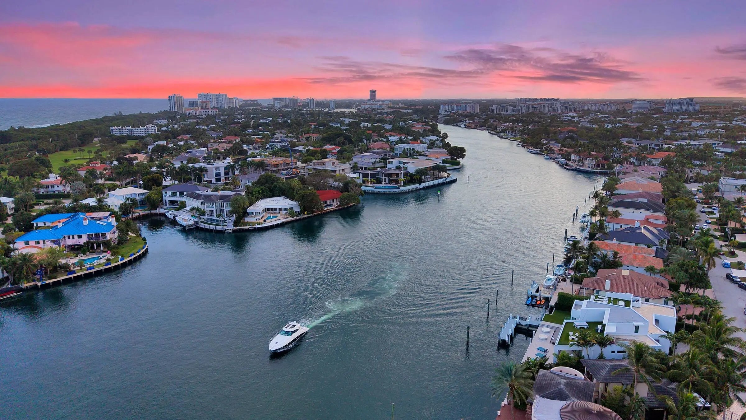 Brand-new Intracoastal estate in Orchid Point offering approximately 230' of waterfront with protected side dockage in a no-wake zone — plus additional dock space on the northwest corner of the property. Positioned on a prime point lot, the residence captures some of the longest Intracoastal views in Boca Raton. A collaboration by Jag Development, In-Site Design Group and Farache Bromberg Design Studio, the home blends modern architecture with warm organic finishes. Floor-to-ceiling window walls, bleached oak flooring, custom millwork and designer lighting enhance the open, light-filled interiors. A fully integrated smart-home system controls lighting, climate, security and entertainment. The main level includes spacious living and family areas, a club/media room, dedicated bar, and downstairs office creating a layout that is truly an entertainer's dream. A private downstairs suite with its own entrance provides convenient access to the dock and is ideal for captain/crew quarters, guests, or a separate workspace. The auto plaza includes a 3-car garage plus additional garage space suitable for captain/crew storage, golf cart or specialty vehicles. Upstairs, the primary suite features sweeping Intracoastal views, two boutique closets, a sitting area, and a spa-style bath with soaking tub overlooking the water. Two additional ensuite bedrooms and an upstairs laundry room complete the second level. Outdoor living centers around a gorgeous infinity-edge pool overlooking the Intracoastal, sun shelf, covered lanai and summer kitchen. The 80'± concrete dock is tucked away in its own private canal, offering protected mooring, along with a newly constructed 230'± seawall and cap. Built above FEMA elevation with impact glass and modern mechanical systems. Located minutes to Boca beaches, The Boca Raton and Beach Club. Shown by appointment only. Proof of funds required for all showings.
