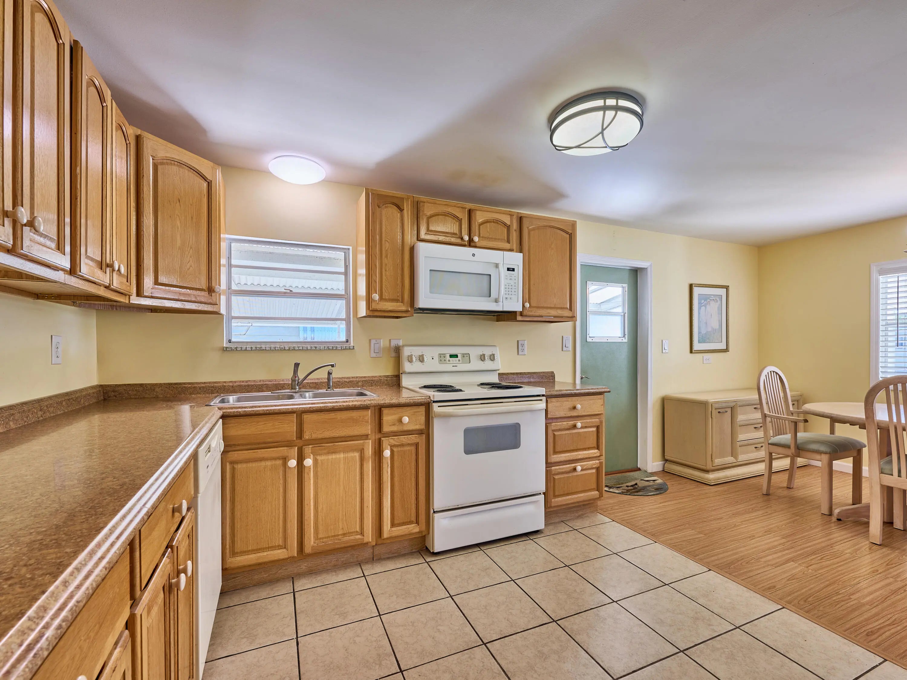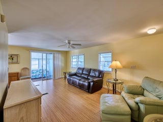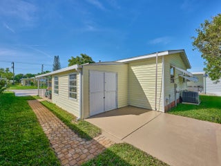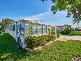 Updated & well-loved 2 Bedroom/ 2 Bath Doublewide in Ridgeway, all ages, community in Hobe Sound. Sheetrocked walls, Laminate & ceramic tile flooring thruout over plywood sub-floors. The soft pastel colors & abundant windows make this home so light & bright & SO FLORIDA! The sunny front porch will be your hang-out spot which flows into a screened & glassed in Lanai. The LR is large & flows beautifully into the Kitchen & Dining area. Newer Kitchen appliances & Lighting. The light filled Master Bedrm is a good size w updated Master Bath. The 2nd Bedrm is inviting, as well, w an updated 2nd full bath on the hall. Other notable touches are the addition of custom trim work & 6 panel doors. The private backyard is an oasis of ever-blooming shrubs. 2022 A/C. Large shed. Mins to ocean beaches.