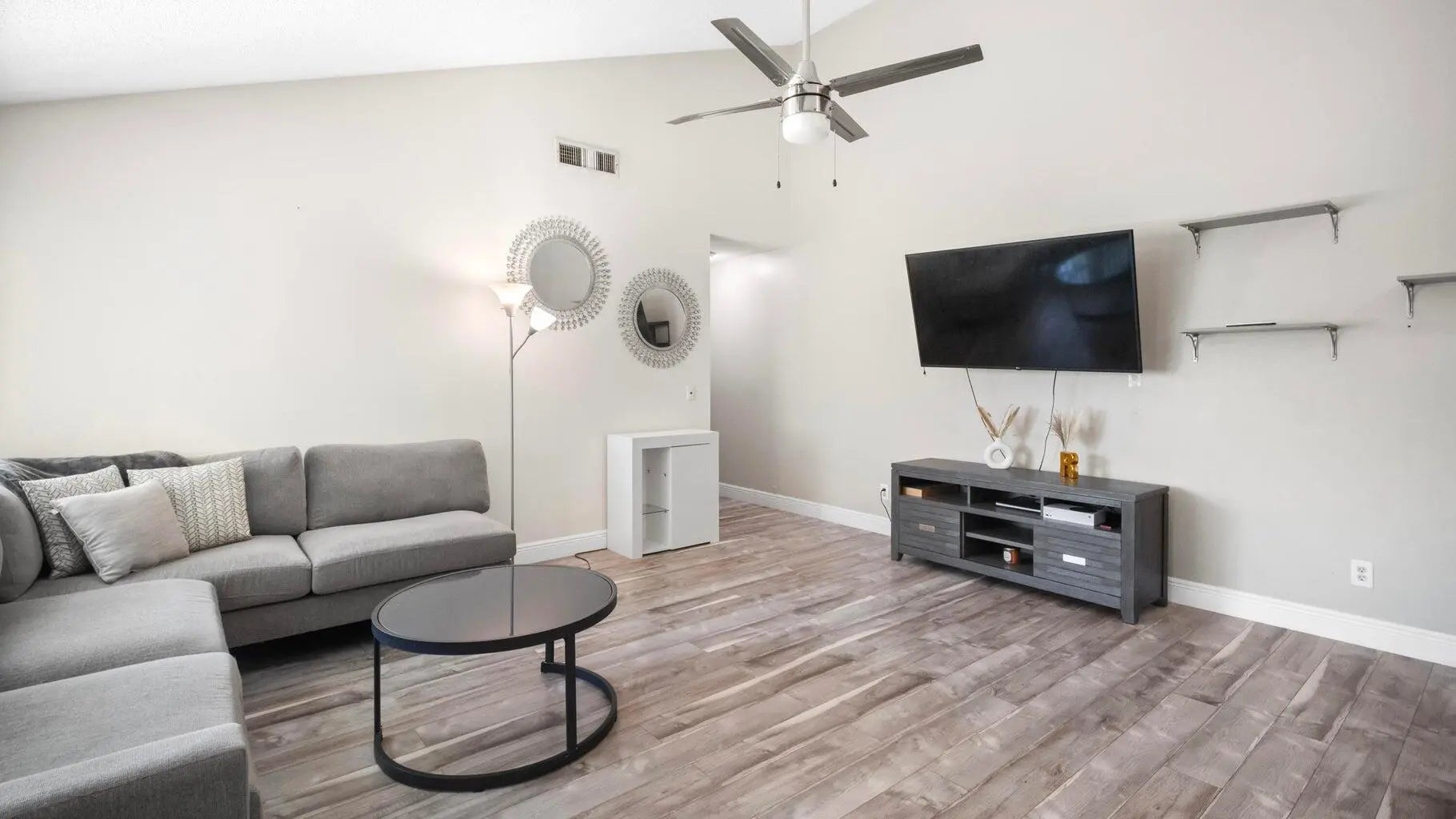 Discover this rare 3 bed, 2 bath townhouse in the charming Timberlane community of Greenacres, offering beautiful sweeping water views. Enjoy a bright open floor plan with cathedral ceilings, ceramic tile floors, and abundant natural light. The kitchen features granite counters, updated appliances, and ample storage. The primary suite offers high ceilings, dual closets, and a private bath. Two spacious bedrooms sit on the opposite side with a cabana bath and in-unit laundry. Every room opens to the private fenced-in patio with a huge screened space perfect for entertaining. LOW HOA, pet friendly, and close to shops, restaurants, the Turnpike, and golf courses.