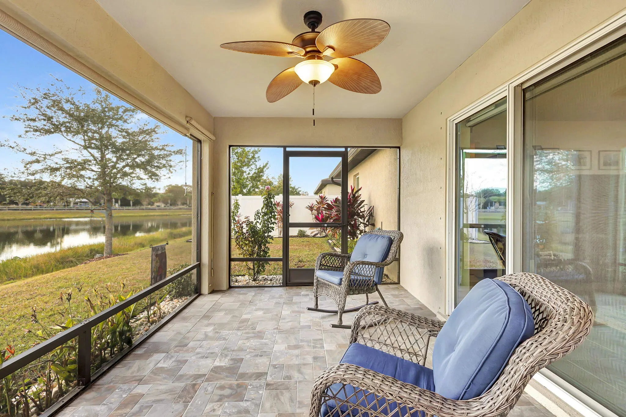 WATERFRONT **RARE opportunity** to own this sought-after single-story San Marino model by LGI Homes, built in 2020 in Celebration Pointe. At almost 1700 sq ft, this open, light-filled layout showcases tranquil pond views from the living room, kitchen, dining area, and primary bedroom. The home offers 3 bedrm and 2 baths, featuring **oversized granite kitchen countertops**, energy-efficient appliances, a security system, WiFi-enabled garage door, and whole-home gutters. The professionally landscaped yard is fenced on three sides for added privacy. Offered **fully or partially furnished**, this property is truly move-in ready. Ideally located near beaches, shopping, dining, and entertainment, with quick access to I-95 and the Florida Turnpike. Homes like this are limited—don't miss this one