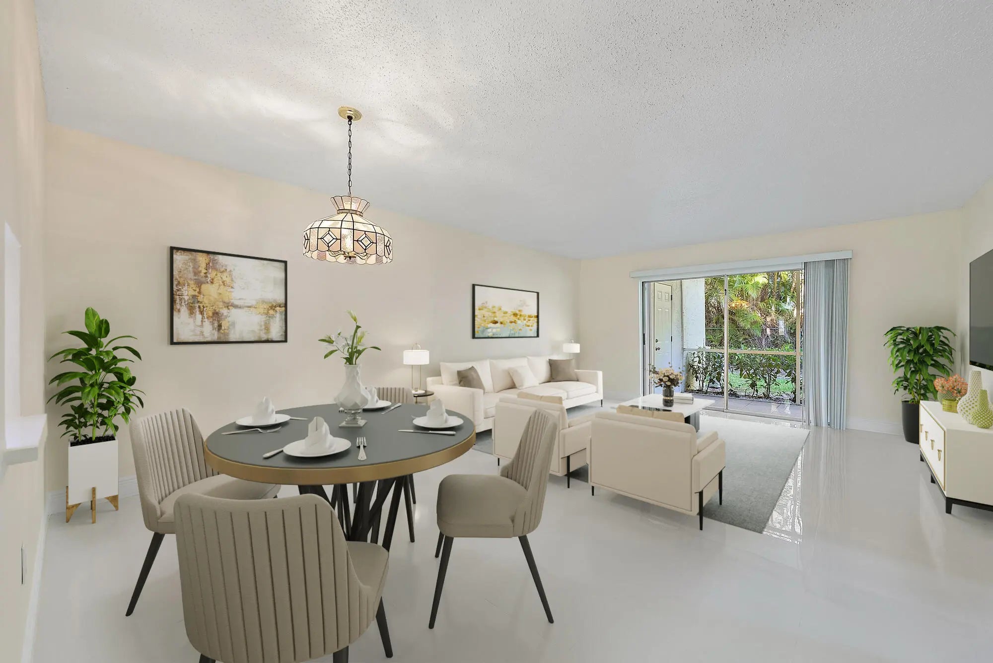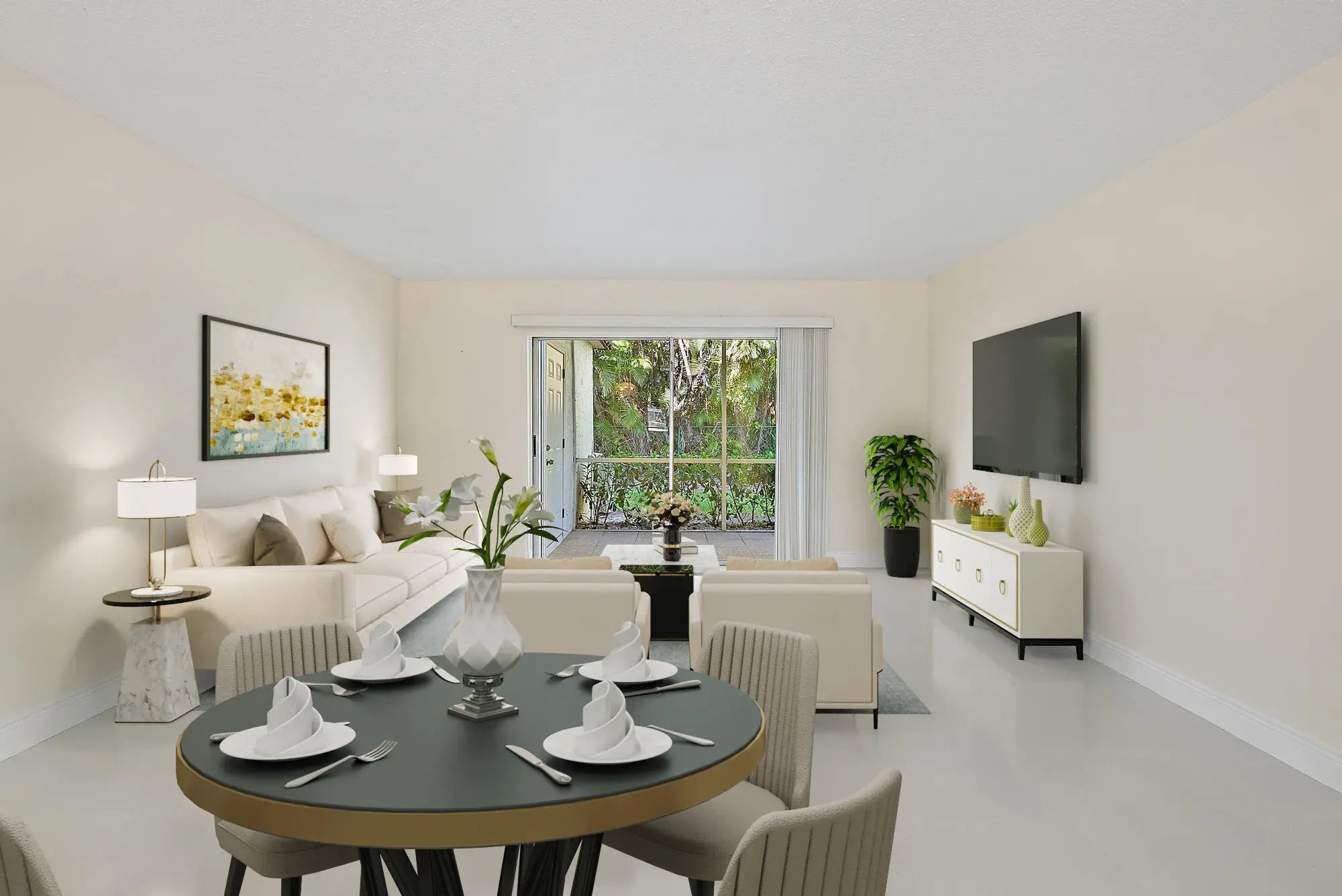 Ideally located in the heart of Jupiter, this first-floor 2-bedroom, 2-bath residence in Villas on the Green offers the perfect blend of convenience and coastal living. Situated just off US Highway 1 and near the water, this central location puts you within walking distance of the ocean and beach, and only minutes from Jupiter's shops, dining, and everyday essentials. The community offers amenities including a pool, tennis courts, pickleball, shuffleboard, and well-maintained common areas. Inside, the unit features a functional and inviting layout. Upon entry, the kitchen is located to the left, while the guest bedroom sits to the right, filled with natural light and offering comfortable closet space. A full bathroom connects to the guest bedroom and also serves as a guest bath. The home opens into a spacious combined living and dining area, ideal for both relaxing and entertaining. All windows are impact-rated, with accordion shutters on the sliders for added peace of mind during hurricane season. The primary bedroom is positioned just off the main living space and includes a walk-in closet, en-suite bath, and direct access to the screened patio. Sliding doors from both the living room and primary bedroom lead to a private, secluded patio that does not back up to other buildings - creating a peaceful setting perfect for morning coffee or unwinding at the end of the day. Don't miss your opportunity to own in the heart of Jupiter and enjoy an unbeatable location close to the beach, water, and everything the area has to offer - schedule your private showing today!