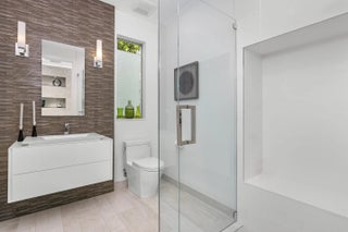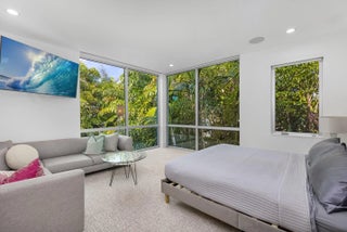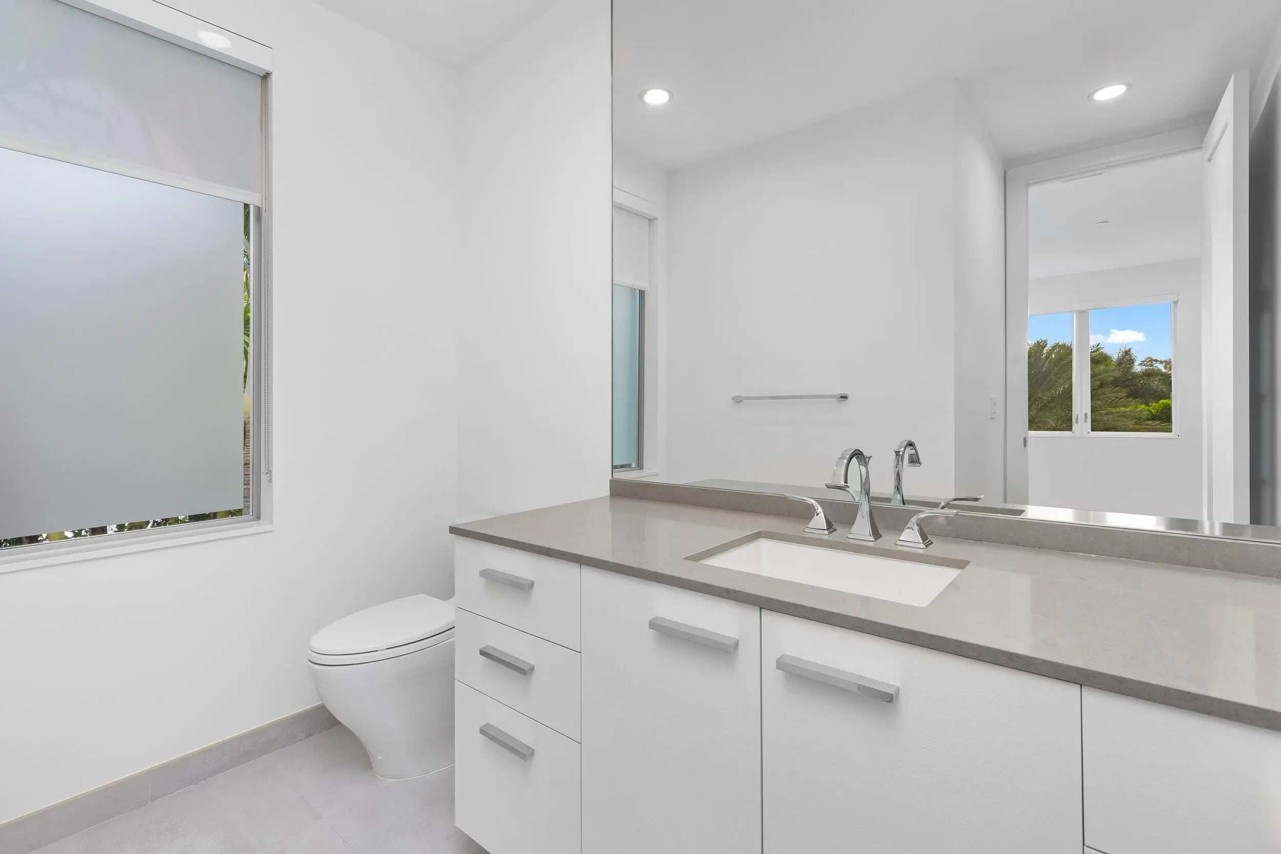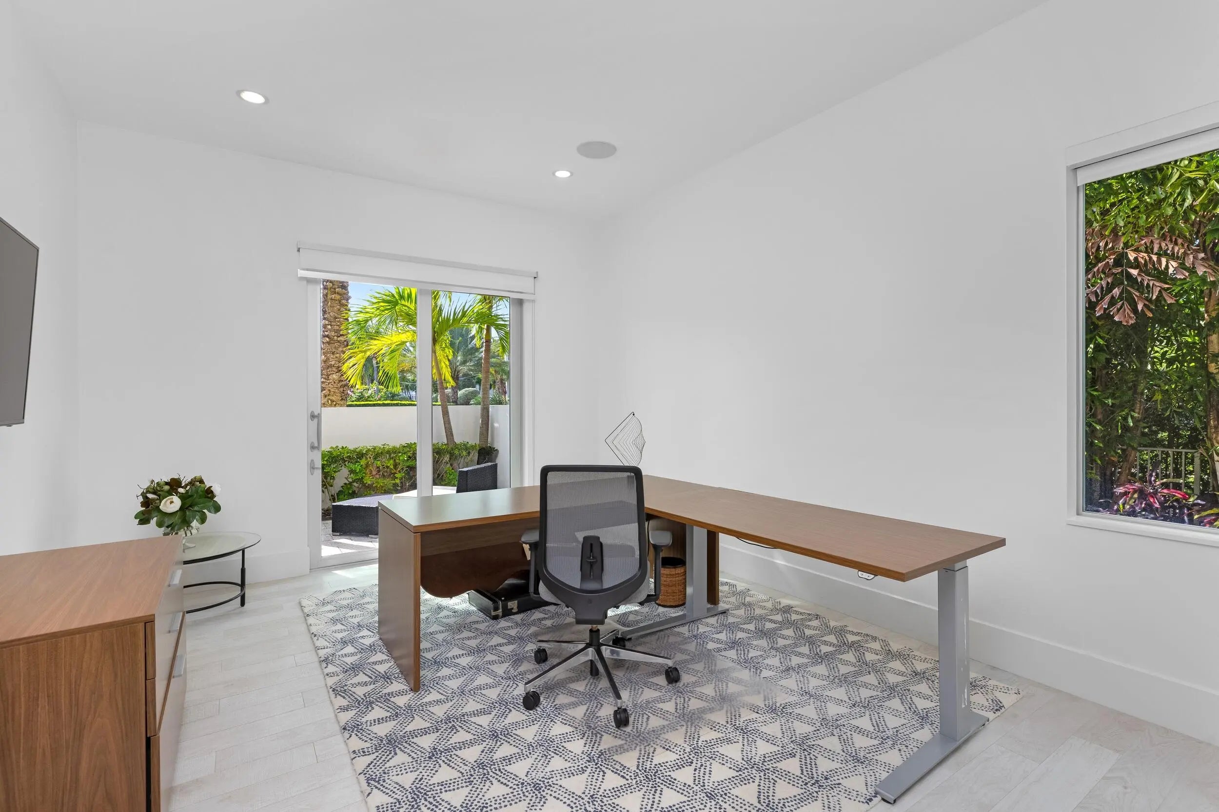 Modern corner-lot home built by JH Norman and designed by George Brewer Architects, with soaring ceilings, walls of glass, and a seamless indoor-outdoor flow to a pool, spa, and lush mature landscaping. The open kitchen features Miele appliances, a dramatic oversized island, and wine storage. A main-level flexible room, upstairs en-suite bedrooms, spa-inspired primary suite, three-car garage, and elevator complete this private, refined retreat. Light-filled interiors, generous entertaining spaces, and thoughtfully designed layouts combine with privacy and modern design, just steps from the beach and moments from Atlantic Avenue, offering effortless coastal living in one of Delray Beach's most coveted neighborhoods. while an additional room on the main level provides flexibility for a home office, media room, or guest suite. Upstairs, all bedrooms feature en-suite bathrooms, and the primary suite serves as a private retreat with a spa-inspired bathroom that complements the home's modern design. Additional features include a three-car garage, thoughtful storage, and a layout that supports easy day-to-day living. Just moments from Atlantic Avenue's dining, shopping, galleries, Green Market, live music venues, and nightlife, this home allows you to enjoy the energy of downtown Delray while returning to the quiet character of one of the area's most established beachside neighborhoods.
