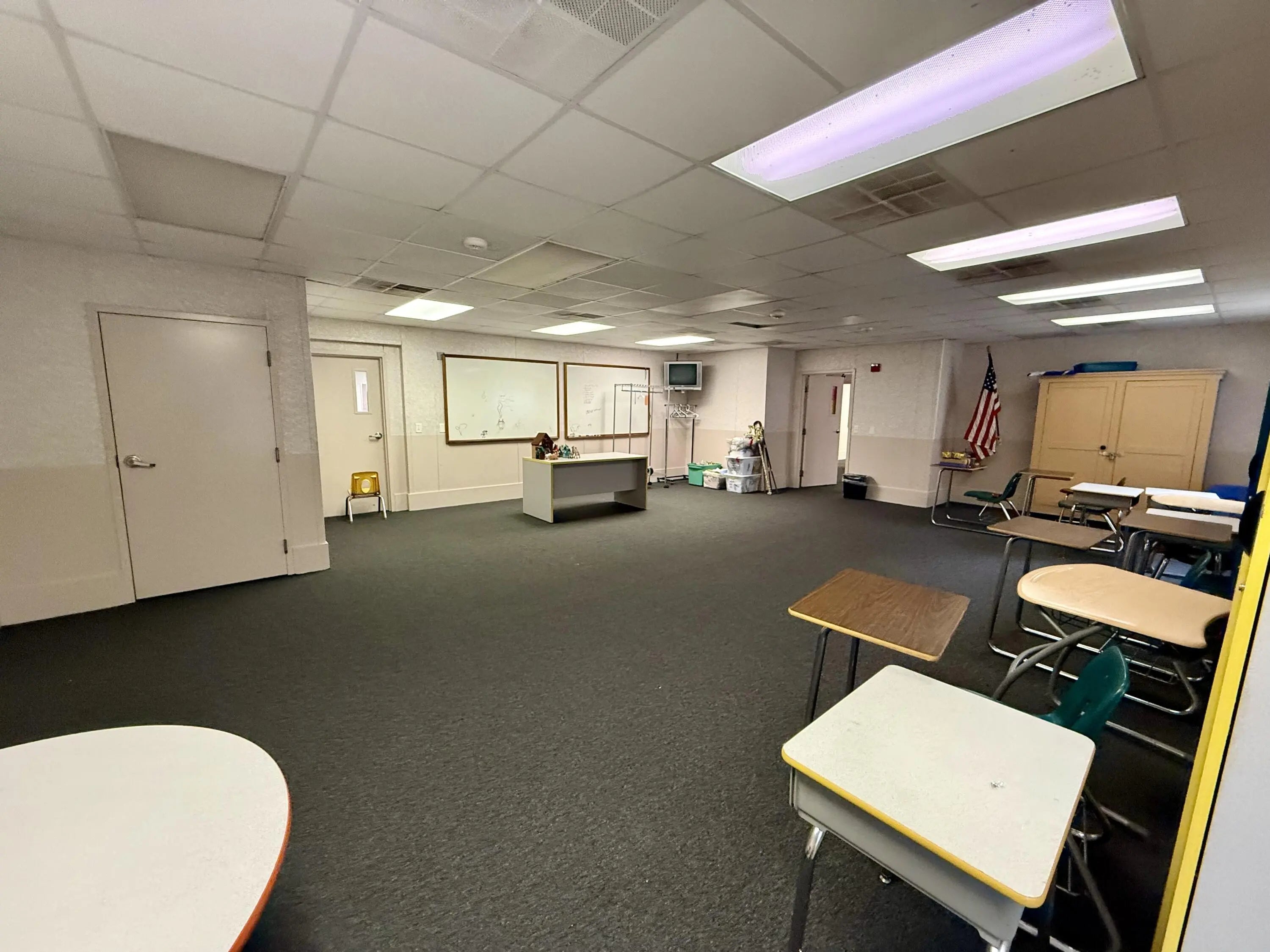 Excellent opportunity to lease this versatile facility well-suited for a preschool, daycare, private school, counseling or support/therapy groups, adult daycare, or professional office use. This 4,028± SF building is located behind St. Nicholas Greek Orthodox and offers a functional layout with four large classrooms, each with its own bathroom. Two classrooms are equipped with sinks, and the remaining two are fully plumbed for future sink installation. $5,000/moth plus utilities. The property features ample parking, access to playground & playfield area, and is equipped with an alarm system and fire alarm system. The building is not separately metered for utilities; tenant will reimburse the owner for utilities at an agreed-upon rate. See More link to see The co-tenancy agreement must allow the owner to have use of the building on Sundays for Sunday School. (No Sunday School in June, July, or August). The owner must also have access to the space during the annual Greek Festival weekend for costume changing space.