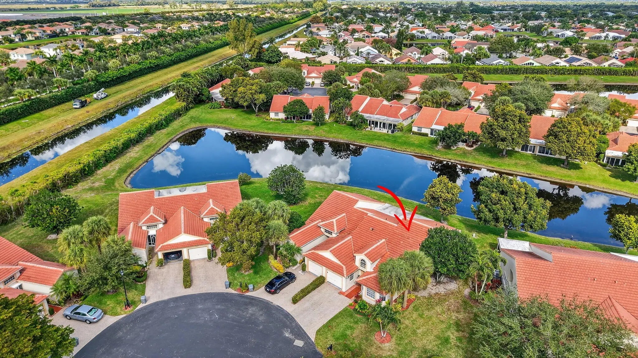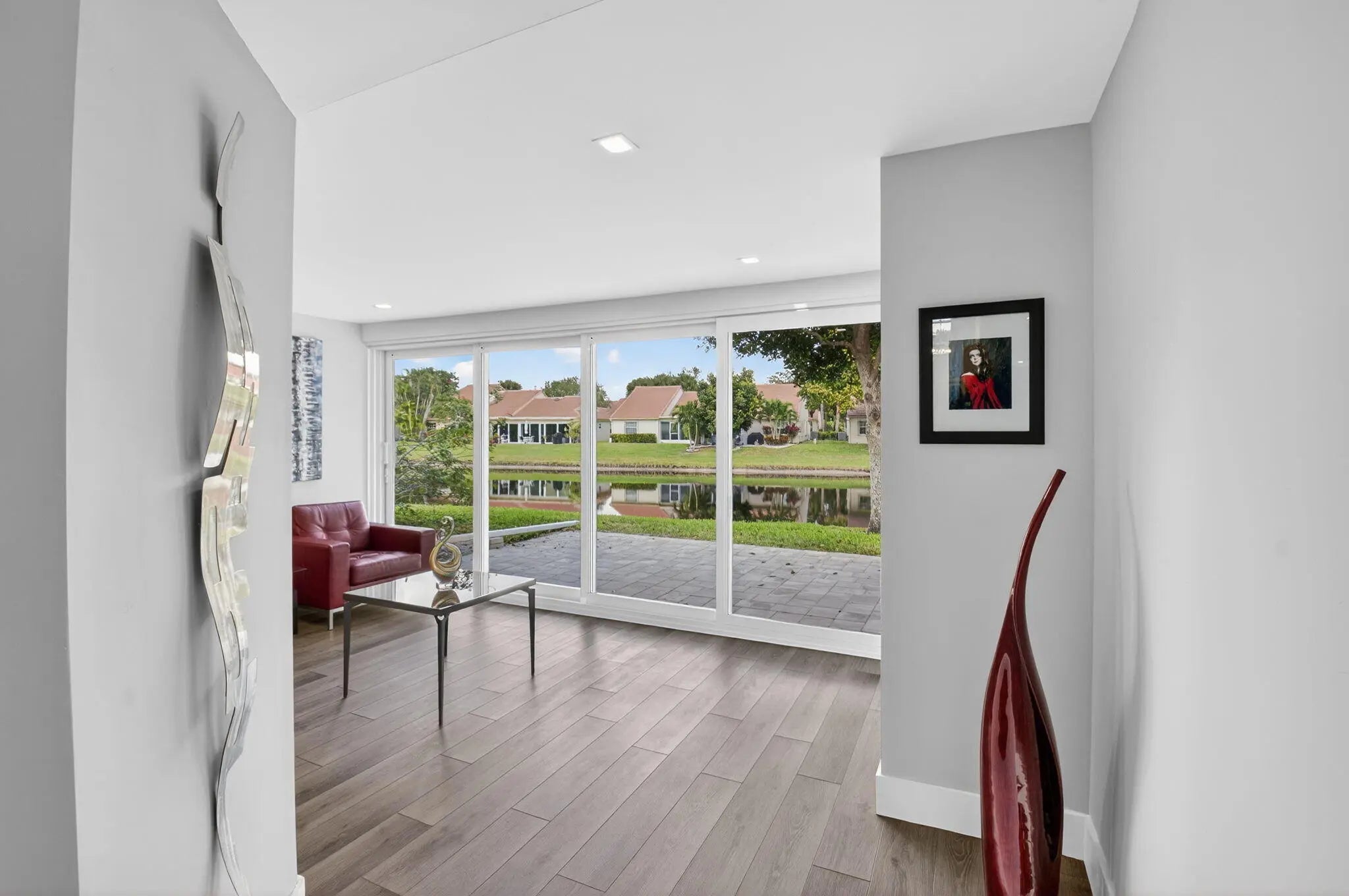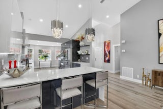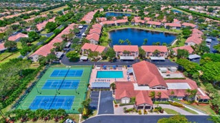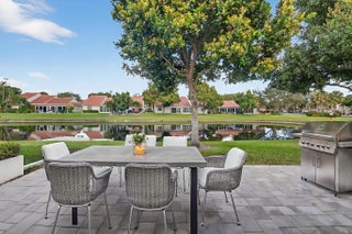Stunning newly renovated 2/2 plus den villa with soaring ceilings & fabulous lake views! You will be in awe from the moment you enter! This villa is situated beautifully on a quiet cul-de-sac in Emerald Pointe, a gated 55+ community. The Gourmet Chef's kitchen features gorgeous custom cabinetry w/ quartz counters, Bosch refrigerator w/ integrated wine cooler, Bosch dishwasher, Kitchen Aid double ovens & microwave, and an induction cook top! LED recessed lighting throughout the open floor plan, crystal chandeliers in the dining area & kitchen, luxurious primary suite overlooking the lake, primary spa-like bathroom with dual sinks, a shower with no threshold, & rain shower head. The den is enclosed with ac & retractable impact sliding doors opening to a sprawling paver patio. A must see! Emerald Pointe has a clubhouse with a pool, tennis courts, pickleball courts, a fitness center, card room, billiard room and club room for parties and shows.