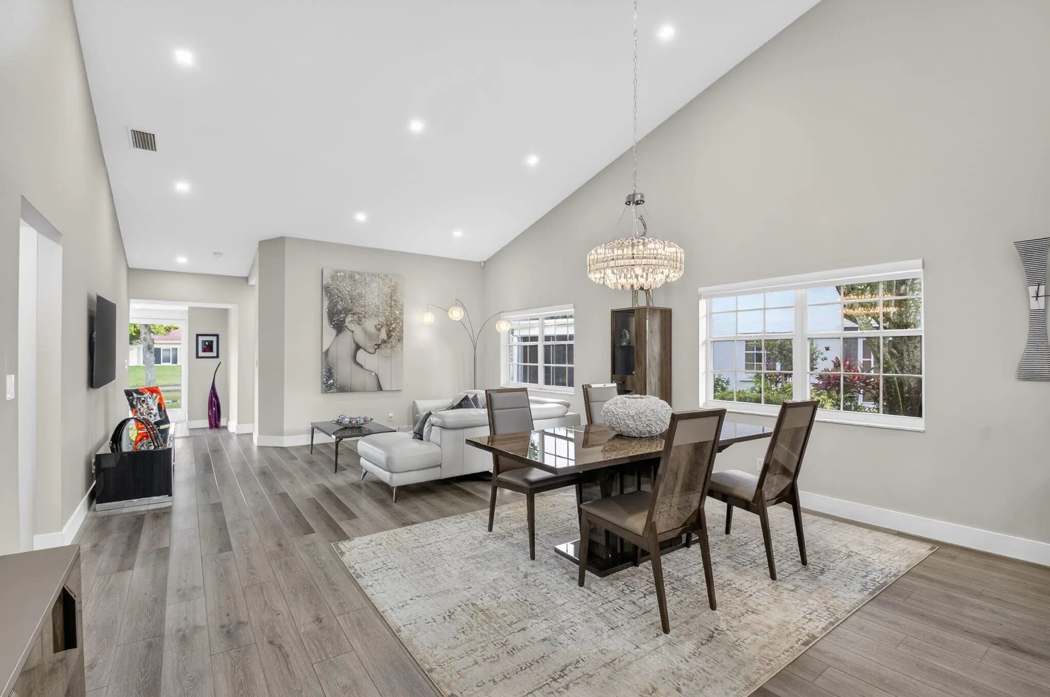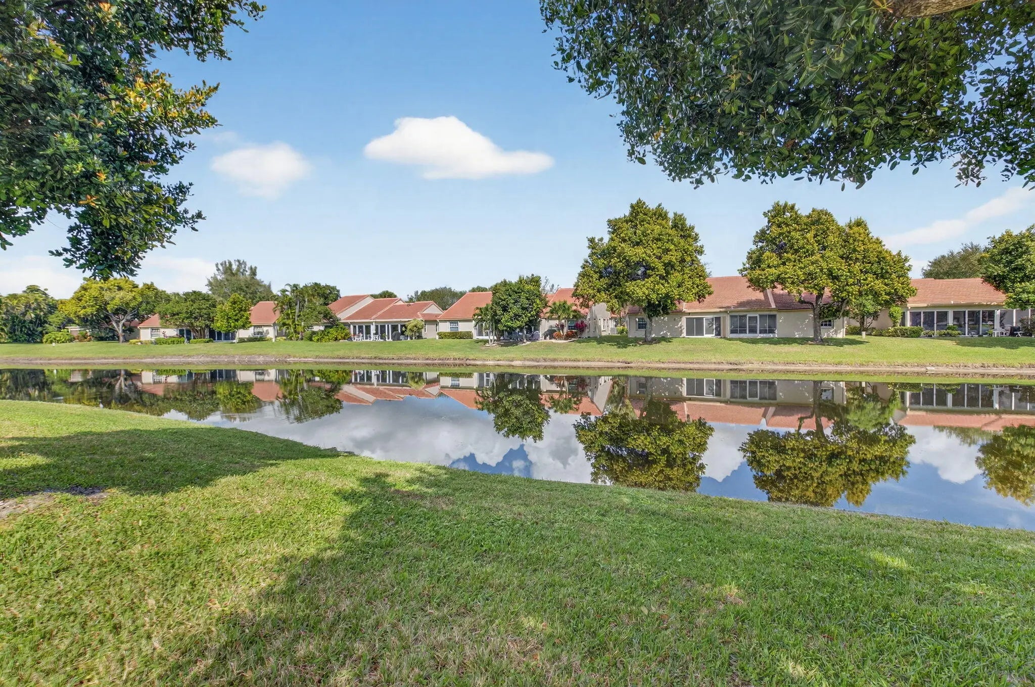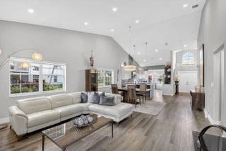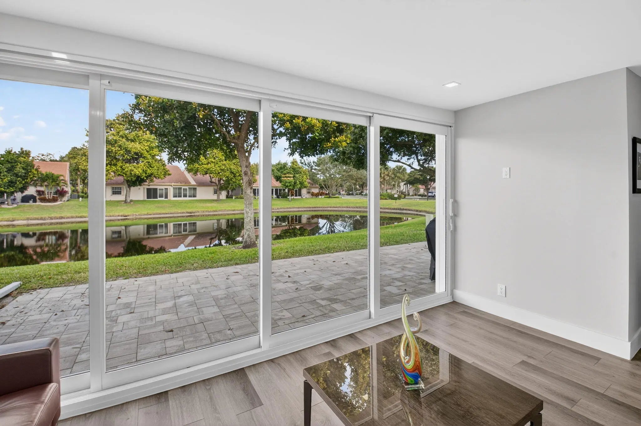 Stunning newly renovated 2/2 plus den villa with soaring ceilings & fabulous lake views! You will be in awe from the moment you enter! This villa is situated beautifully on a quiet cul-de-sac in Emerald Pointe, a gated 55+ community. The Gourmet Chef's kitchen features gorgeous custom cabinetry w/ quartz counters, Bosch refrigerator w/ integrated wine cooler, Bosch dishwasher, Kitchen Aid double ovens & microwave, and an induction cook top! LED recessed lighting throughout the open floor plan, crystal chandeliers in the dining area & kitchen, luxurious primary suite overlooking the lake, primary spa-like bathroom with dual sinks, a shower with no threshold, & rain shower head. The den is enclosed with ac & retractable impact sliding doors opening to a sprawling paver patio. A must see! Emerald Pointe has a clubhouse with a pool, tennis courts, pickleball courts, a fitness center, card room, billiard room and club room for parties and shows.