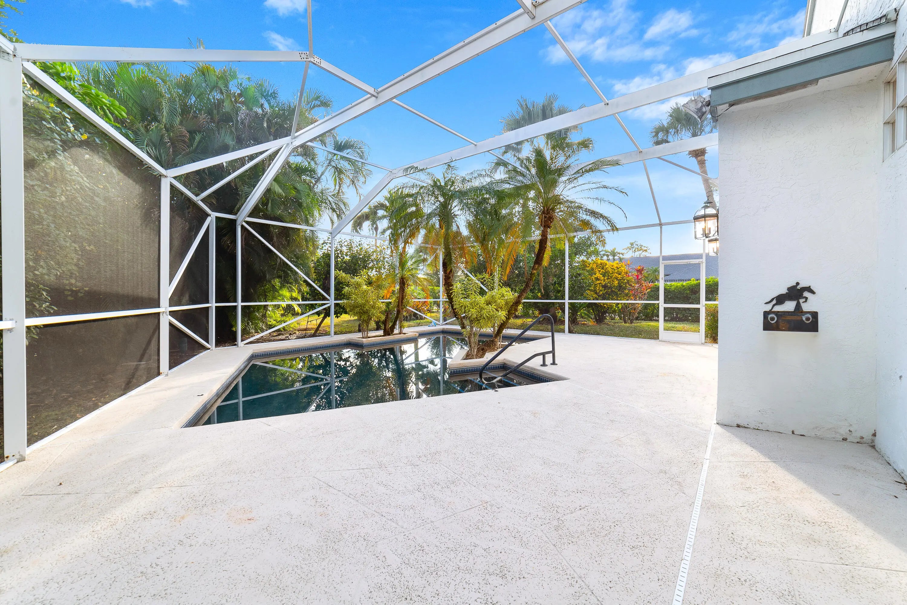 Located in Emerald Forest of Wellington, this well-cared-for residence sits on one of the largest lots in the community and offers a comfortable, spacious layout designed for everyday living and entertaining. Fully updated flooring flows throughout the home with no carpet, creating a cohesive and timeless feel. Move-in ready and thoughtfully maintained with no deferred maintenance, the home provides generous space and modern updates throughout. The front of the home welcomes you with formal living and dining areas, while the kitchen seamlessly connects to a dining or family room, creating an inviting central gathering space. The kitchen is well appointed with white cabinetry, ample counter space, and matching appliances. Three generously sized bedrooms and two full bathrooms provide room for everyone, along with the convenience of a full-size washer and dryer. The private backyard retreat offers turnkey outdoor living with lush landscaping, a sparkling pool, and an expansive paver deck. The wrap-around screened patio, partially covered for year-round enjoyment, is ideal for relaxing or entertaining. Additional highlights include a two-car garage, a newer roof installed in 2022, a new A/C system, and a low HOA. Ideally located just minutes from Wellington's renowned equestrian venues and within an area of A-rated schools, this exceptional home is truly move-in ready. Your next move begins here.