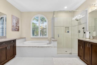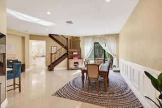 Located in Delray Beach's highly desirable, resort-style community of The Bridges—offering no mandatory club membership or equity buy-in—this upgraded Newport model offers over 4,260 sq ft of elegant living space. The home features 6 spacious bedrooms, 5 baths, and a loft, highlighted by volume ceilings, 24x24 tile flooring, and a dramatic turned staircase. The gourmet eat-in kitchen is ideal for entertaining, showcasing granite countertops, a breakfast bar, custom cabinetry, double ovens, and a 4-burner gas cooktop with stainless steel appliances. Upgrades include a wet bar, designer accents, impact windows, plantation shutters throughout, and a 3-car garage. The luxurious primary suite offers dual walk-in closets, double vanities, a soaking tub, and spa-like shower. She is a must see!!