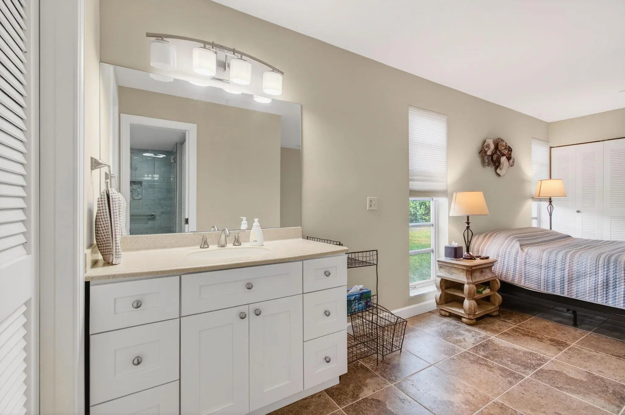 A/C 2022 Hot Water Heater 2022 13682 Via Flora A offers a 2 bedroom, 2 bath first floor corner condo in the welcoming active adult community of Palm Greens. Both bedrooms have an updated en suite bathrooms with linen closets. The primary bedroom has 3 total closets one of them being a large walk in. It also features a built in desk, & a dressing area with a vanity. The unit has a cozy eat in kitchen with a full size stackable washer & dryer. The unit has an open concept living and dining area. The fans & light fixtures have been recently updated. Palm Greens is set to open a brand new clubhouse with a state of the art exercise facility, library, craft & game rooms. The community offers a heated pool, hot tub, tennis, pickleball, shuffleboard, yoga, & aerobics. Move in ready. The heart of this home lies in its kitchen, which is an invitation to connoisseur cooking and hearty family meals. Embracing an ambiance that is simultaneously cozy and spacious, the kitchen further incorporates a vast pass-through and generous cabinet storage, alongside the convenience of a stackable washer/dryer. The owner's suite, a sanctuary of comfort, houses a distinctive walk-in closet prepared to cater to every storage need. The en suite bath is a haven in itself with its artfully integrated step-in shower, promising tranquility and relaxation.((Calling to the lovers of the outdoors, a delightful Florida room nestles within the property. Showered in natural light, it offers the perfect fusion of indoor ease and the refreshing outdoors, providing the apt setting for unwinding or entertaining. Adding to the charm is the front terrace adorned with a pergola, expanding the home's living space out under the open sky.((As a resident of Palm Greens, you have the privilege of a clubhouse teeming with amenities that enhance the quality of life. The community warmly offers a swimming pool and hot tub for playful leisure or soothing relaxation. For the fitness enthusiasts, there is an equipped exercise room, tennis courts, pickle ball courts, and even bocci and shuffleboard courts. Revel in the proximity to Delray Beach's premier shopping destinations, culinary delights, and engaging entertainment ventures. This property invites you to experience not just a home, but a lifestyle enveloped in luxury, warmth, and jubilance.