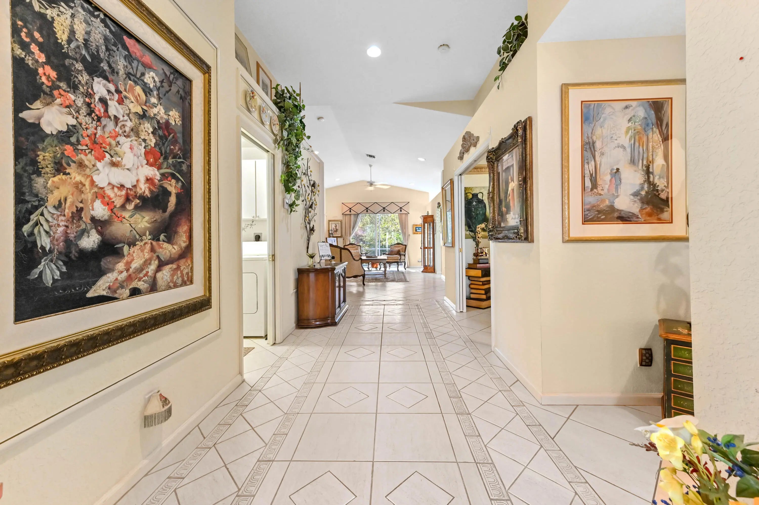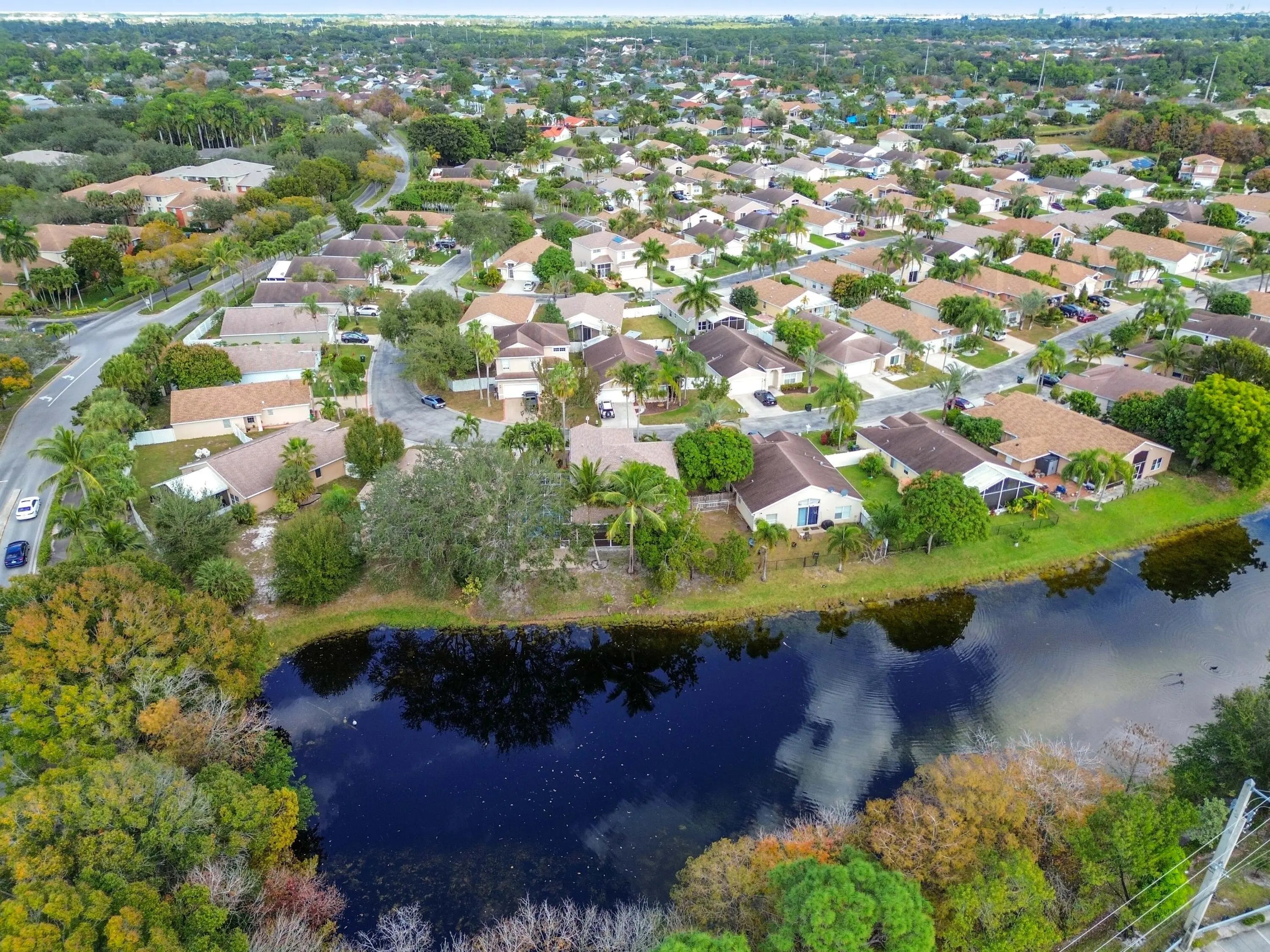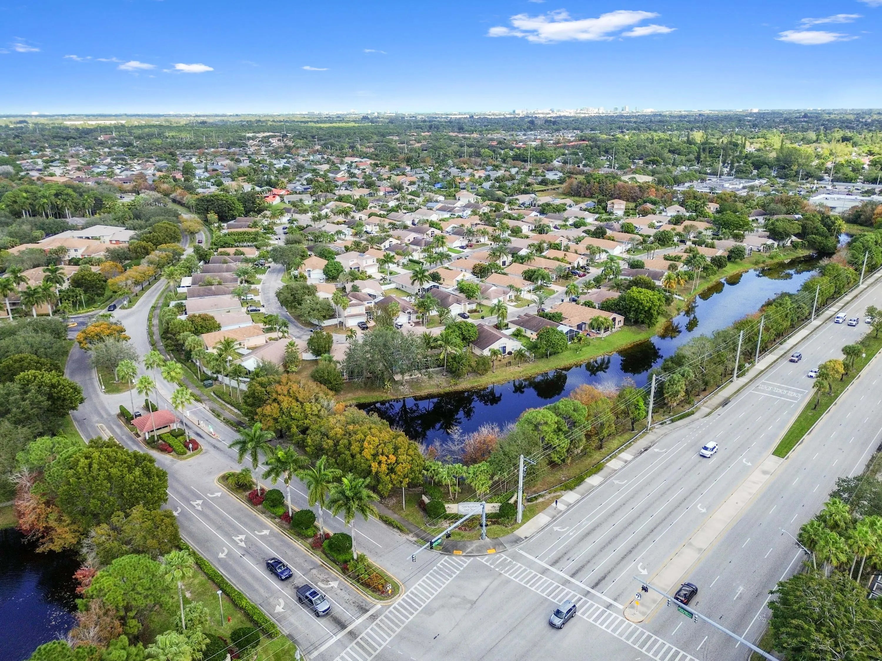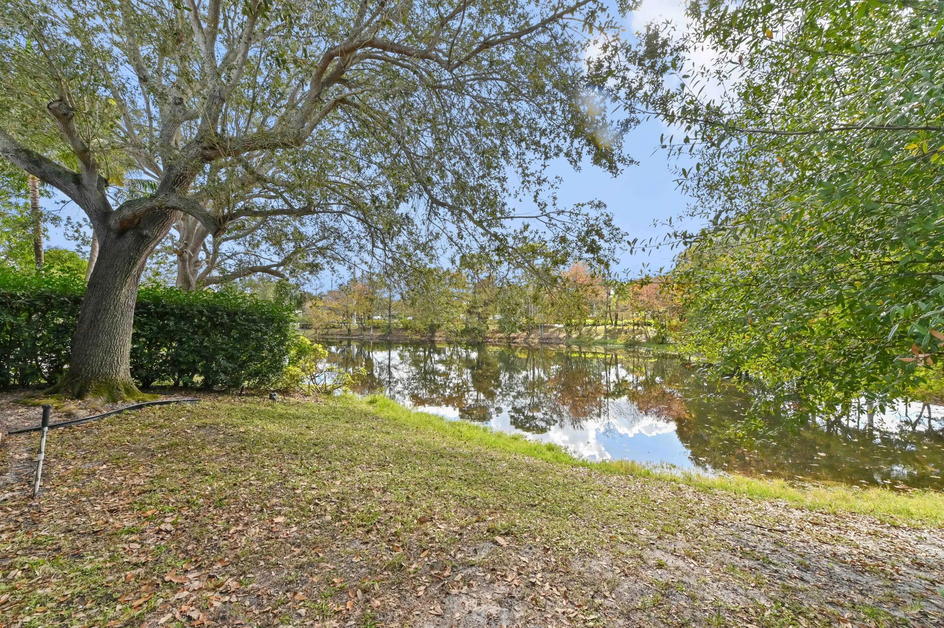 Discover a spacious and serene waterfront retreat in this beautifully maintained single-family home, ideally situated in a gated community with low HOA fees of just $65/month. Enjoy peaceful water views and a thoughtfully designed layout that blends comfort, functionality, and Florida lifestyle living. A 2019 roof and 2026 water heater provides added peace of mind, while hurricane shutters and an ADT alarm system enhance security and storm readiness. Inside, the home welcomes you with vaulted ceilings and bright, open living spaces. The dining room features a custom extension with striking mosaic tile flooring, creating a unique space ideal for entertaining. Architectural accents and tasteful artistic details throughout add warmth and character while maintaining broad buyer appeal. The spacious primary suite offers a true retreat with a large walk-in closet featuring built-in shelving, cabinetry, and dresser, along with a well-appointed ensuite bathroom showcasing dual vanities, a soaking tub, and a separate shower. Step outside to enjoy the best of indoor-outdoor living with a screened patio overlooking the water, a large fenced and gated backyard, and an outdoor concrete pad ideal for a hot tub or additional seating area. Additional highlights include a separate laundry area, 2-car garage, and ample attic storage. Conveniently located minutes from Okeeheelee Park and Golf Course, this home combines scenic surroundings, practical upgrades, and an exceptional locationoffering a rare opportunity to enjoy privacy, views, and value all in one.