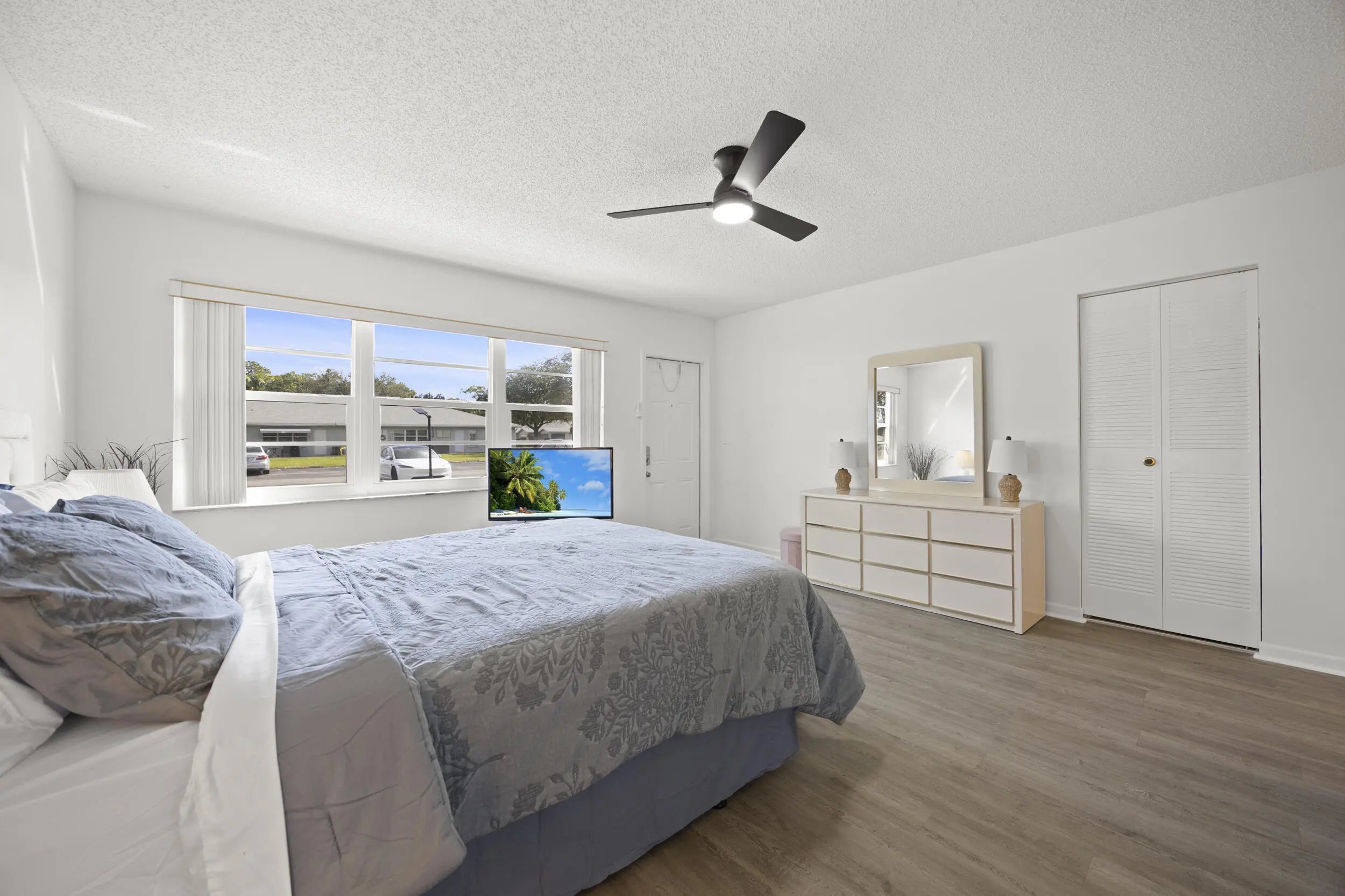 Welcome to effortless, move-in-ready living in the desirable High Point community. This beautifully updated 1 bedroom, 2 bathroom residence has been refreshed from top to bottom and truly has it all. Step inside to a bright, modern feel with new interior paint and new vinyl flooring throughout, giving the home a clean, cohesive look that is both stylish and easy to maintain. The updated kitchen is perfect for everyday cooking and entertaining, while both updated bathrooms add comfort and a polished finish. Major improvements are already done for you, including a new AC unit and a new hot water heater, offering peace of mind for years to come. Plus, hurricane impact windows provide added security, energy efficiency, and storm protection. High Point is a welcoming 55 and over community known for its friendly atmosphere and active lifestyle. Residents enjoy resort-style amenities including a clubhouse, community pool, and a variety of social activities, all set among beautifully maintained grounds. Conveniently located close to shopping, dining, and all that Delray Beach has to offer, this is Florida living at its easiest. Wake up to soft morning light as the sunrise fills the villa with warmth and brightness. Afternoon sun flows through the sunroom, living space, and kitchen, leading into beautiful daily sunsets overlooking a tranquil lake. Enjoy the gentle sound of the fountain and views of a lush garden with red fire spike plants and fragrant cranium lilies, their scent drifting in through open windows. A peaceful, light-filled home meant to be enjoyed every day.