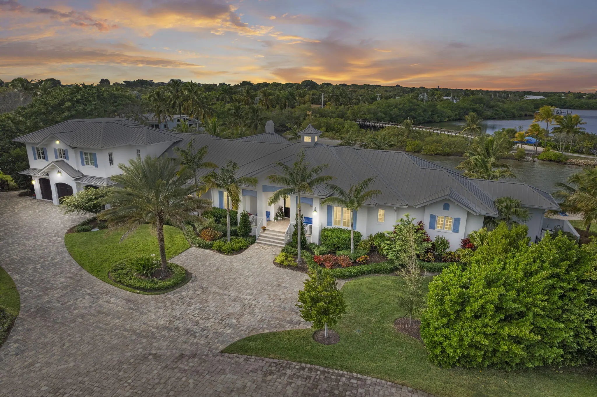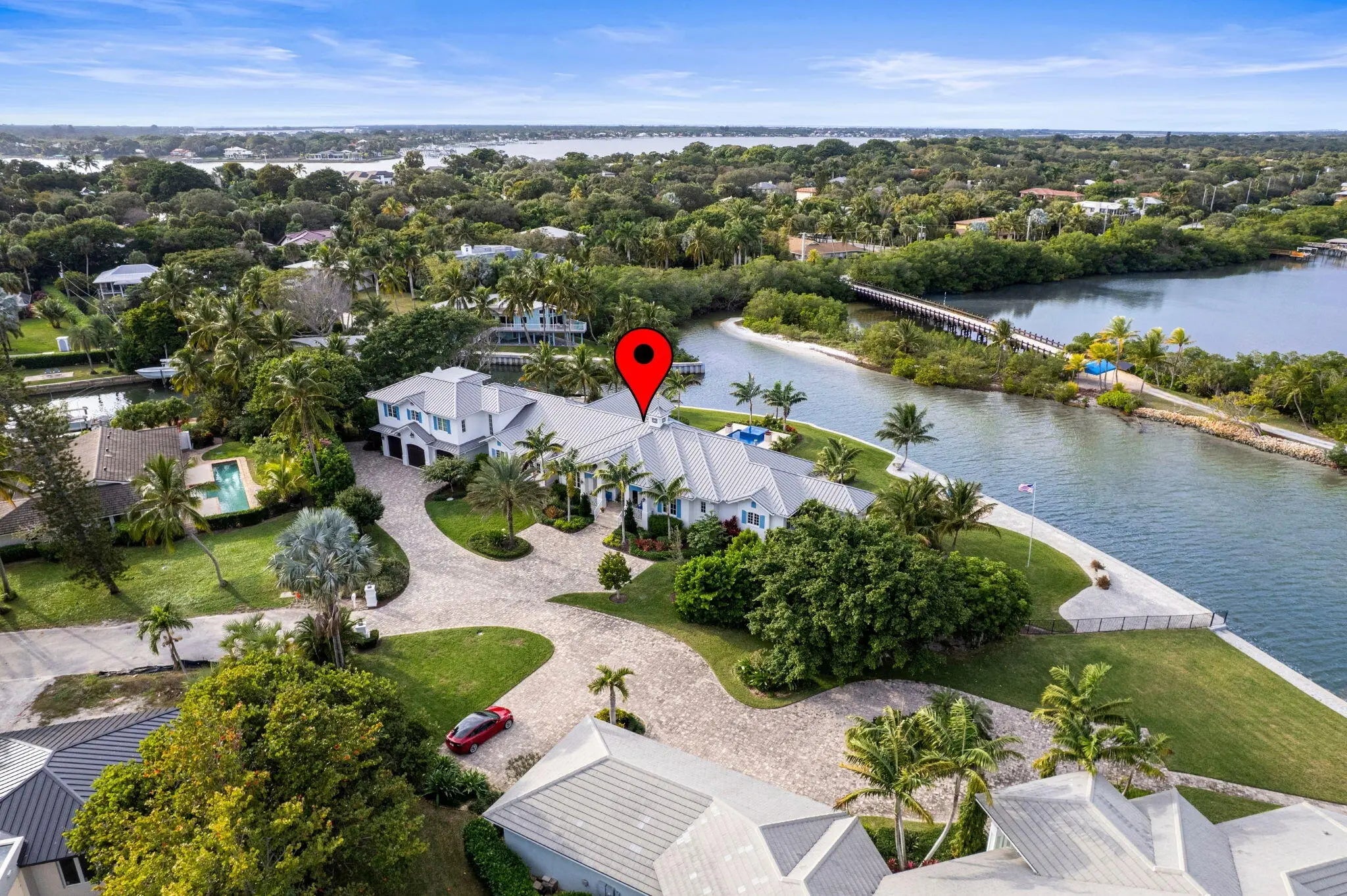 2020 Built waterfront masterpiece with brand new attached, but separate, guest quarters. Almost 7,000 sq ft of air-conditioned luxury situated at the end of a cul-de-sac on a point lot offering 340 ft of waterfront. Spectacular lagoon views and protected dockage. New sea wall installed when home was built. 2 existing lifts will accommodate boats under 40' feet in length. Oversized 3 car garage. Incredible outdoor pool area & hot tub overlooking the blue/green Indian River Lagoon. No bridges blocking your access to the river or Atlantic Ocean.