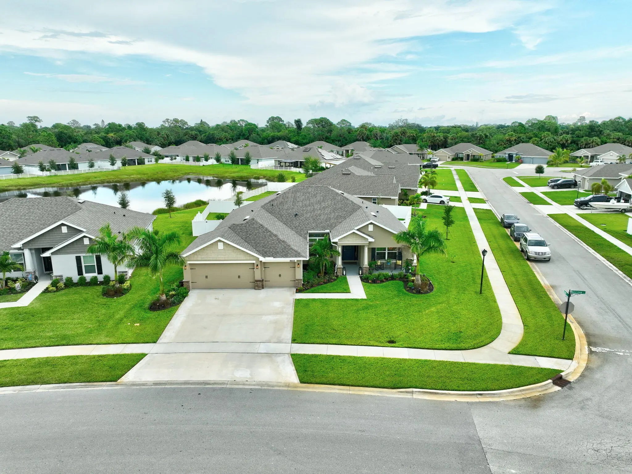 4/3/3 Better than NEW 2023 built.Premium .27 acre 11,761sf Corner Lakefront Lot with tons of upgrades including: Premium vinyl & metal fence. Seamless gutters. Meticulously maintained. 4 spacious bedrooms & 3 bathrooms including a cabana bath, den, covered patio & a massive 3 car garage. Crown Molding, lighting, backsplash, 3'' Blinds. Waterstone has lots of amenities Community pool, fitness room, playground, sidewalks, volleyball, tennis and pickleball courts. Only 20 min to the beach. Pets ok with $500 per pet non refundable deposit. Priced at aprox $800 a month less than what your mortgage would be with FHA loan at current market price. Home is for sale. Tenants must agree to allow showings with 24hr notice and will be given min 30 day notice if sold.