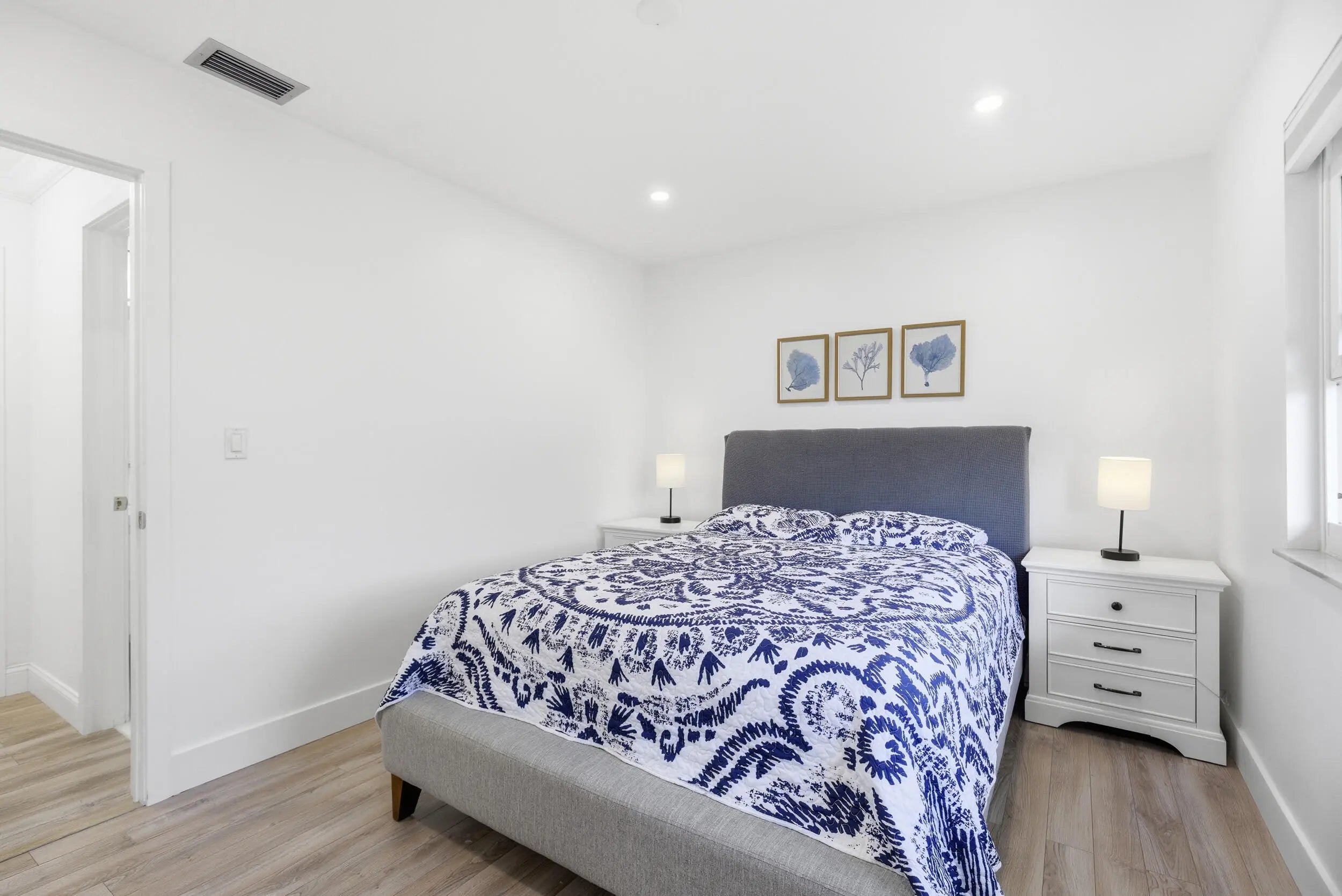Coastal Elegance Meets Modern Luxury Experience the pinnacle of seaside living in this rarely available 3 bedroom masterpiece. Completely renovated & meticulously maintained. Open engaging floor-plan is designed for modern living, featuring a split-bedroom layout for ultimate privacy & a stunning courtyard entrance that sets a sophisticated tone from the moment you arrive. No detail overlooked: enjoy a chef-inspired kitchen with crown molding, new doors & hardware & designer-renovated bathrooms. Newer roof and impact windows. Private porch is an outdoor sanctuary, blending the interior living space with the lush surroundings. Located in a premier community, with access to pickleball, racquetball, tennis and a sparkling pool Best of all, you are just a short stroll away from the turquoise waters of the Atlantic Ocean and the scenic trails of Carlin Park.