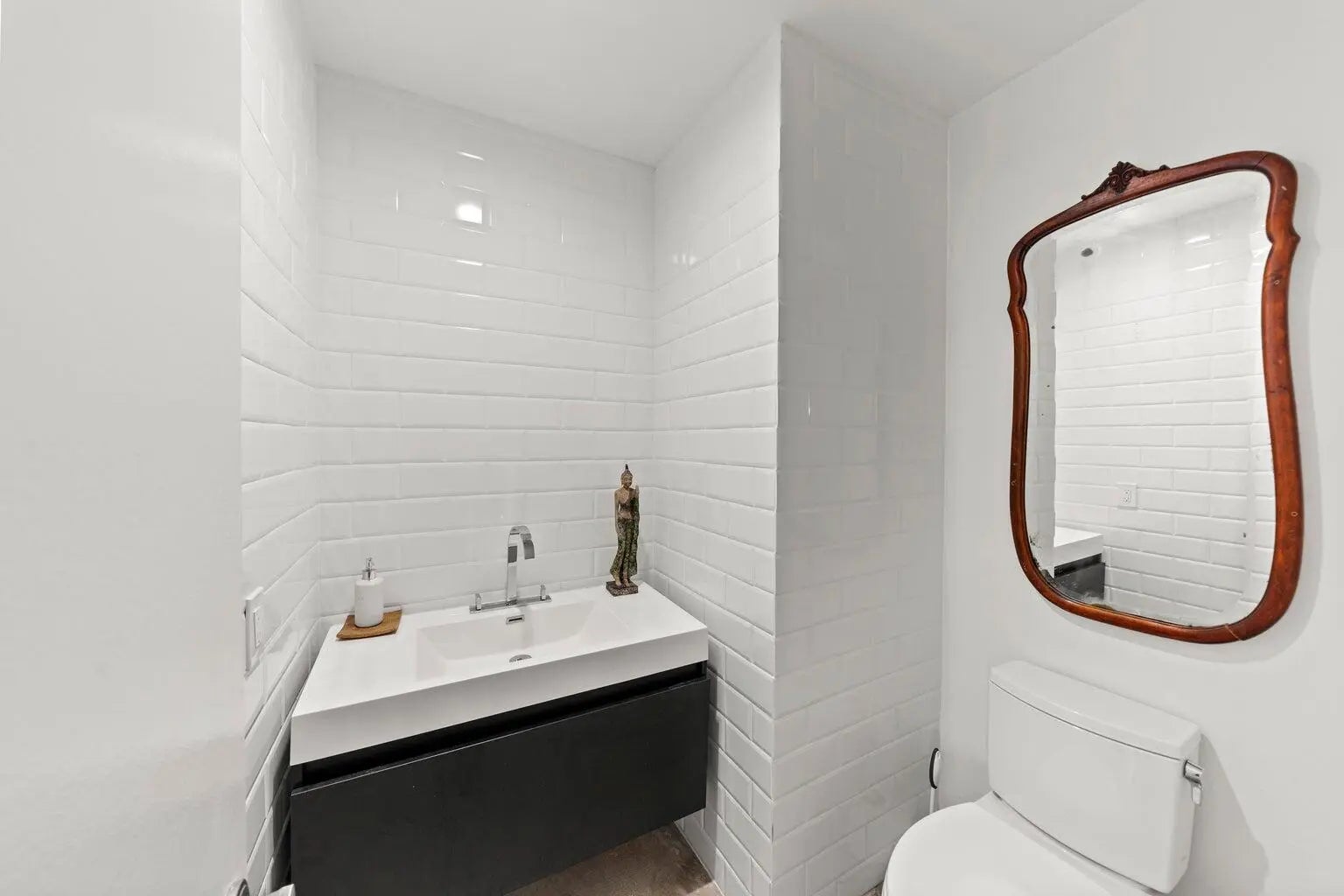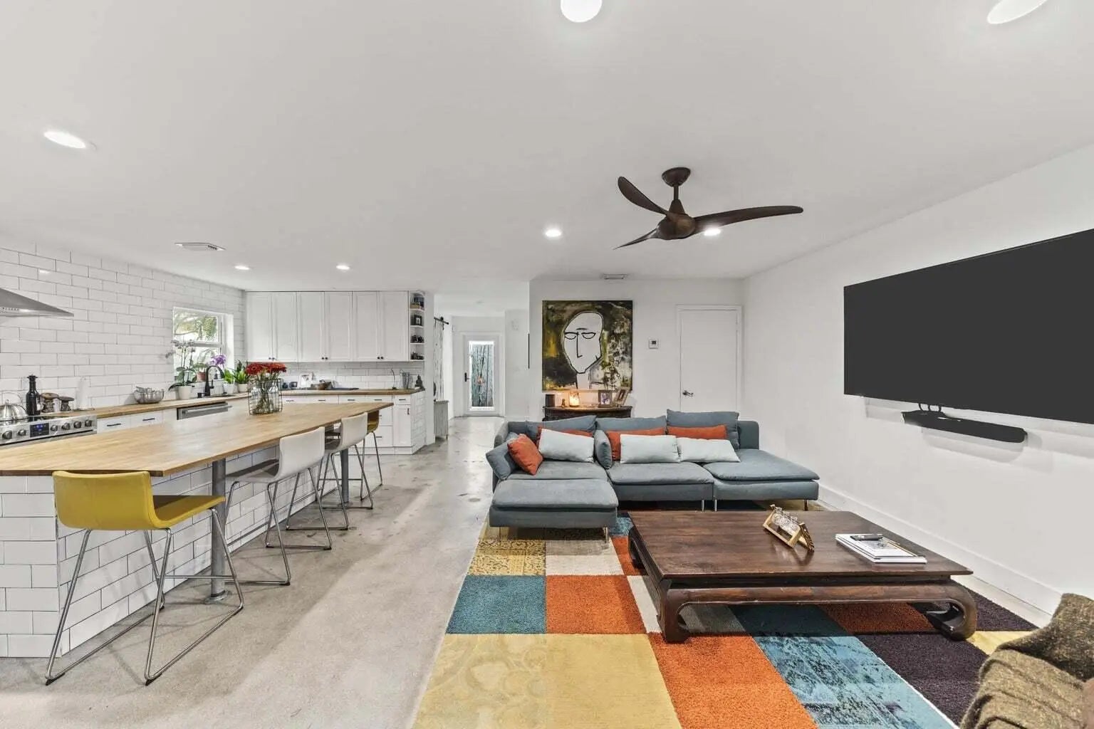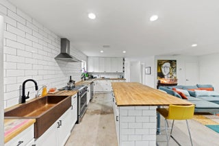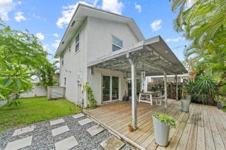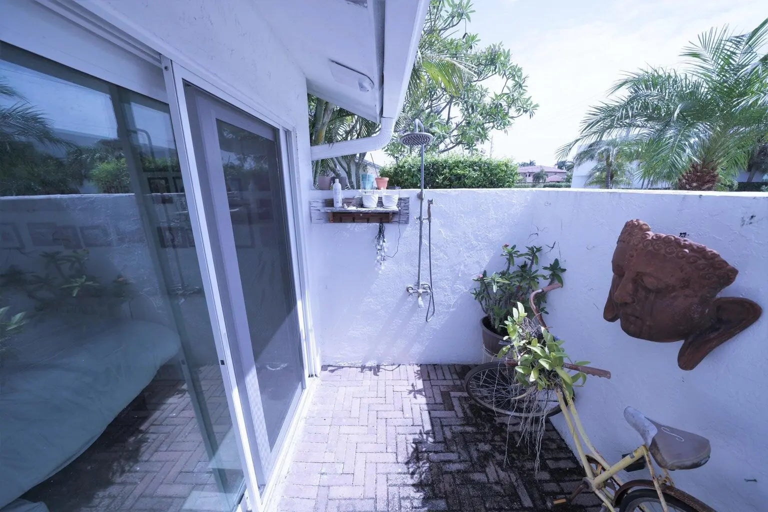 This sleek, updated residence blends modern function with warm, character-rich design and is ideally located just minutes from Delray's beautiful beaches and the vibrant downtown Atlantic Avenue corridor celebrated for its boutique shopping, fine dining, and lively entertainment. Set within a quiet, multimillion-dollar neighborhood that feels as peaceful as the Maine woods, the home offers an inviting balance of coastal convenience and serene privacy. Inside, an open-concept kitchen and living area create a welcoming hub for everyday living and entertaining. The kitchen is thoughtfully outfitted with butcher block countertops, two copper sinks, a commercial-grade refrigerator and stove, and tiled finishes that pair beautifully with exposed concrete floors. High-hat recessed lighting on dimmers enhances both function and ambiance. Bedrooms are designed as calming retreats, featuring cathedral weathered wood ceilings supported by double-braced, reinforced hurricane proof trusses. The first-floor bedroom includes blackout window treatments for added privacy and restful sleep. Spa-inspired bathrooms showcase Toto toilets, floating decorator sinks, tiled surfaces, and large glass enclosed shower stalls with oversized rain heads, complemented by a full private hot-water outdoor shower at the front of the home. Distressed wood accents seen in the front gate, shower gate, garden shelves, stairs, interior barn door, and closet mirror frame blend seamlessly with bamboo stair handrails to create a cohesive, custom aesthetic throughout. Large walk-in closets with built-in shelving provide generous storage, while four MinkaAire lifetime-warranty ceiling fans with remote controls ensure year-round comfort. Outdoor living is equally inviting, with a covered patio/deck overlooking a private backyard bordered by a dense bamboo privacy wall. Landscaped front and side yards and a locking yard security fence complete the exterior setting. Additional highlights include impact-rated windows and doors throughout, a garage storage with ample storage, and a thoughtfully maintained, move-in-ready interior designed for durability, comfort, and ease of living. The home is available furnished or unfurnished, offering flexibility for residents seeking a seamless move-in experience or a blank canvas to make the space their own.