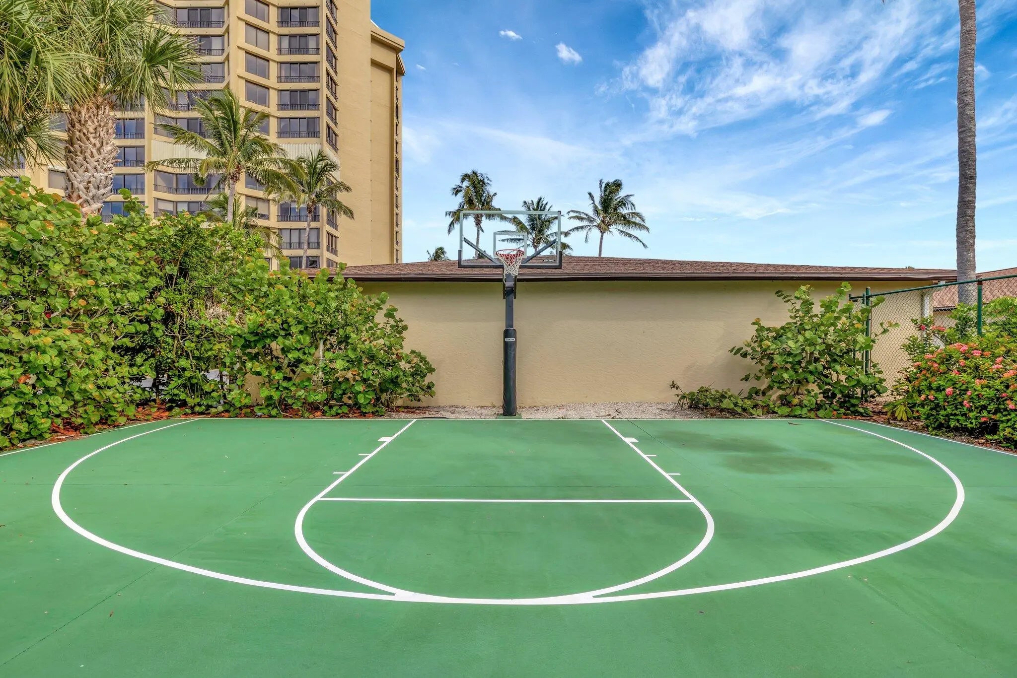 Basketball Court, Clubhouse, Fitness Center, Golf Course, Game Room, Picnic Area, Pool, Sauna, Shuffleboard Court, Spa/Hot Tub, Tennis Court(s), Cafe/Restaurant, Internet Included, Pickleball Court(s), Street Lights