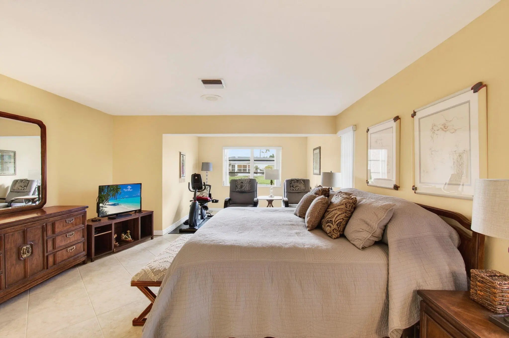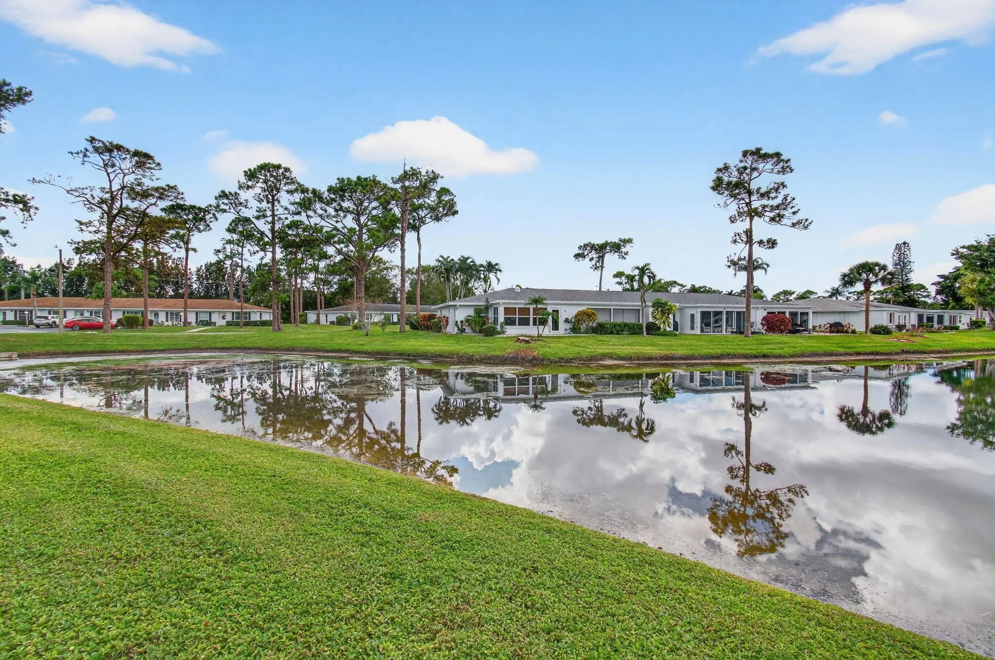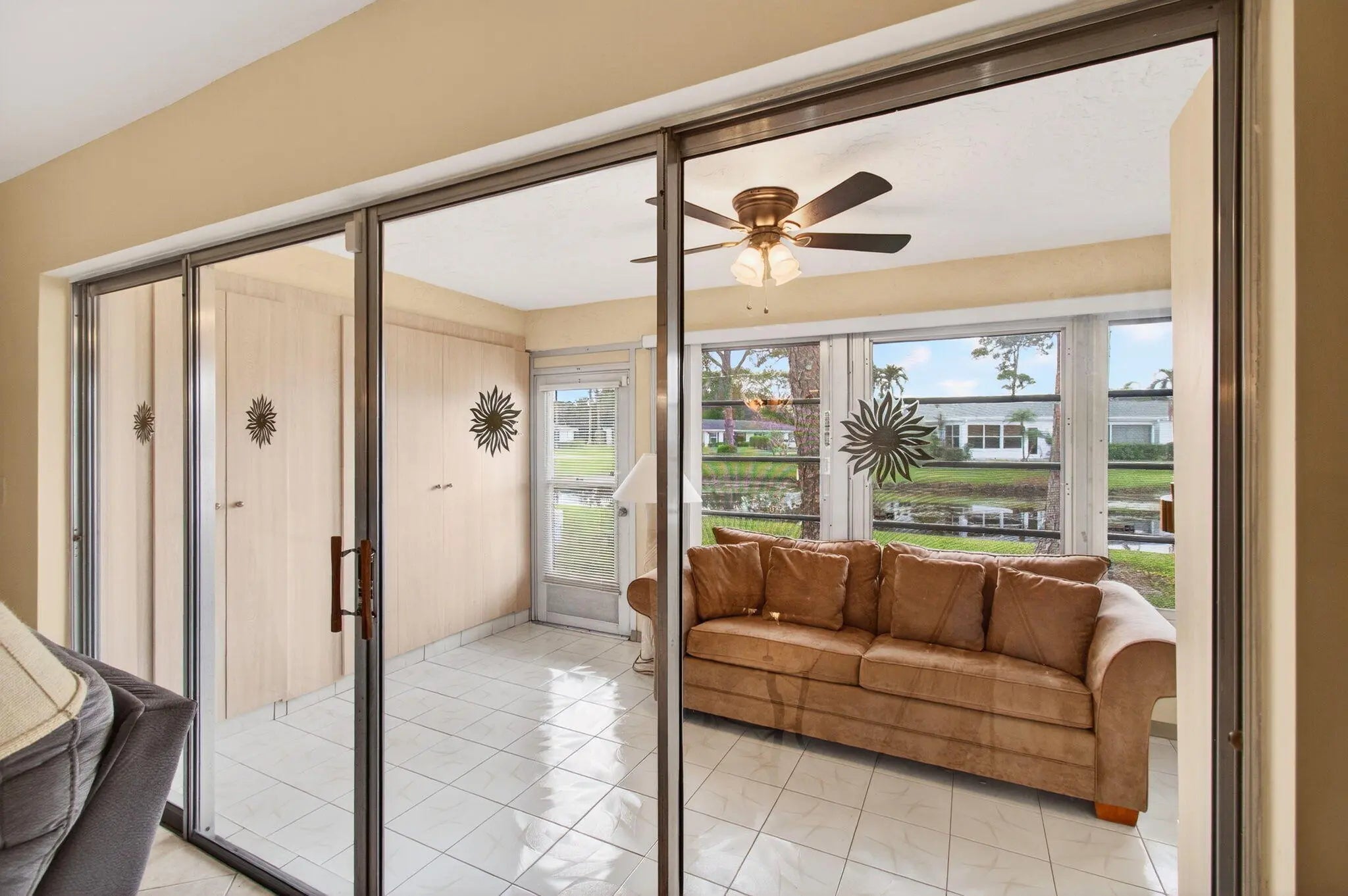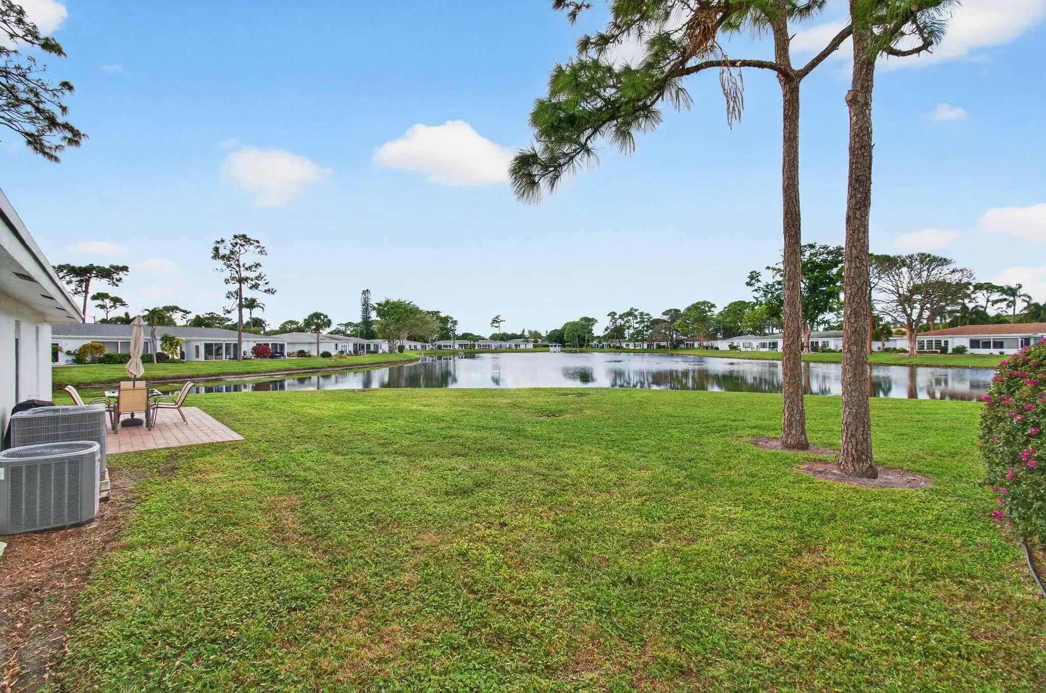 This villa boasts the best water-view lot in Bridgeview. Impeccably maintained w/ new hot water heater 2025, new A/C 2025, Owner's suite with sitting area and direct patio access, two walk-in closets and en suite bathroom. The kitchen has been completely remodeled(under mount lighting). Both bathrooms have been completely remodeled. Wraparound paver patio for lakeside living while viewing the dramatic wildlife in this bird-lovers paradise. Furnishings and all other contents of the unit are available for purchase. Seller prefers to sell the unit with all contents included. Bridgeview amenities including assigned parking, clubhouse, pool with spa, tennis courts, pickleball.
