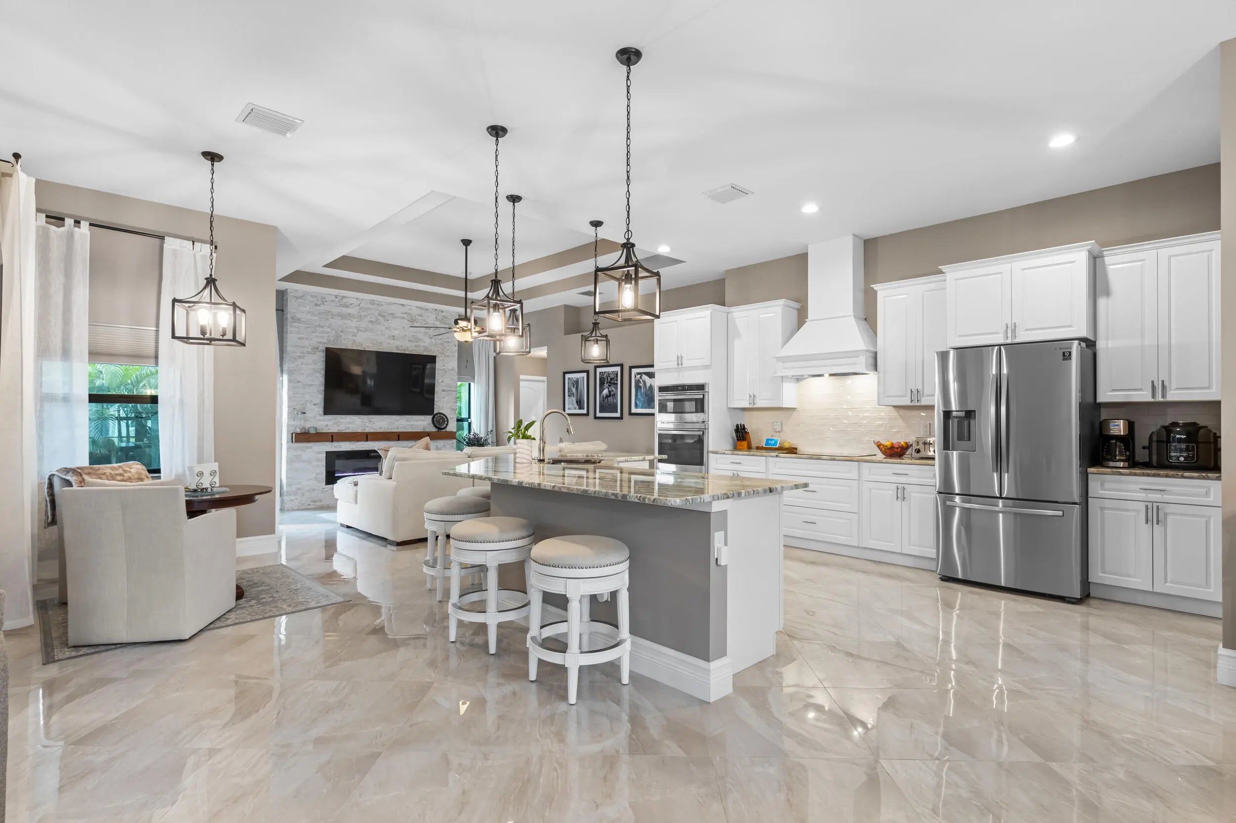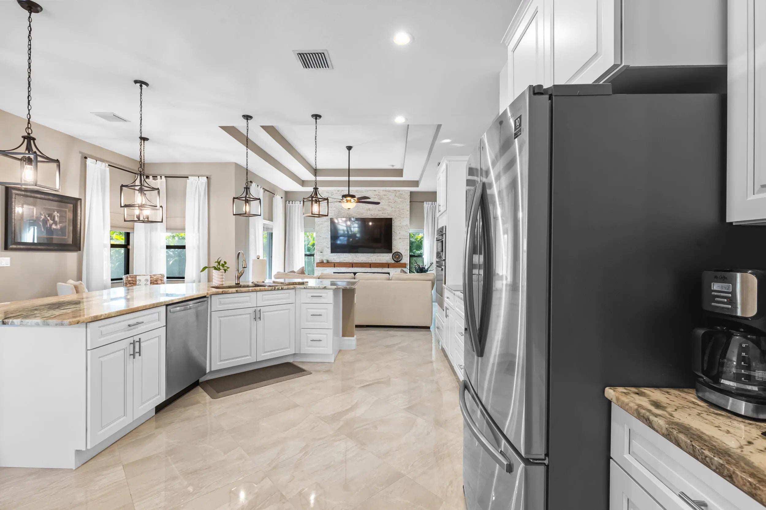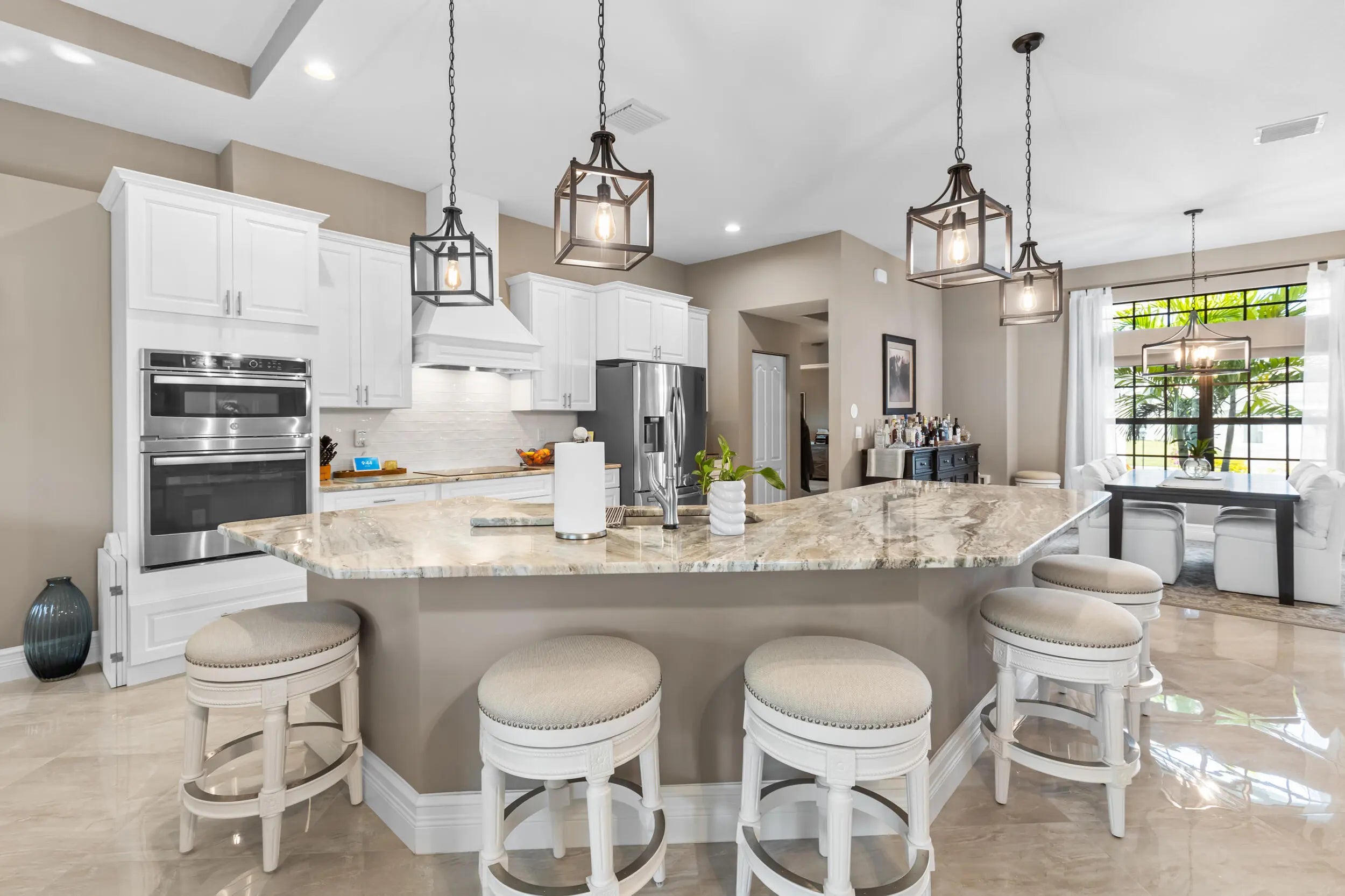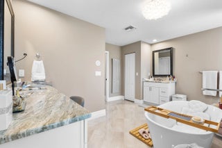 Breathtaking home with NO HOA! This stunning residence features 4 spacious bedrooms and 3 full bathrooms. It boasts numerous upgrades, including a ring security system, granite countertops, a gourmet kitchen with stainless steel appliances, porcelain tile throughout, a 5V metal roof with a secondary water barrier, FULL impact windows and doors, a side load garage with 5/8 plywood on the roof, a Master Ensuite with a double shower, free-standing tub, his and hers professionally built-in closets, his and her vanities, tray ceilings in the Family room and Master Bedroom, French Doors leading to oversized Lanai. French doors are also present in the living and family rooms, slow-close cabinets throughout, a side load washer and dryer with a pedestal, professionally landscaped with... ample space for a pool. A section of the home can easily be converted into an in-law suite or rental space with its own private entrance. This home is a must see!! Schedule your showing today through ShowingTime.