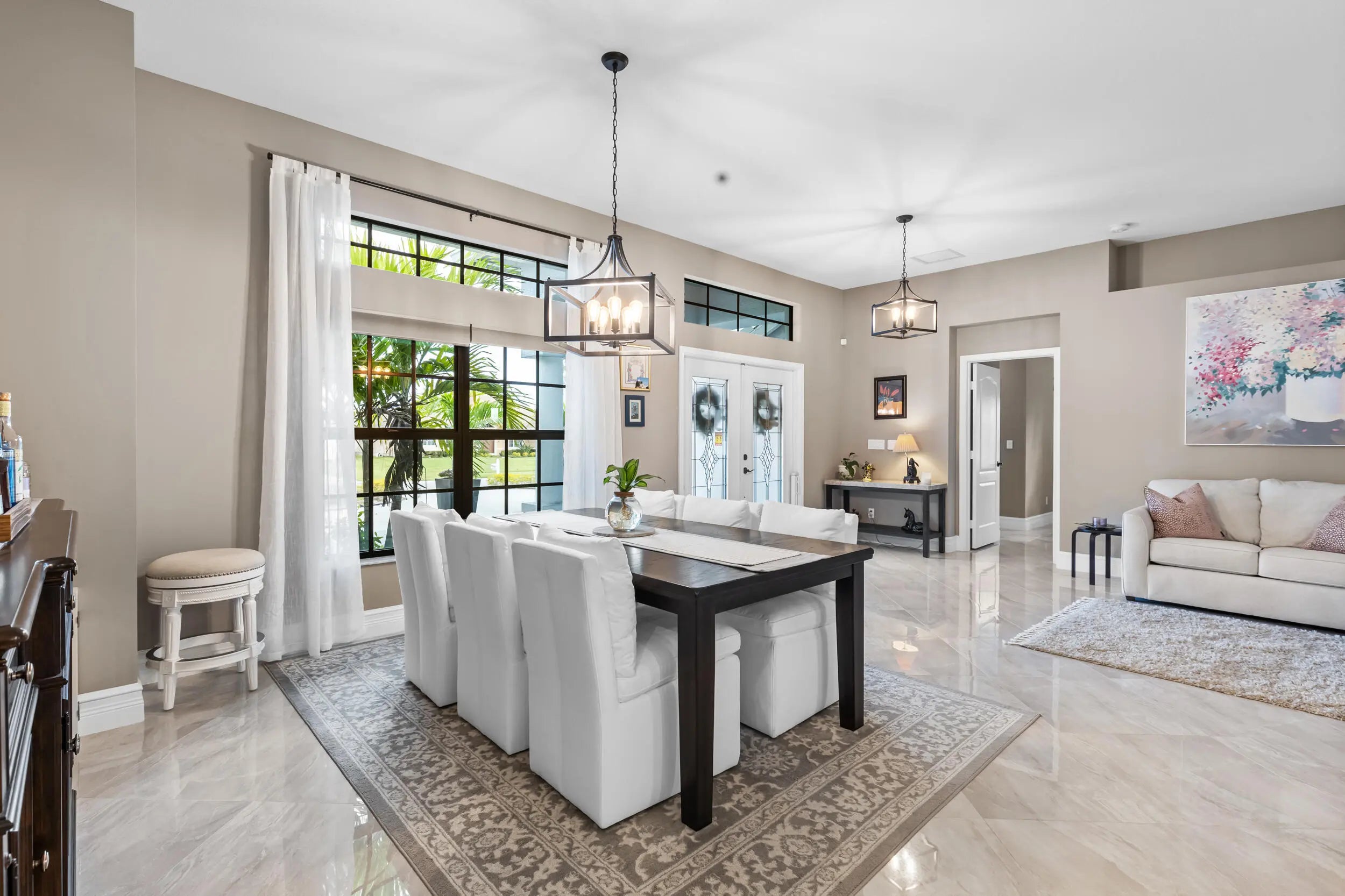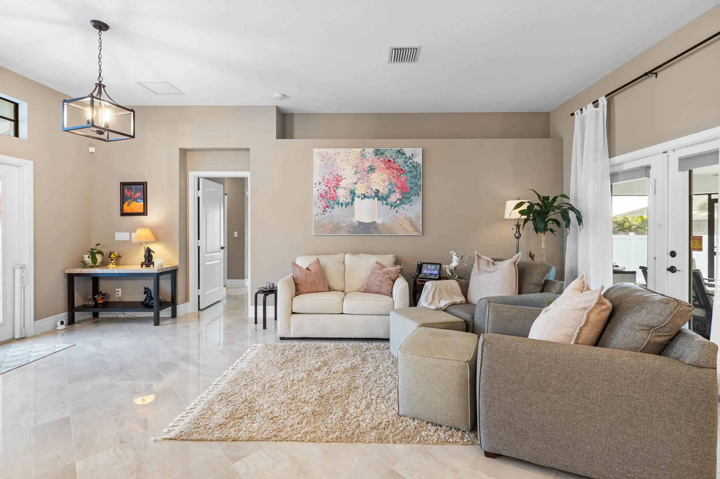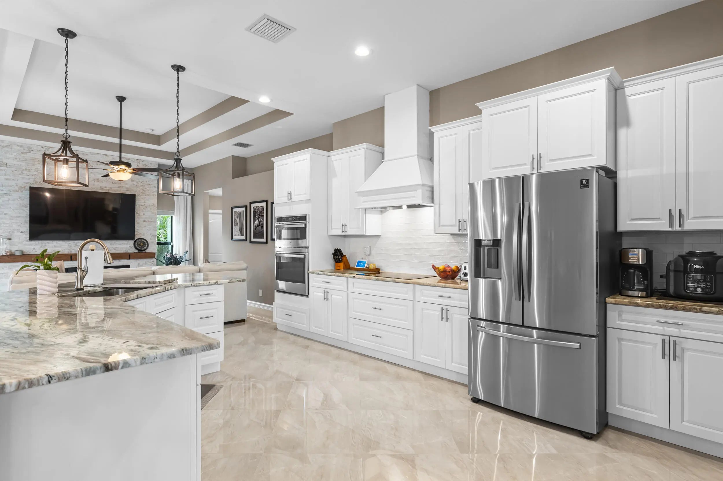 Breathtaking home with NO HOA! This stunning residence features 4 spacious bedrooms and 3 full bathrooms. It boasts numerous upgrades, including a ring security system, granite countertops, a gourmet kitchen with stainless steel appliances, porcelain tile throughout, a 5V metal roof with a secondary water barrier, FULL impact windows and doors, a side load garage with 5/8 plywood on the roof, a Master Ensuite with a double shower, free-standing tub, his and hers professionally built-in closets, his and her vanities, tray ceilings in the Family room and Master Bedroom, French Doors leading to oversized Lanai. French doors are also present in the living and family rooms, slow-close cabinets throughout, a side load washer and dryer with a pedestal, professionally landscaped with... ample space for a pool. A section of the home can easily be converted into an in-law suite or rental space with its own private entrance. This home is a must see!! Schedule your showing today through ShowingTime.