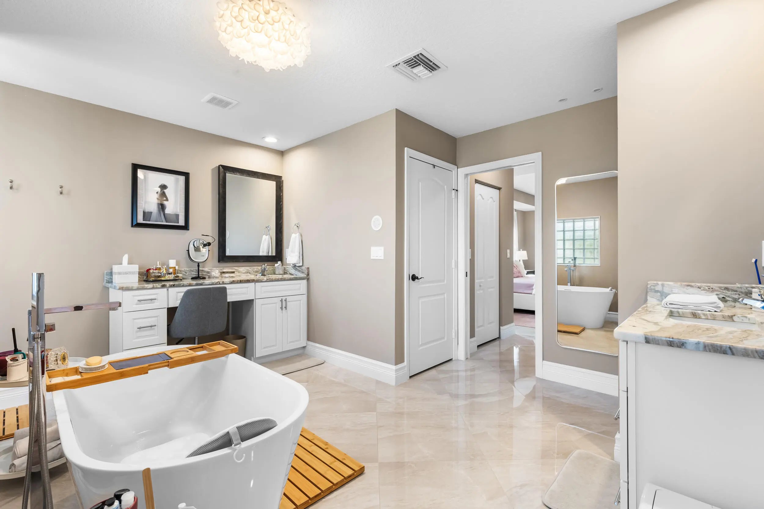 Cathedral Ceiling(s), Entrance Foyer, High Ceilings, Pantry, Vaulted Ceiling(s), Walk-In Closet(s), Bedroom Layout - Split, Closet Cabinetry, Cabana Bath