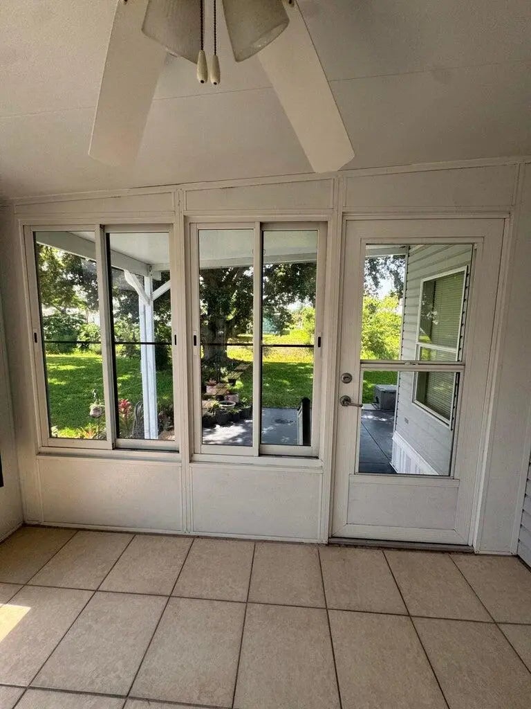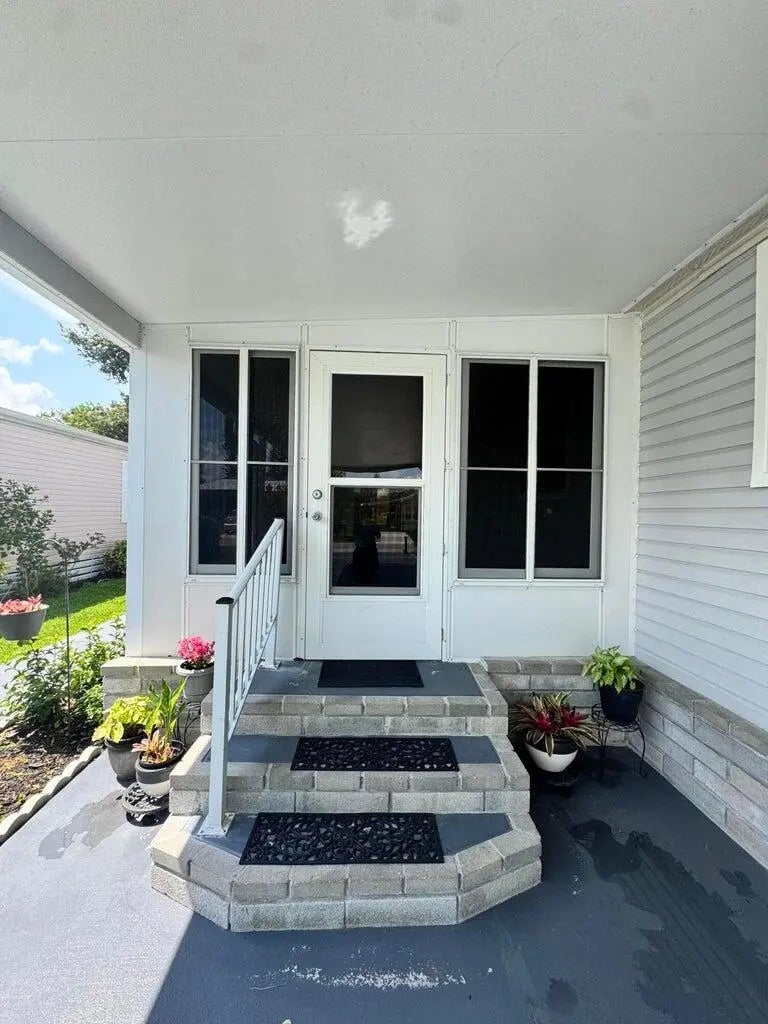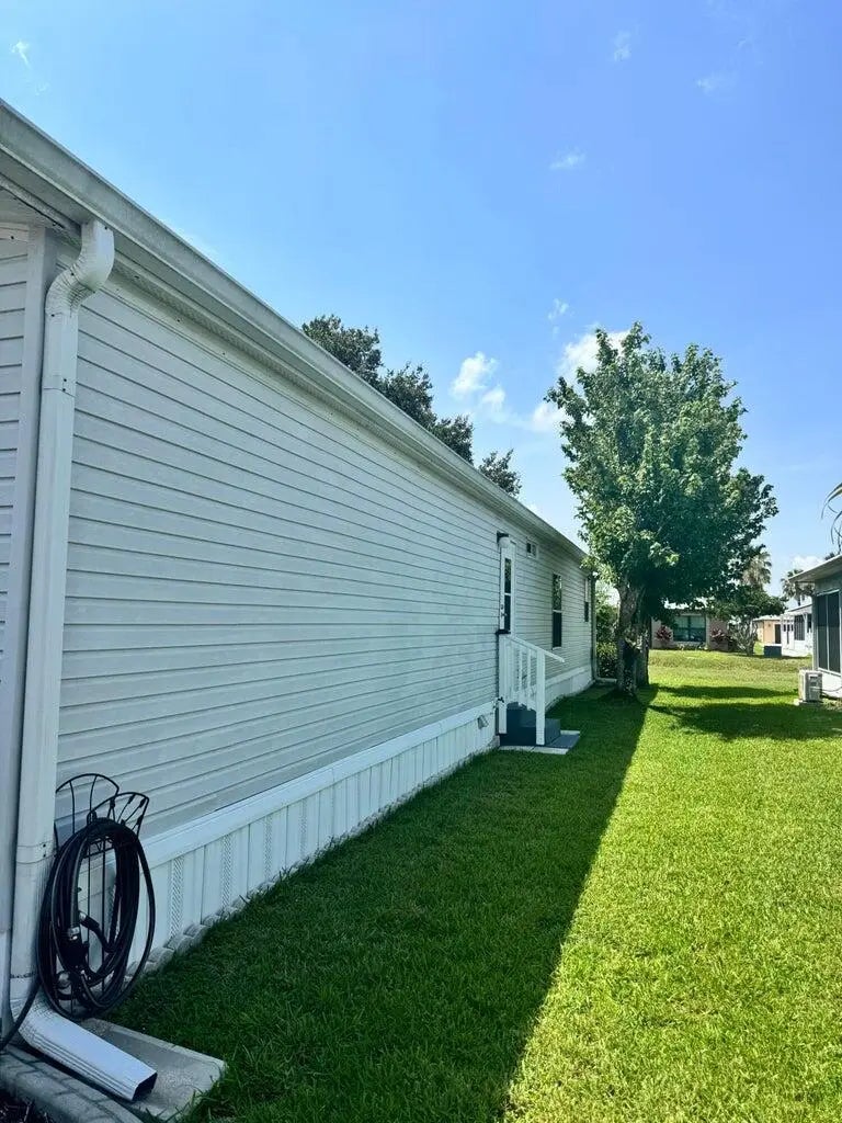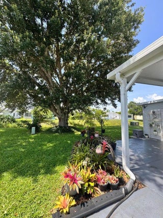 Lovely and Immaculate 2-bedroom 2-bath home in the desirable Spanish Lakes 55+community. Home has beautiful landscaping! The home has a large living room and a family room. Open kitchen with island. Home is perfect for those looking to entertain or just wanting extra space. Wet bar off kitchen. Beautiful lanai with windows that can open to a screened-in area or stay closed. Perfect for morning coffee or evening cocktails. The home has a shed off the back for extra storage. Home has a very private and peaceful backyard. Roof is 2014, A/C 2014, Water Heater 2022. Plumbing and vapor barrier have been replaced. Washer and Dryer 2023. Lawn care and trash removal included in lot rent. 2 pools, tennis, pickleball, bocceball, shuffle board. club house 18 hole golf course and much more. MUST SEE!