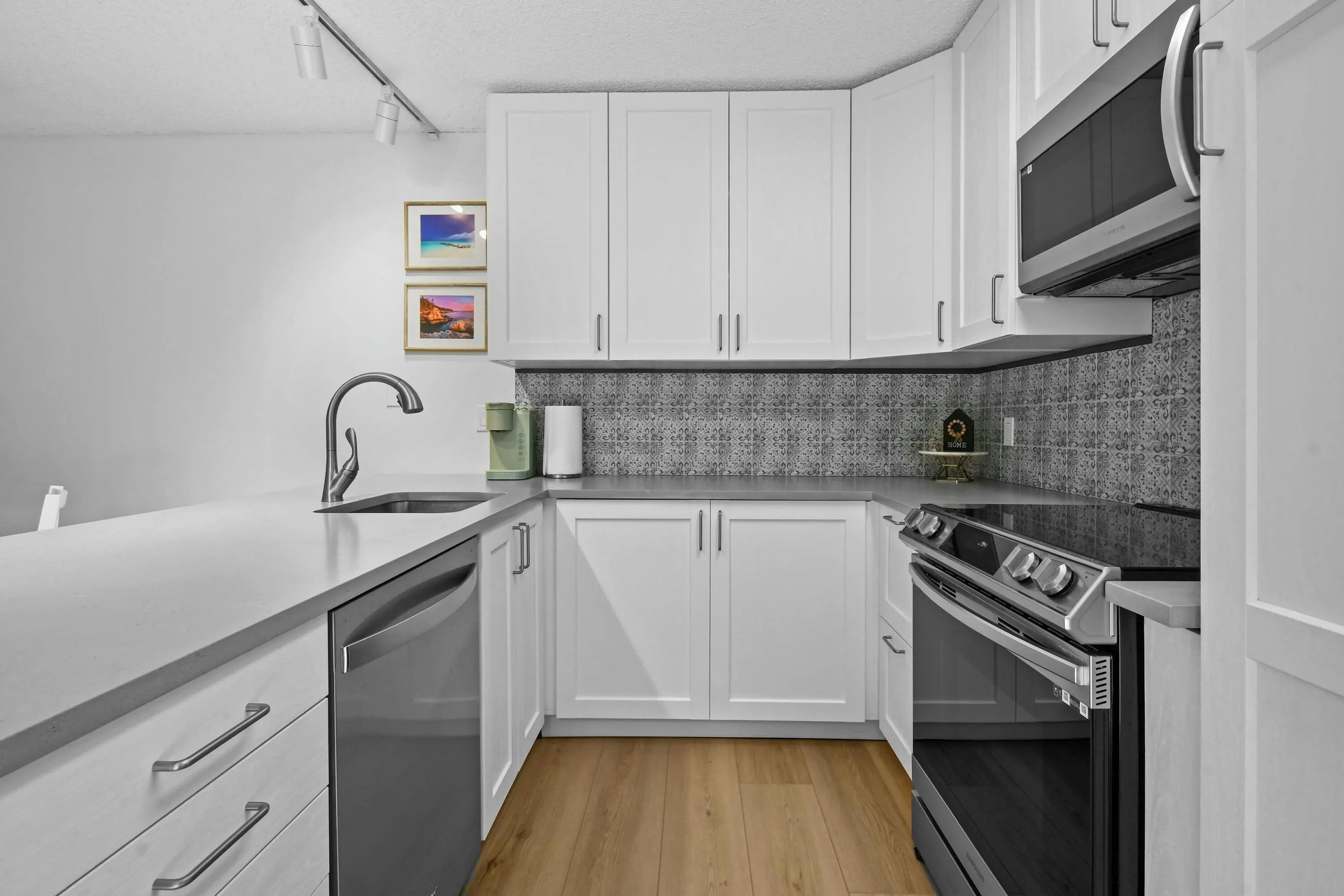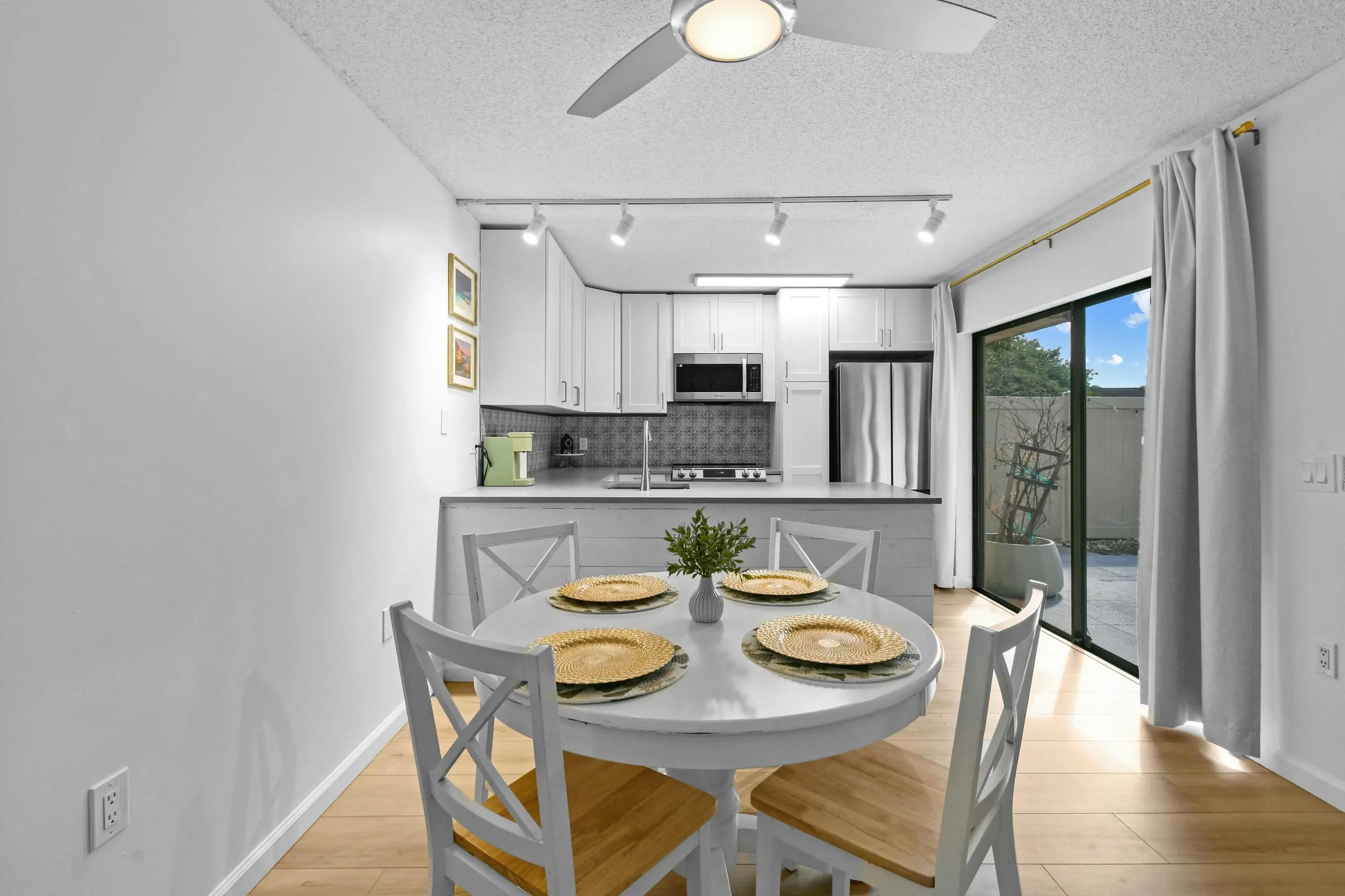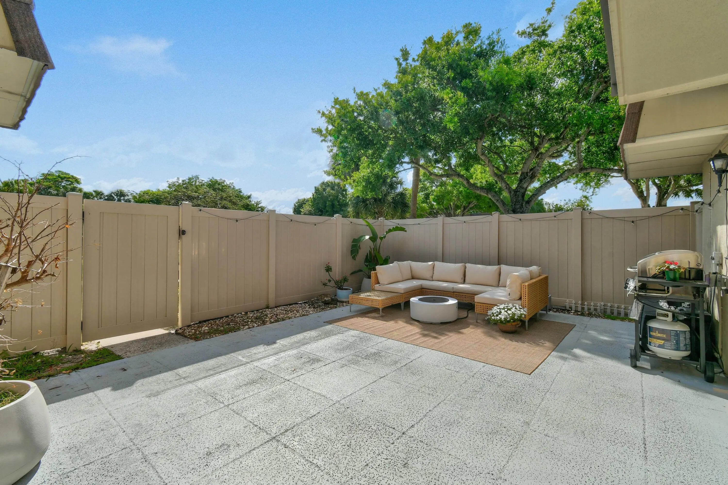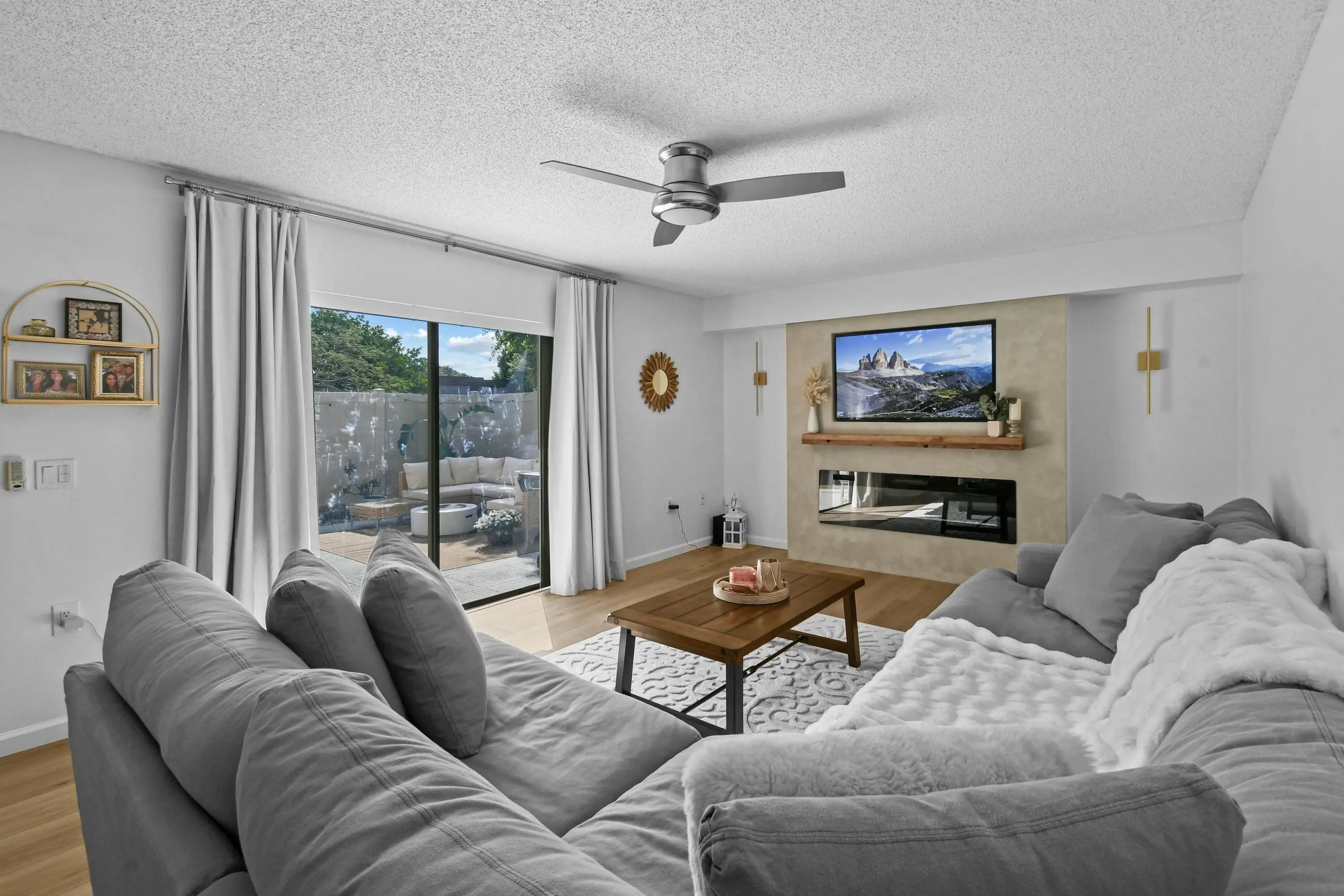 This beautifully fully renovated townhouse offers modern comfort and turnkey convenience in a prime location. Step inside to find new LVP flooring throughout, creating a sleek, cohesive look. The living area features a stunning built-in fireplace with a TV accent wall, perfect for cozy nights and stylish entertaining. Enjoy peace of mind with a top-of-the-line Carrier A/C unit just installed, ensuring efficient cooling and year-round comfort. Perfectly situated directly across from the pool, this home also offers exceptional privacy with no close neighbors, making it feel like your own quiet retreat. The HOA dues cover high-value services, including WiFi, water, exterior insurance, lawn care, and pool maintenance, making ownership easy and stress-free.